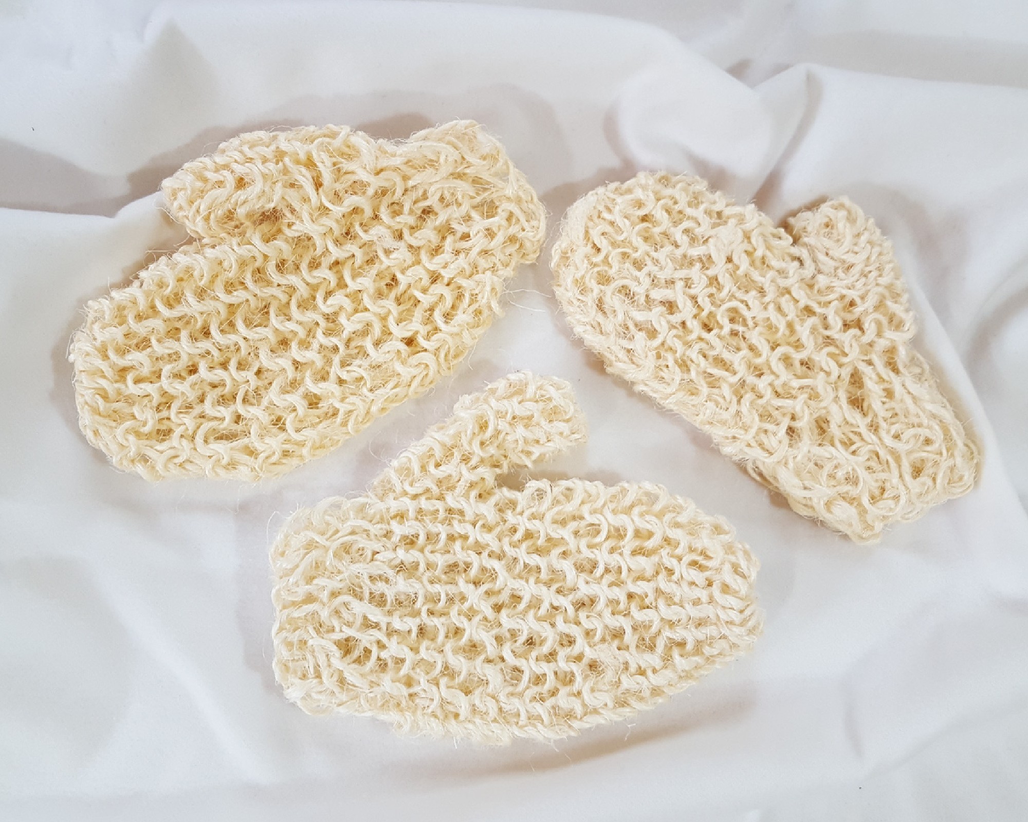 ie Duschhandschuhe bestehen zu 100% aus Sisalfasern.