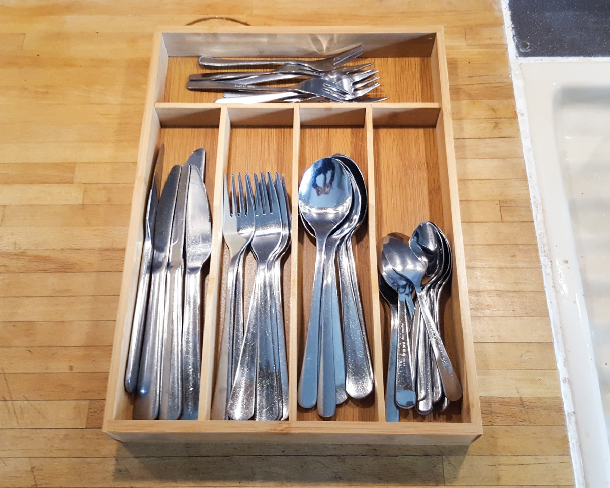 Wir nutzen den Besteckkasten nun seit einigen Wochen und sind sehr zufrieden. Das Bambusmaterial sieht nicht nur schön aus, sondern fühlt sich auch stabil an. Alles hat seinen Platz, und die Schublade wirkt deutlich ordentlicher. Ein guter Kauf, den wir weiterempfehlen würden.