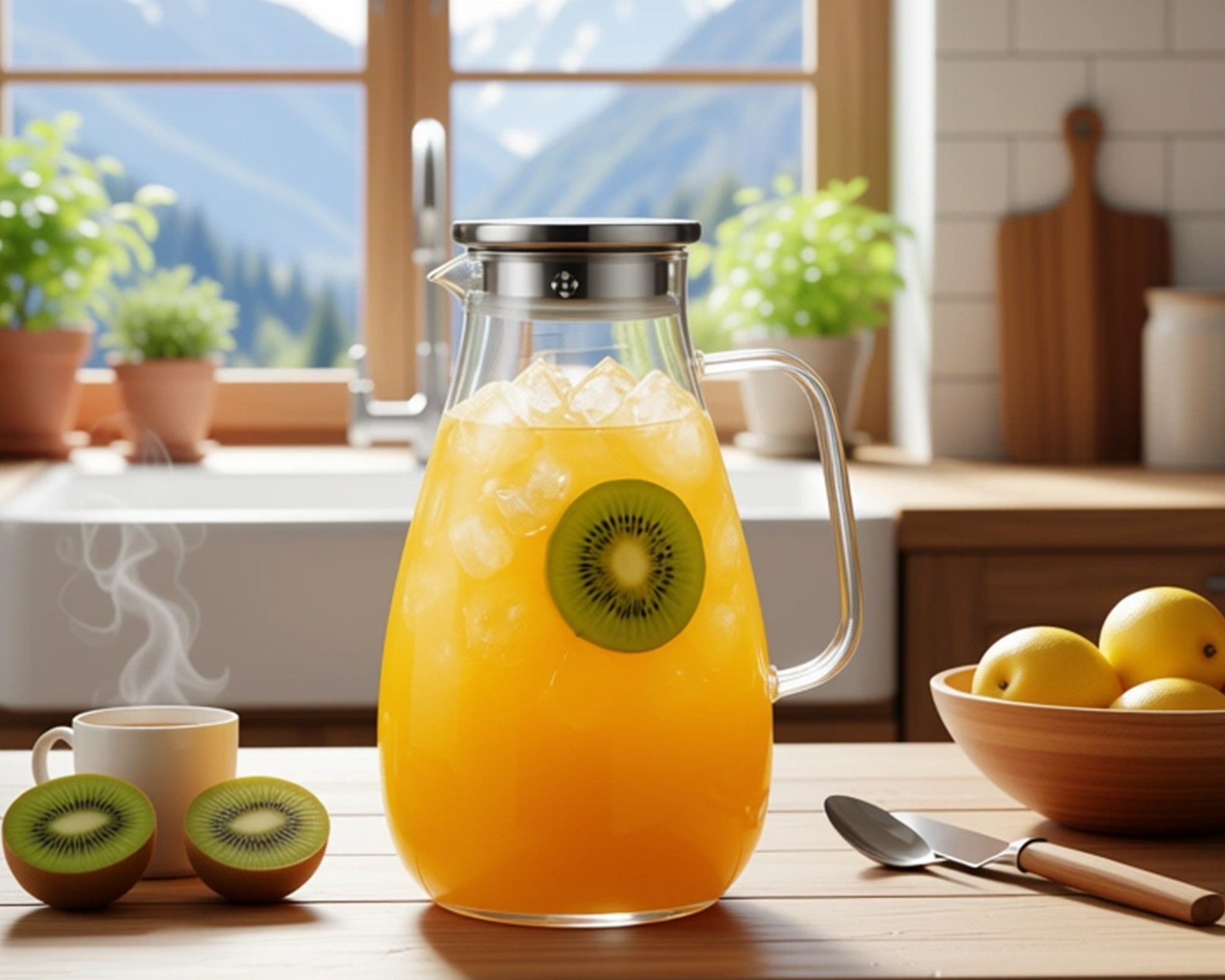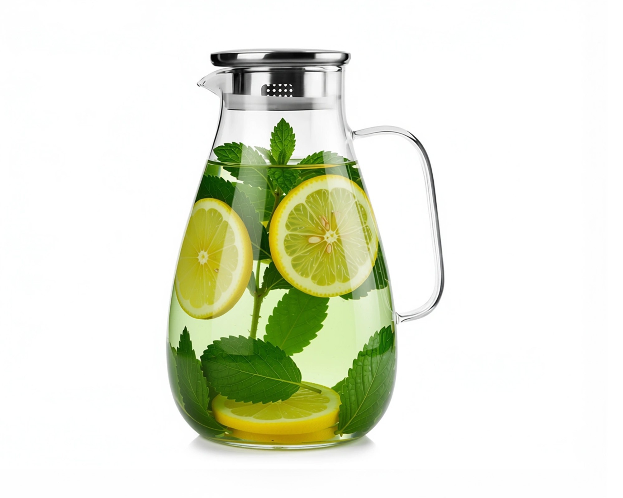 ieser 2,2-Liter-Glaskrug mit Edelstahldeckel eignet sich für alle kühlen und lauwarmen Getränke. Aber Vorsicht: Kochend heisses Wasser auf kaltes Glas gegossen kann auch bei stabilem Glas Sprünge erzeugen. Deshalb unser Tipp: Glasskaraffe kurz unter warmes Wasser halten, bevor
