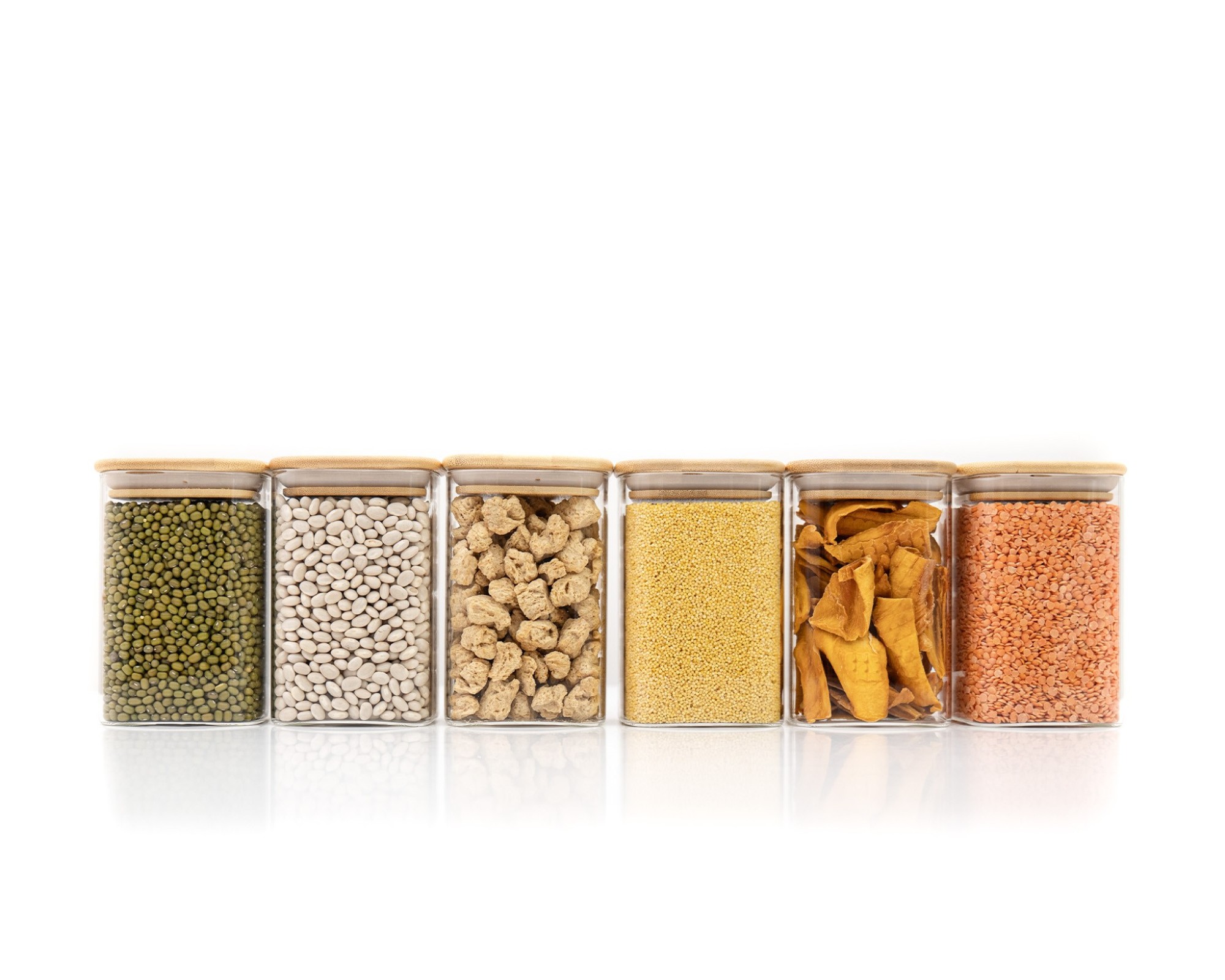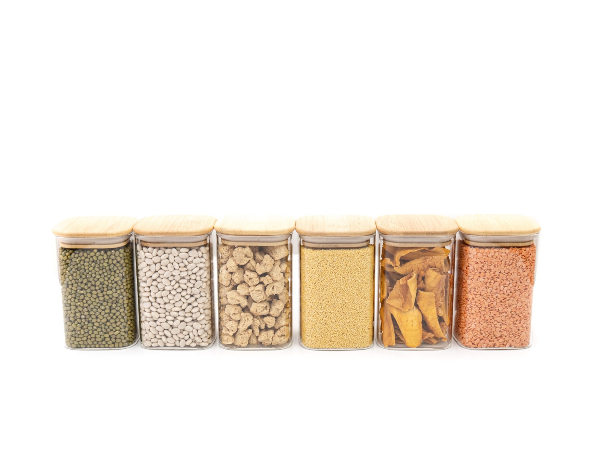 • Vorratsgläser aus Glas mit quadratischem Bambusdeckel
