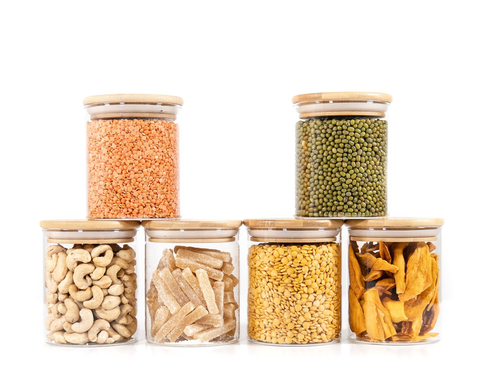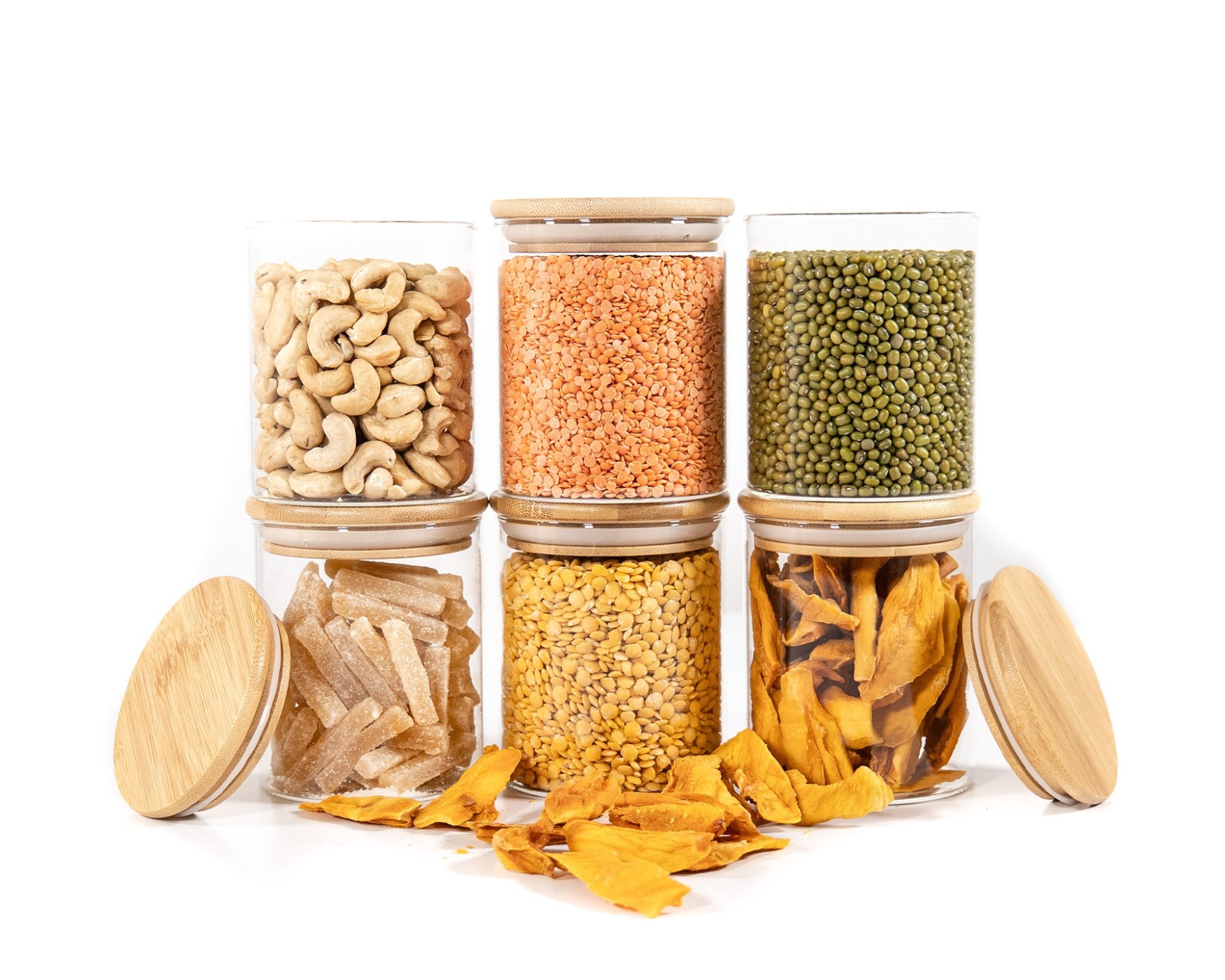 Stylische Vorratsdosen aus Glas mit rundem Bambusdeckel
