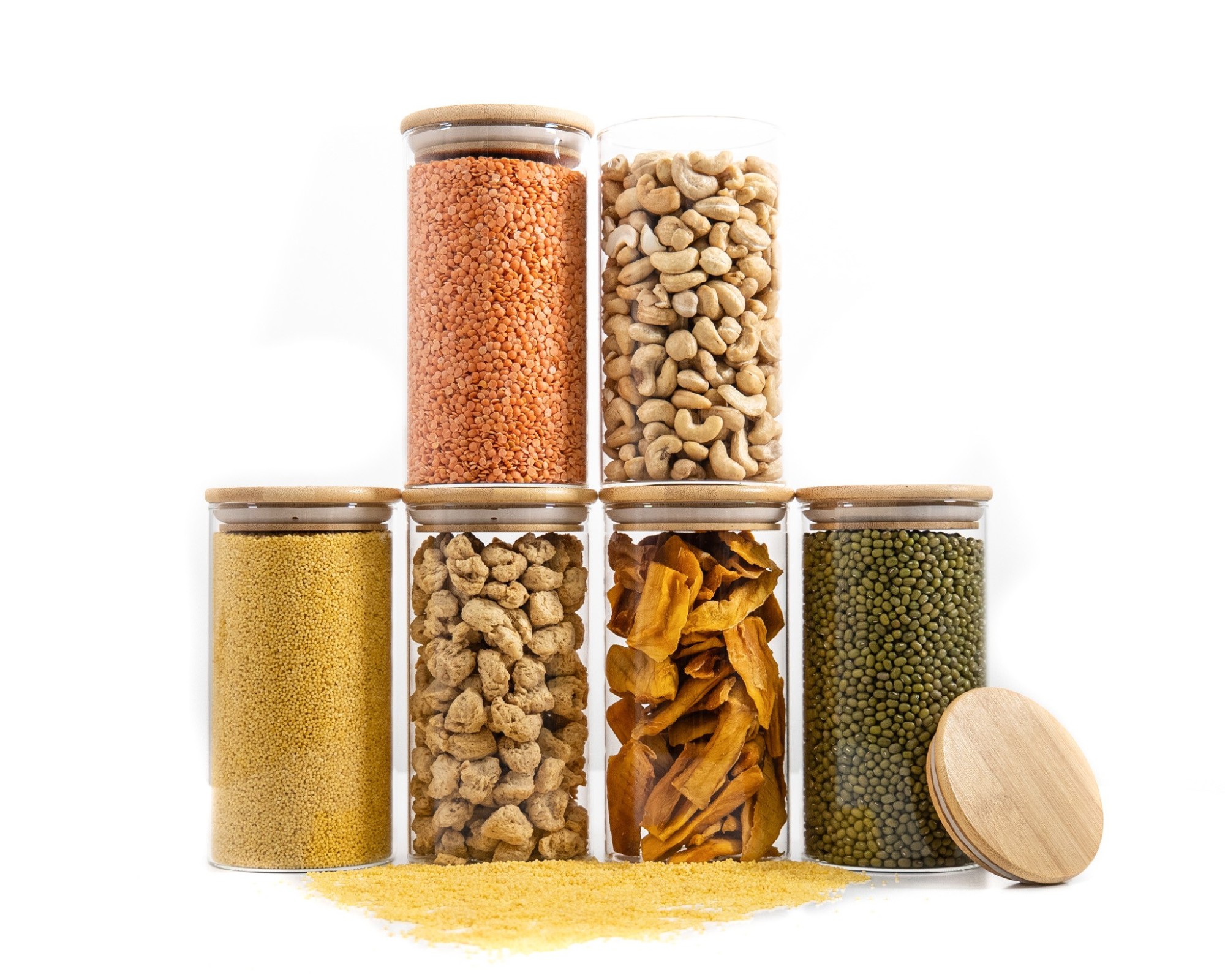 Durch den zusätzlichen Gummiring um den Bambusdeckel wird das Eindringen von Sauerstoff und Feuchtigkeit verhindert, wodurch deine Vorräte möglichst lange haltbar und aromafrisch bleiben.