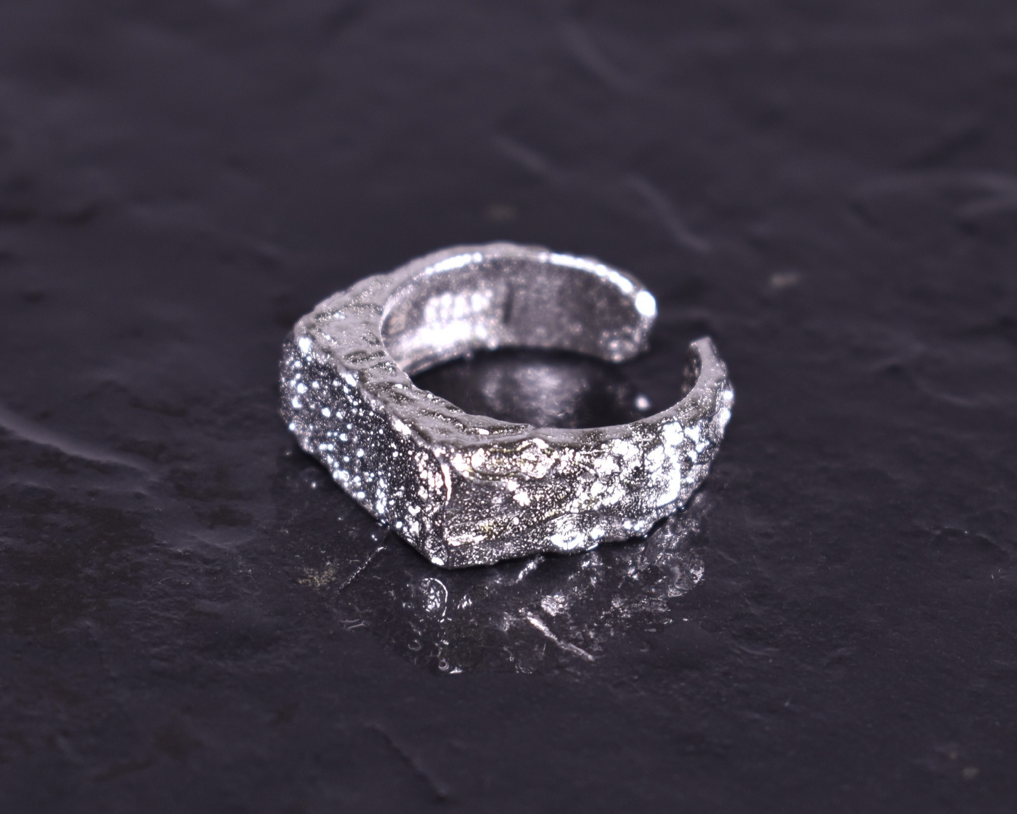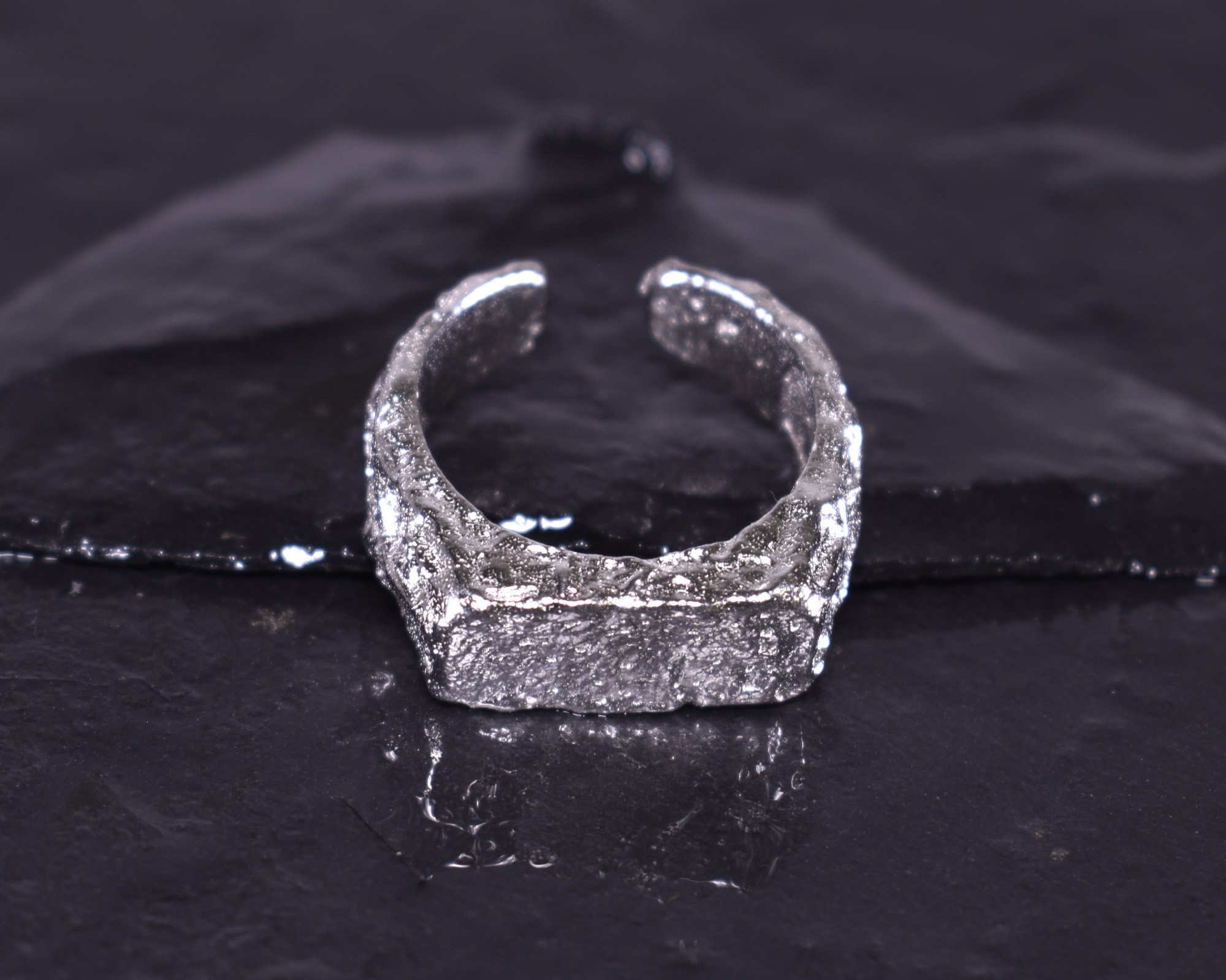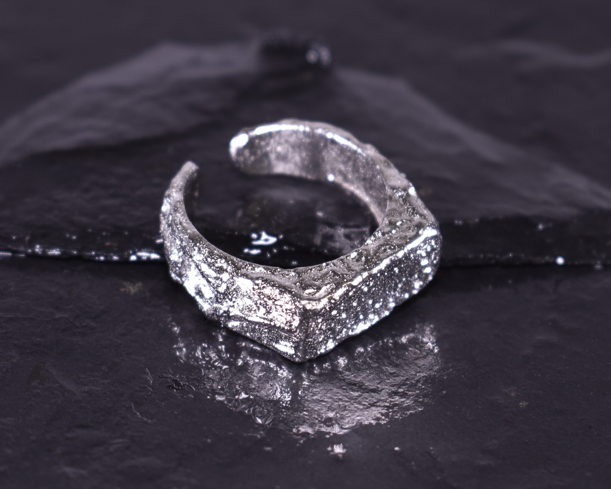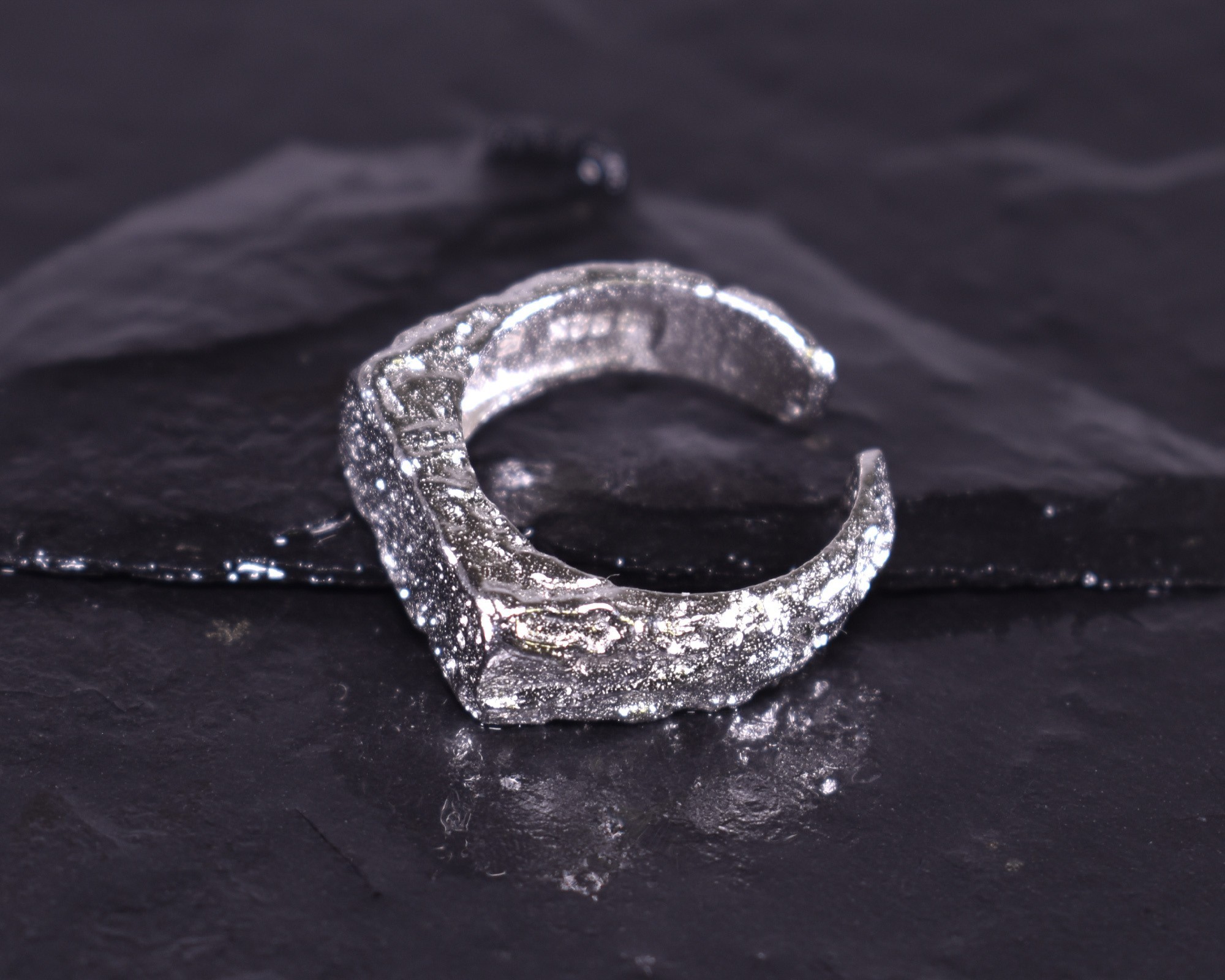 H ier erinnert die Form an einen klassischen Siegelring. Die einzigartige Oberflächenstruktur dieses offenen Silberringes macht dieses Schmuckstück zu einem extravaganten Accessoire. Ein schönes Geschenk.