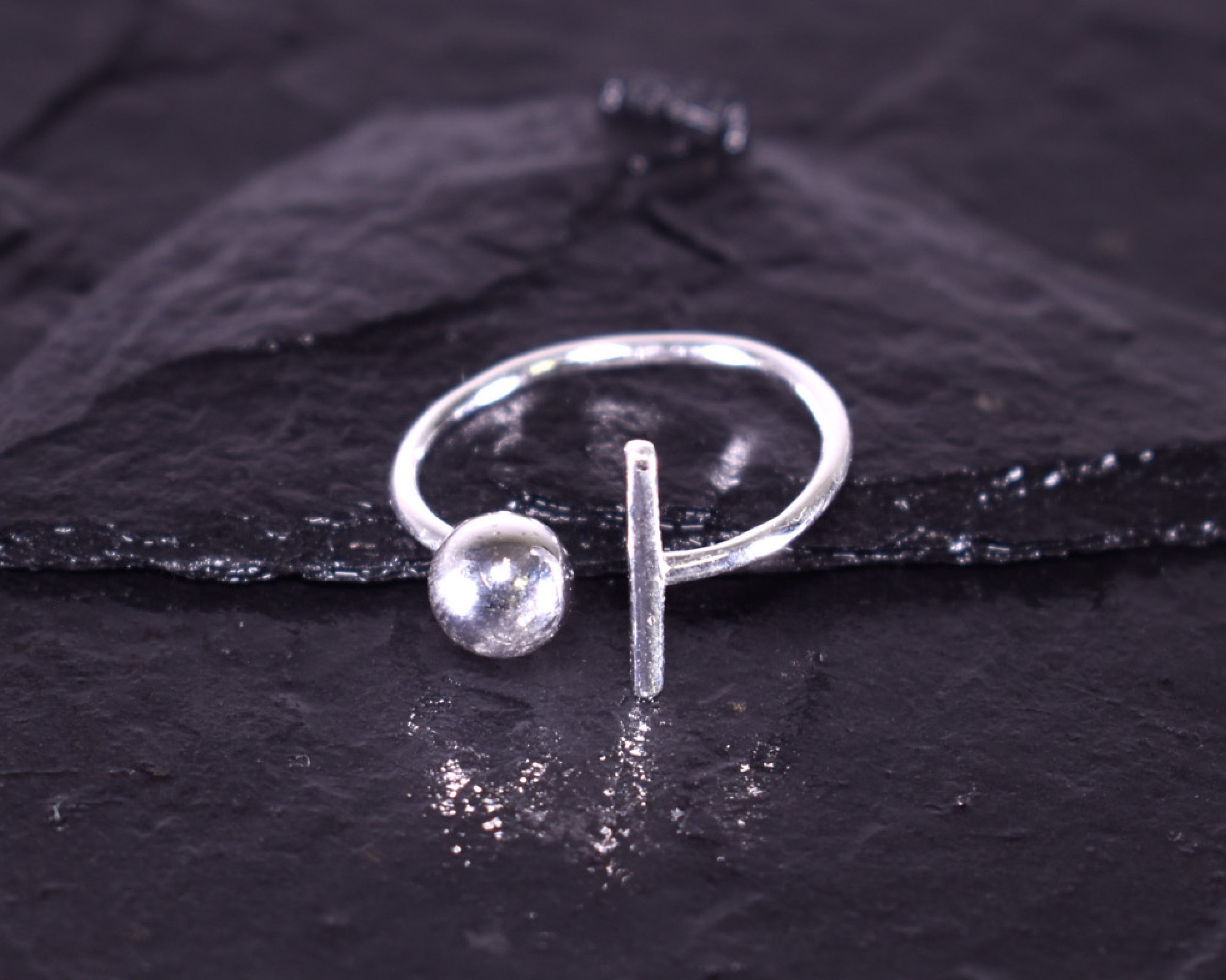 Geometrisch angeordneter Silberring offen