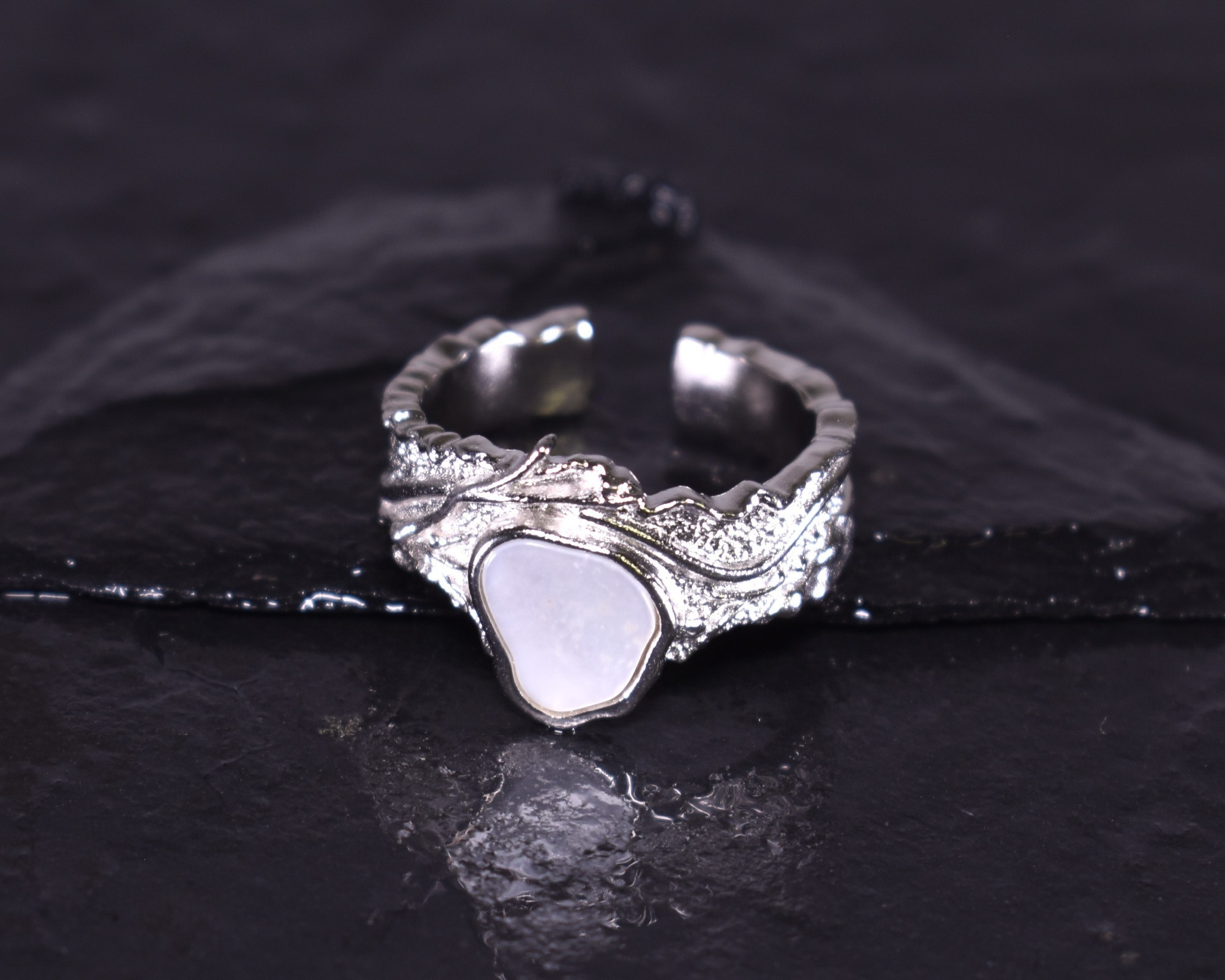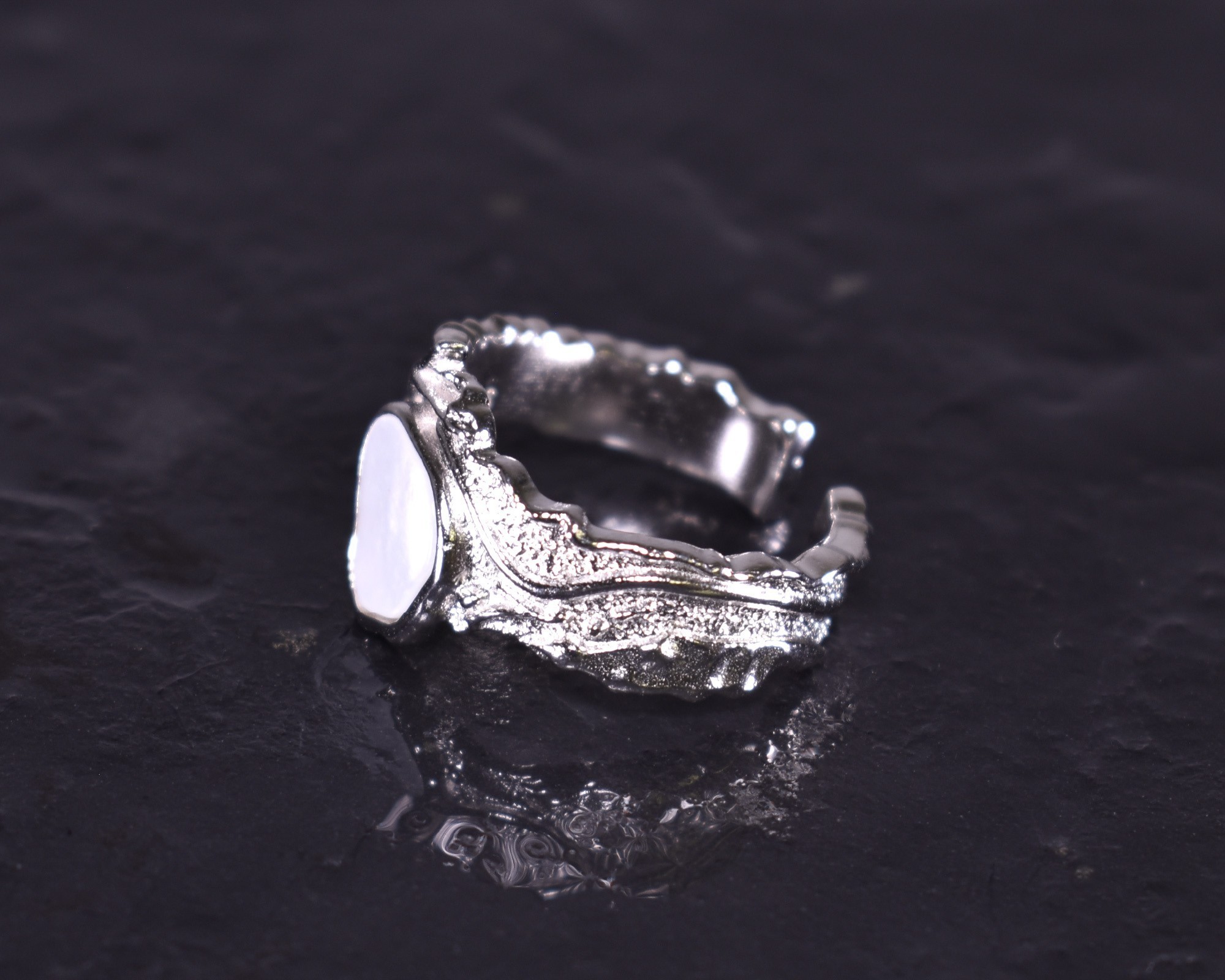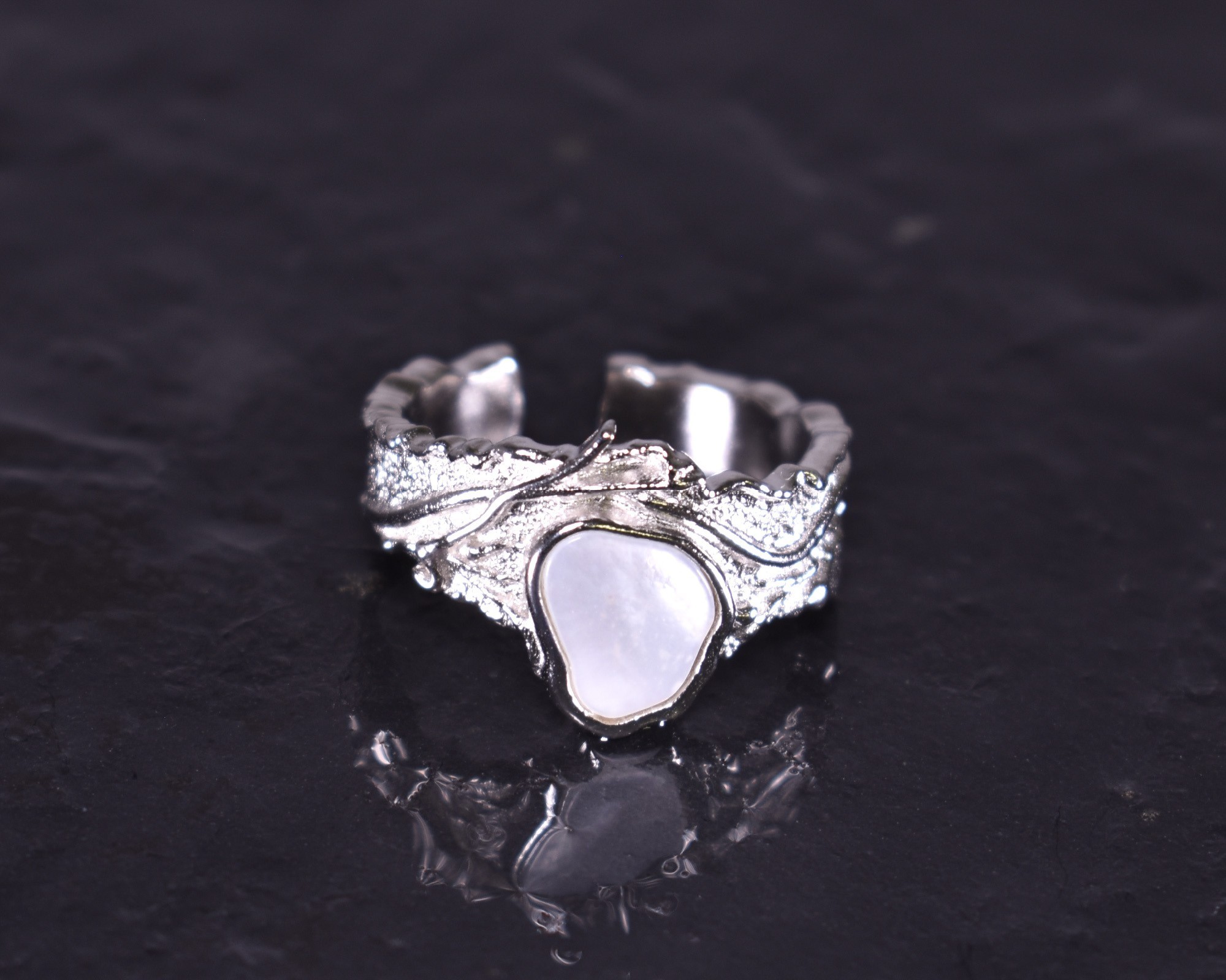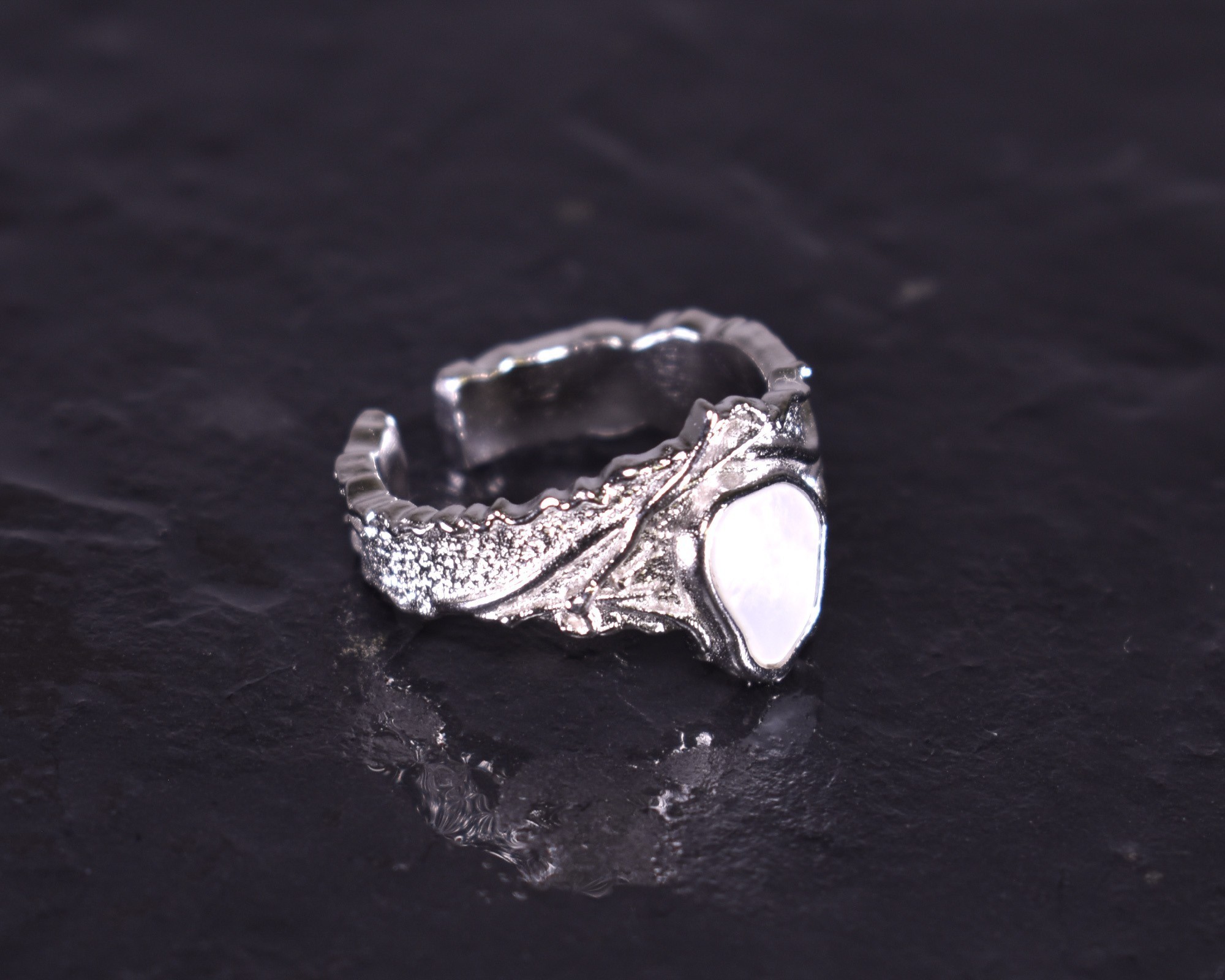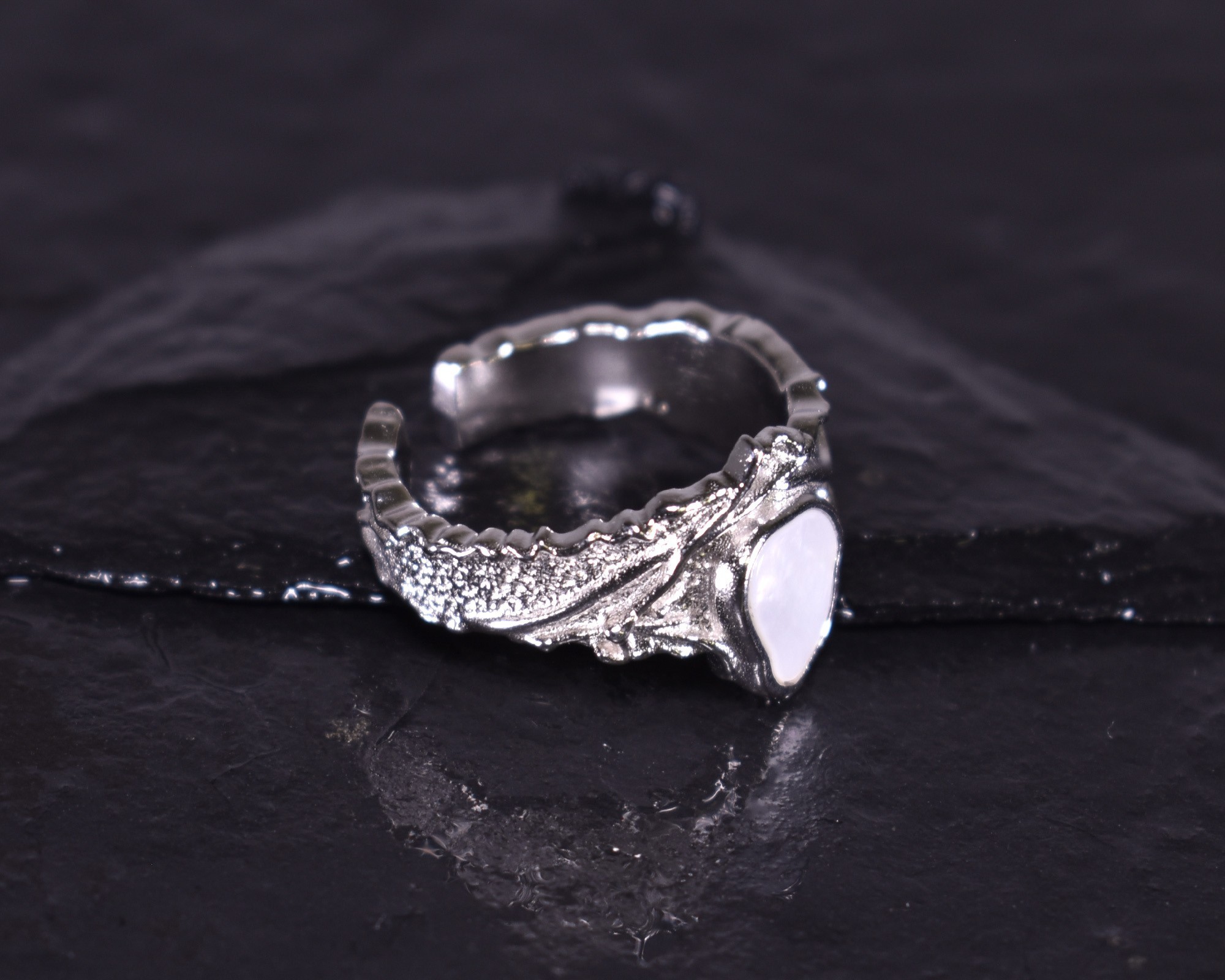G lamourös romantisch. Dieser einzigartige offene Silberring hinterlässt aufgrund seines extravaganten Designs einen bleibenden Eindruck. Die zierlichen Verästelungen mit der dazugehörigen schimmernden Fläche gibt einem das Gefühl den lang verlorenen Ring einer Waldelfe gefunden zu haben.