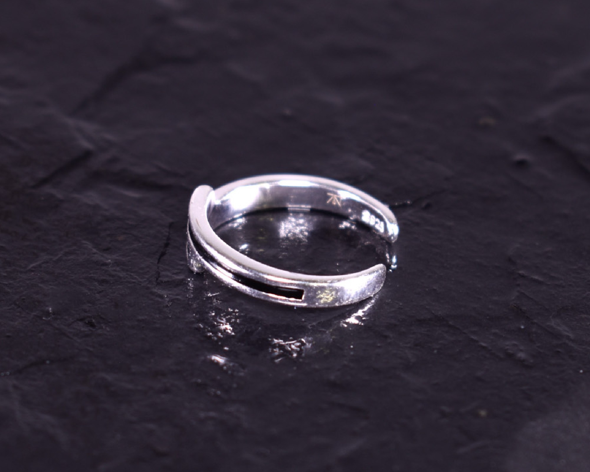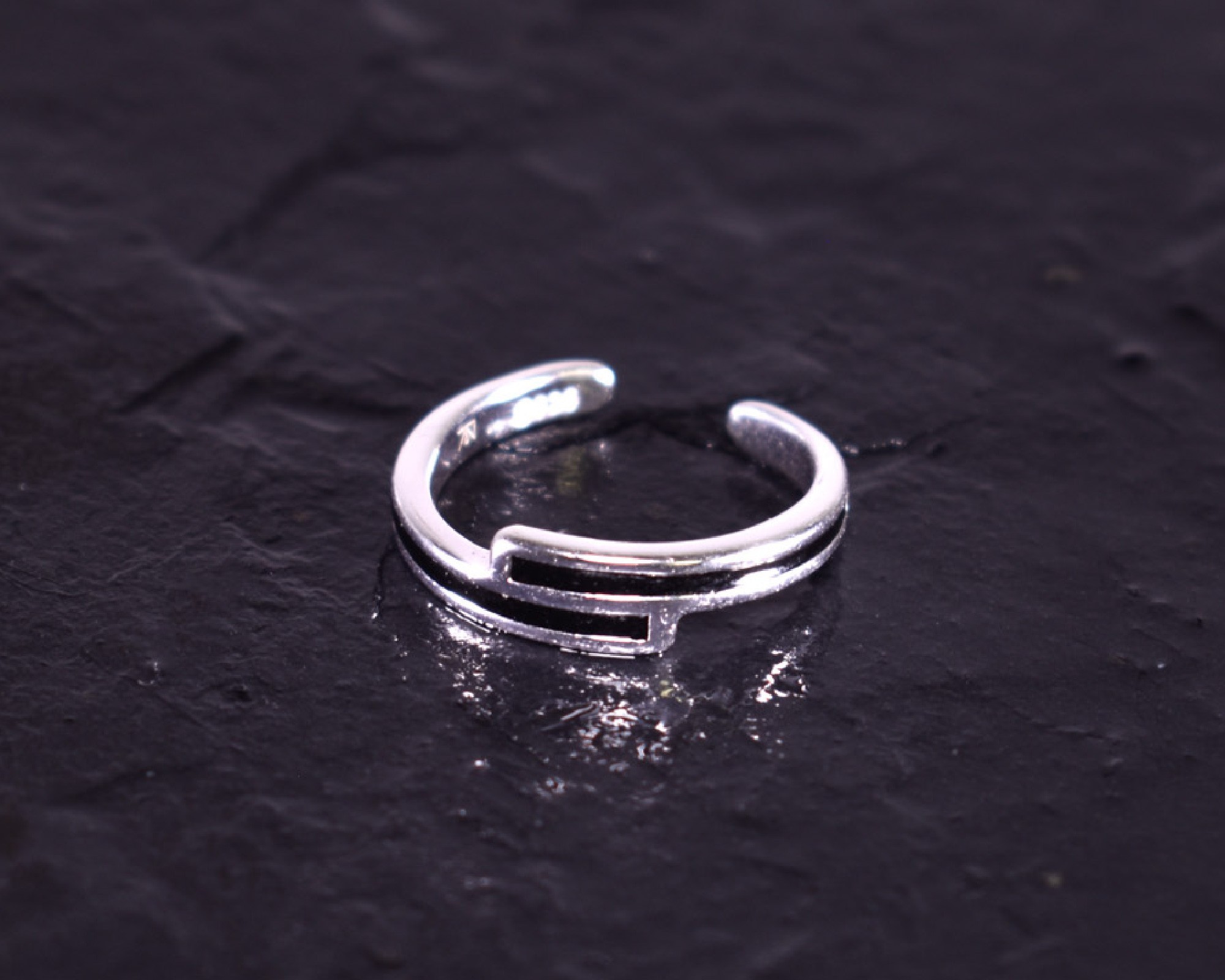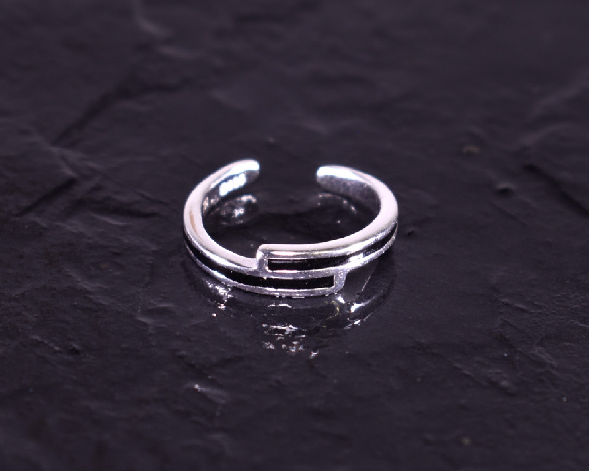 D ieser offene Silberring überzeugt mit seinem modernen Design. Die übereinanderliegenden, in der Mitte schwarzen, Flächen machen den Ring zu einem stilvollen und Zeitlosen Accessoire.