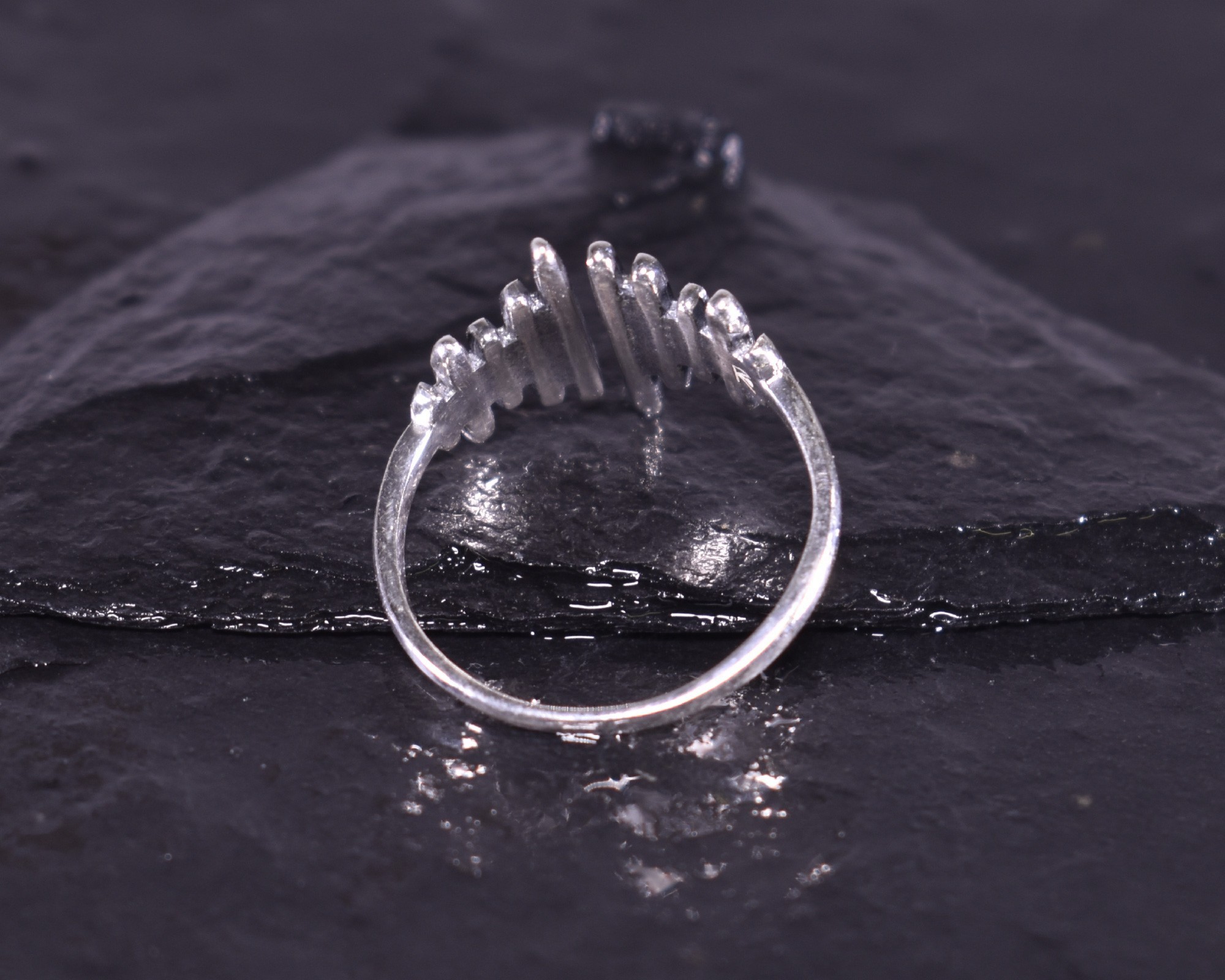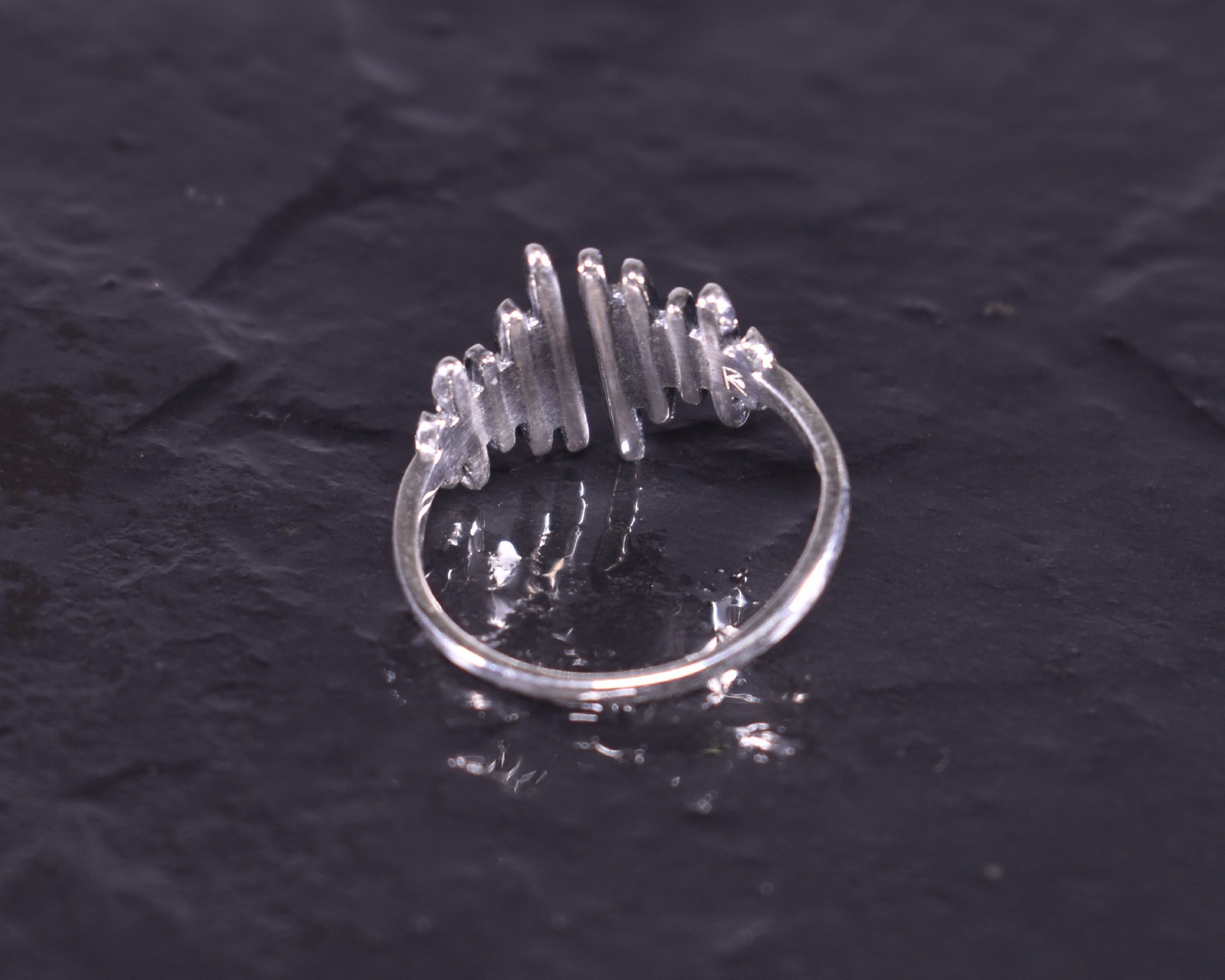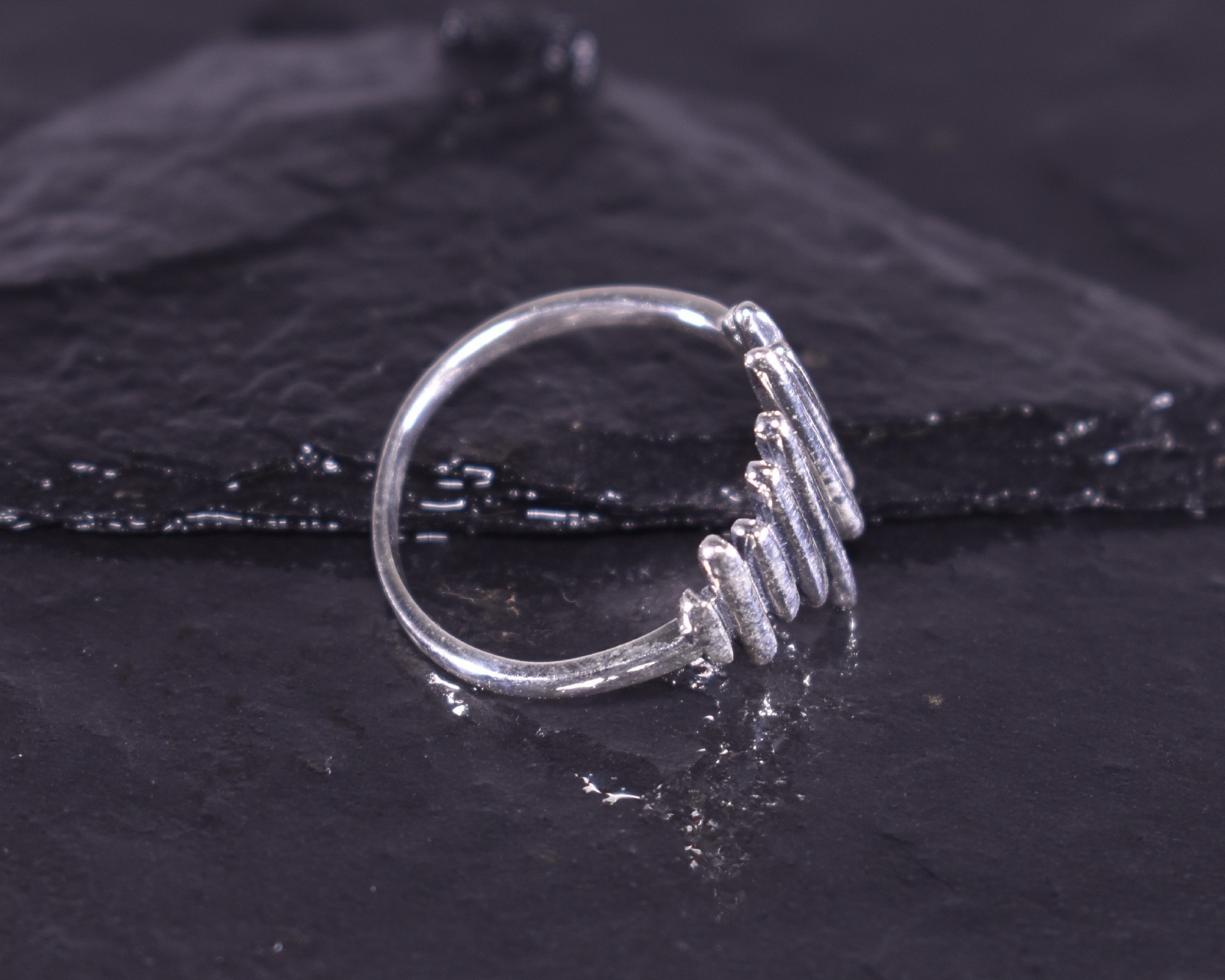 D ieser futuristische offene Silberring sticht mit seinem einzigartigen Design heraus. Die kunstvolle Anordnung der Silberstäbe in Form eines Balkendiagrammes bildet den Charakter des Ringes. Ein schönes Geschenk!