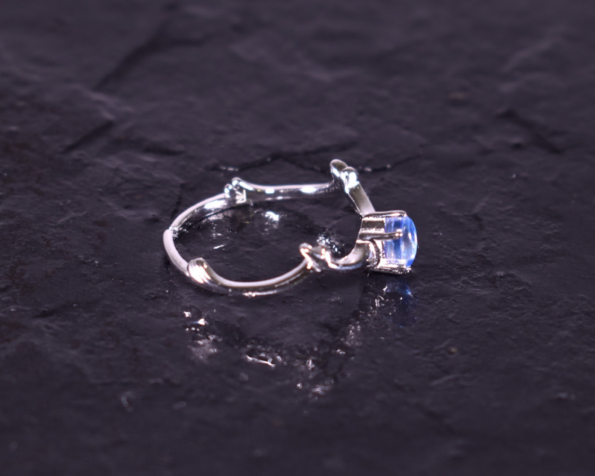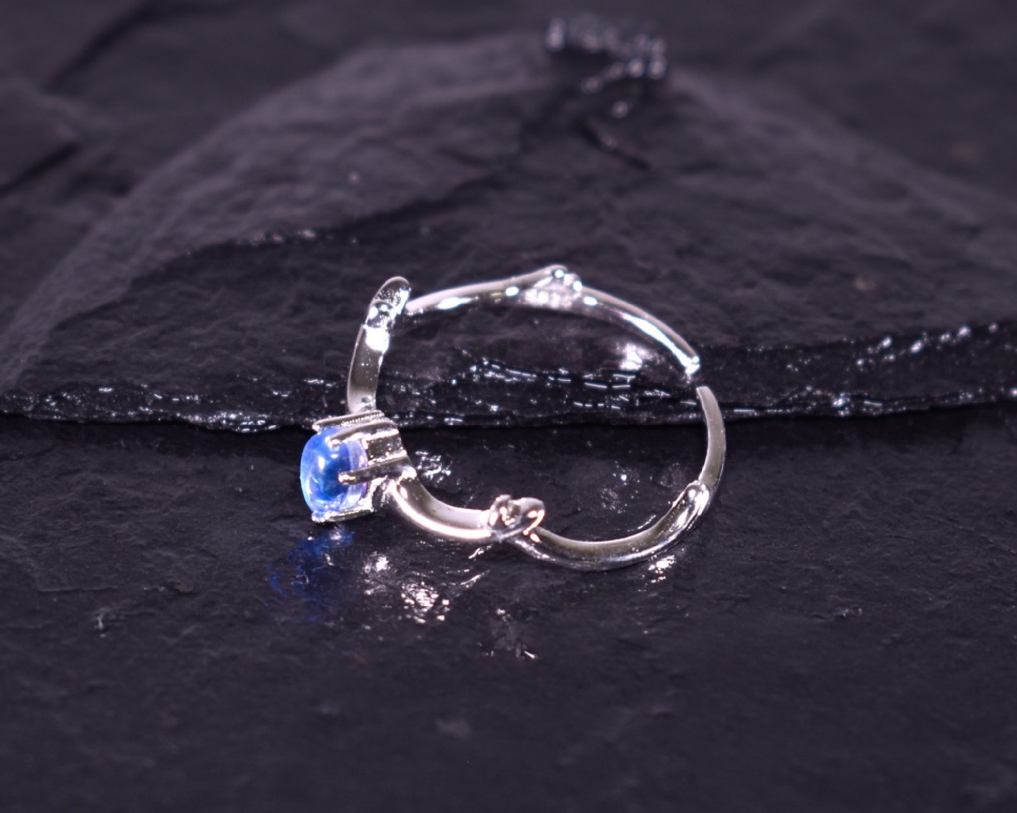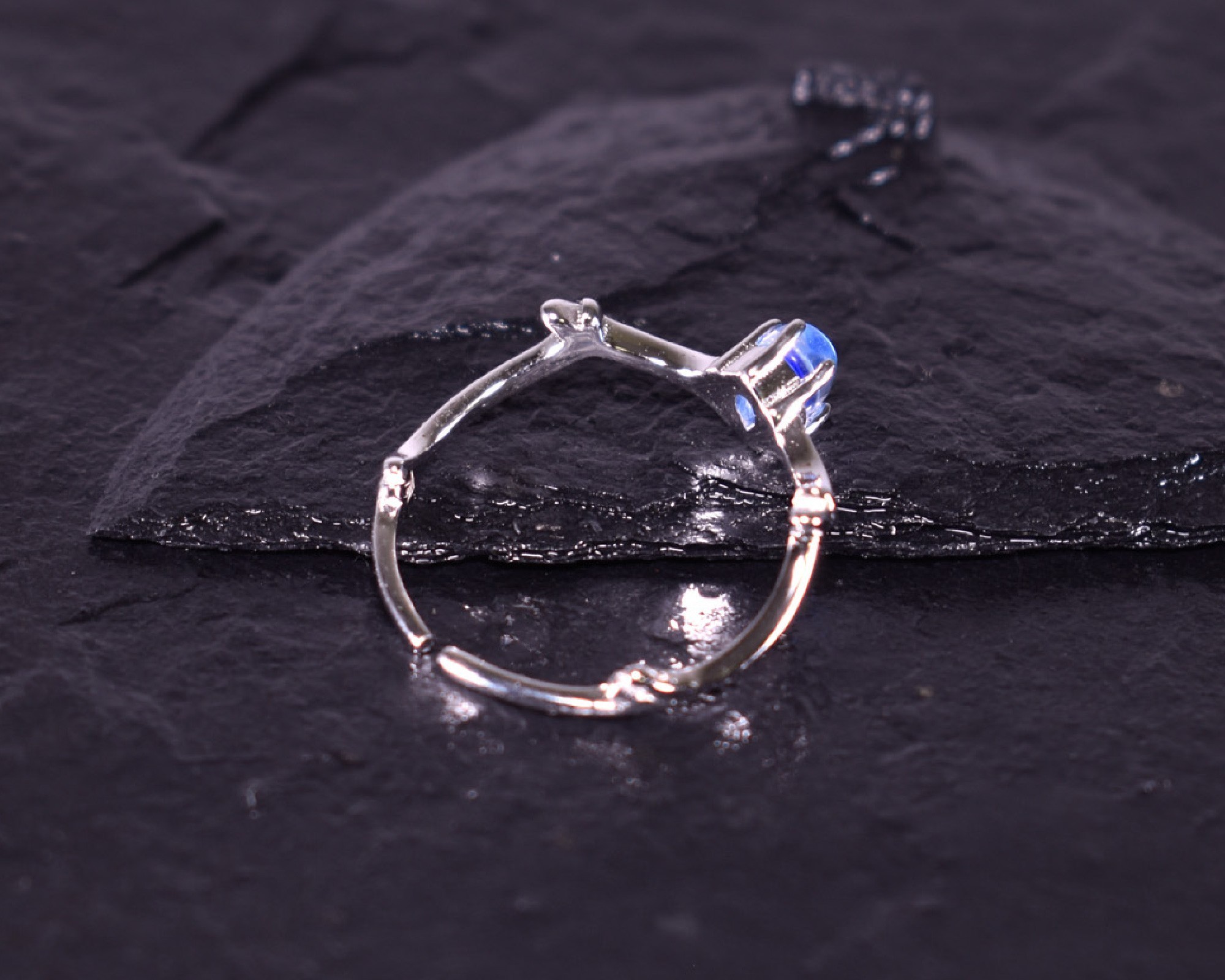 • Offener Silberring mit blauem Kristall