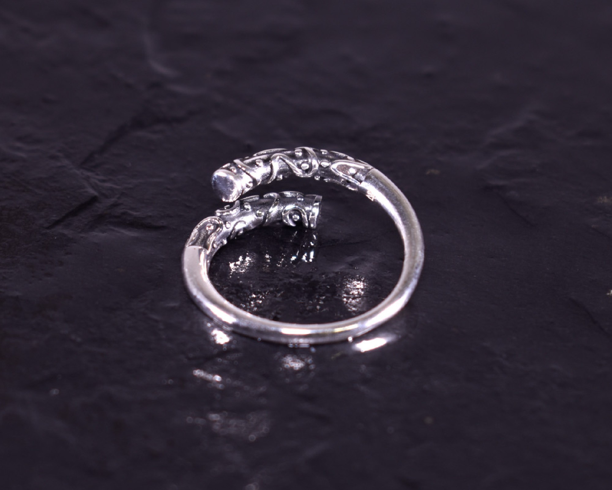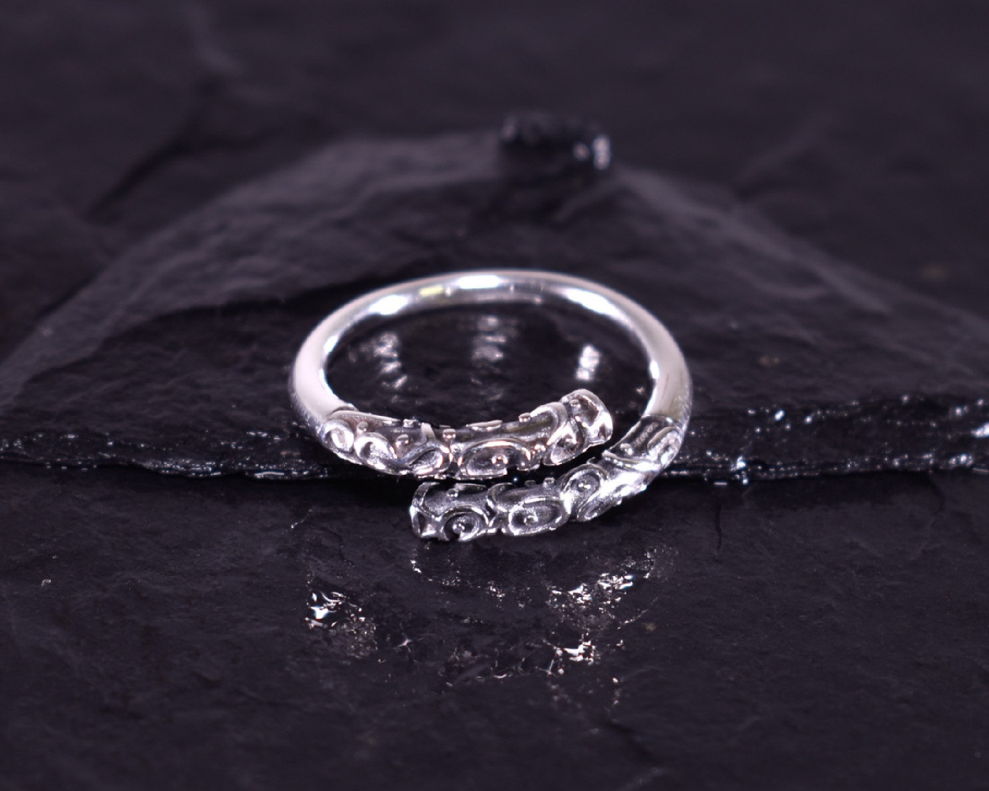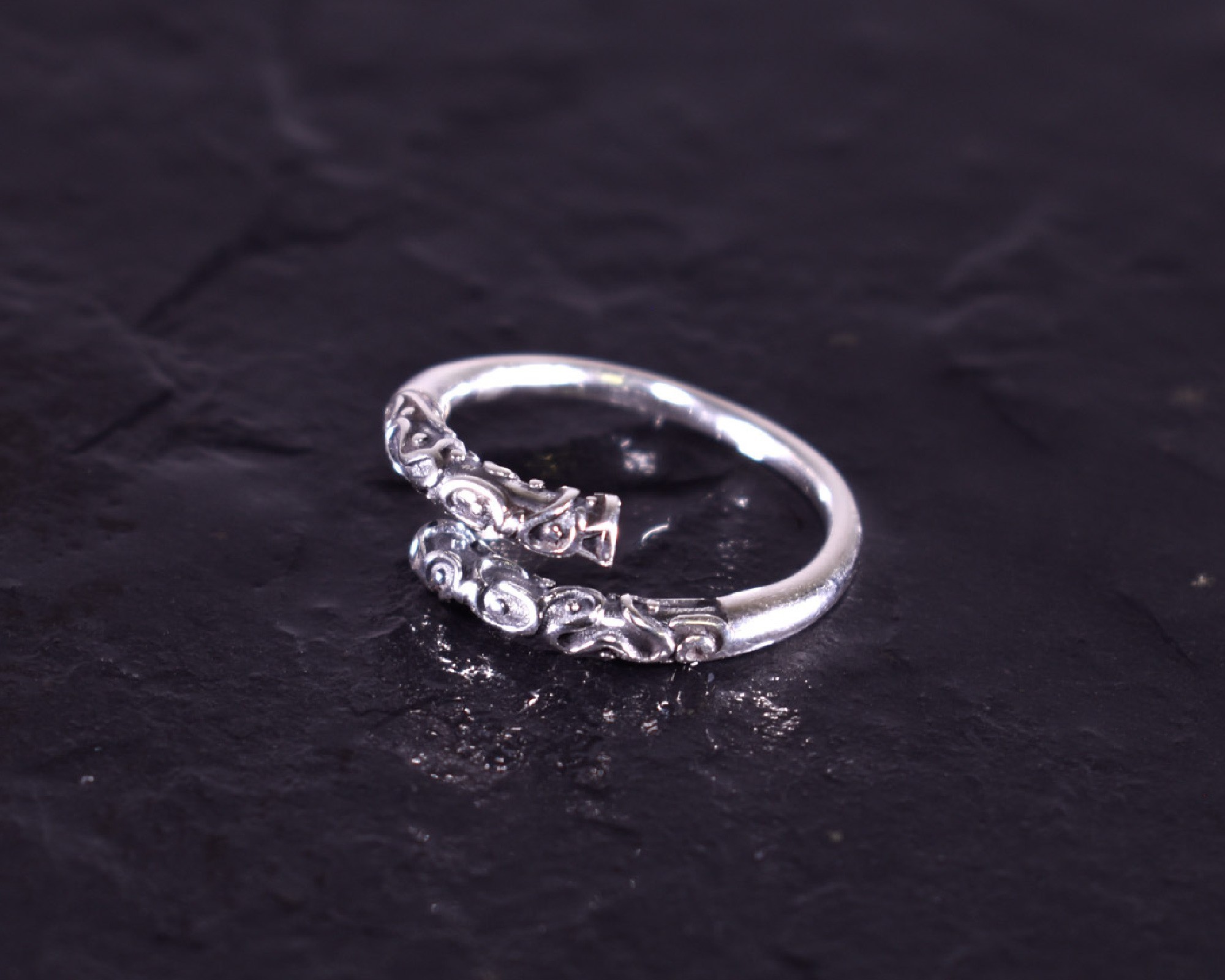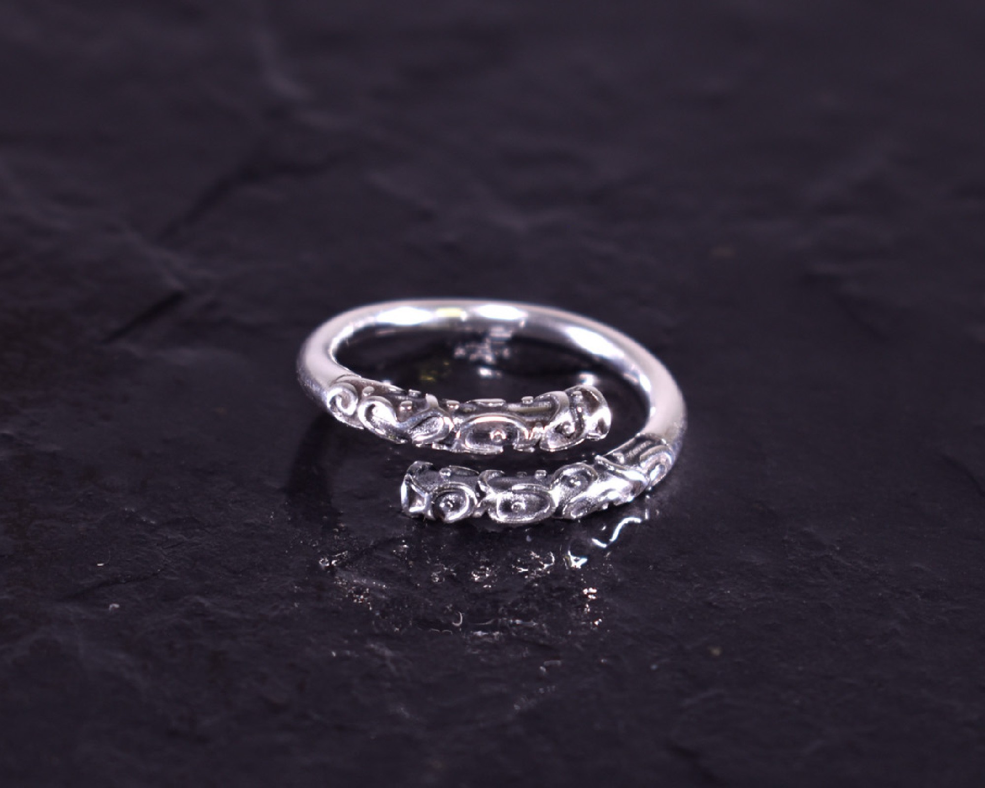 Offener Silberring mit verspielter Ringoberfläche