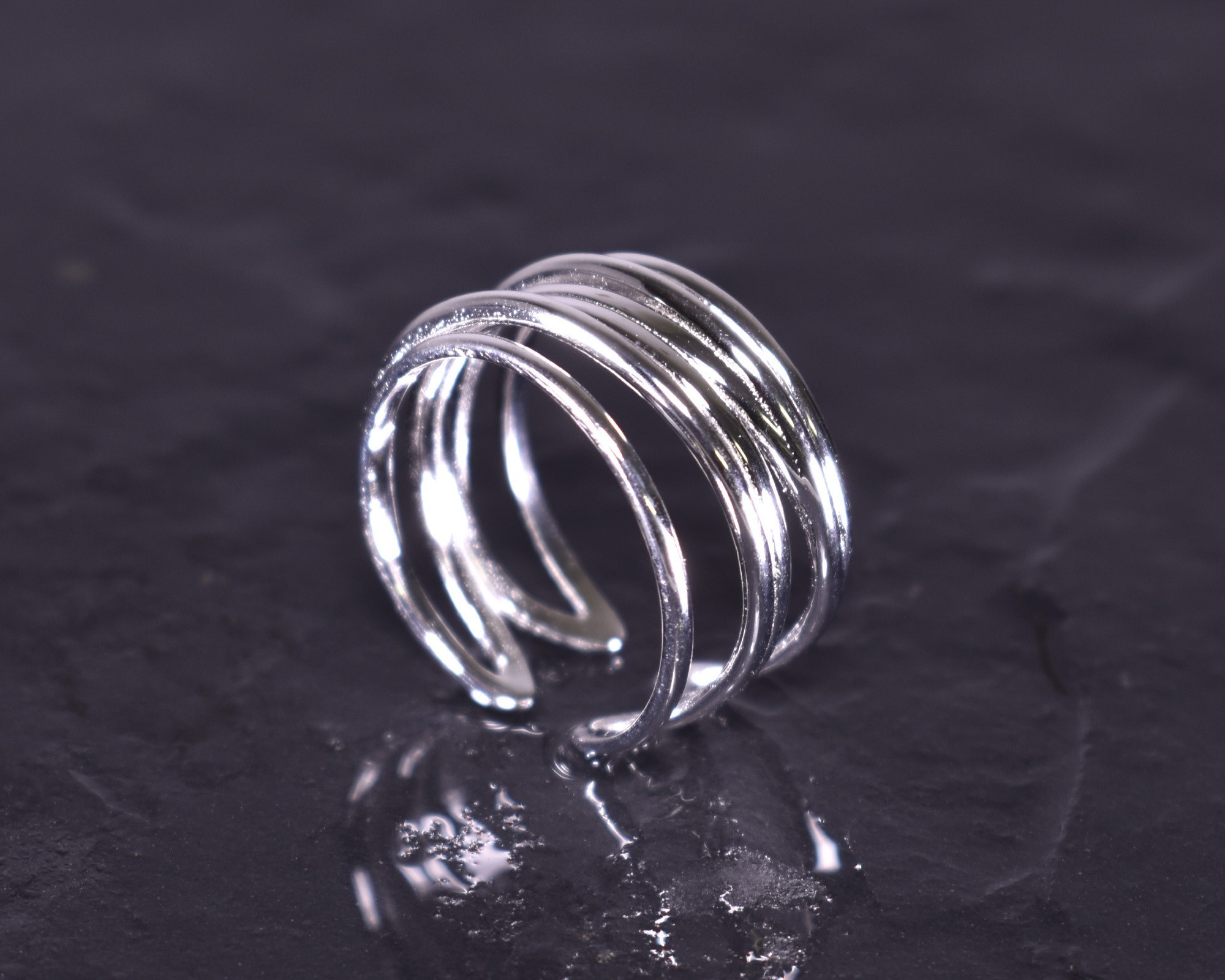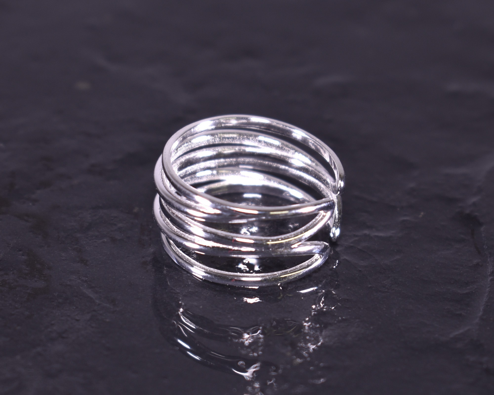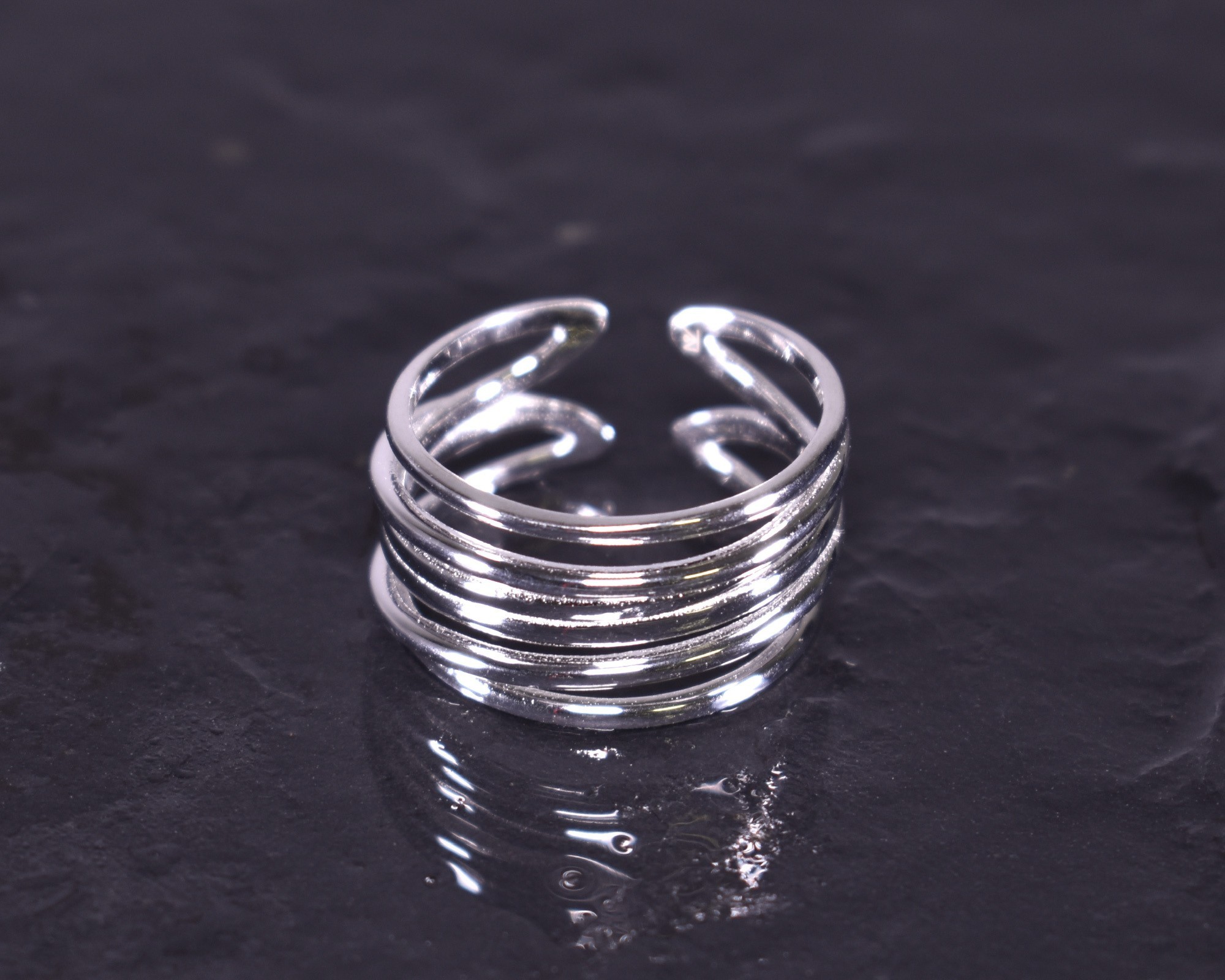 E legant angeordnete Silberstränge bilden diesen filigrane, offene Silberring. Die sich überkreuzenden Silberringe kreieren ein raffiniertes Muster welches sich auch in Kombination mit anderen Ringen sehen lassen kann.