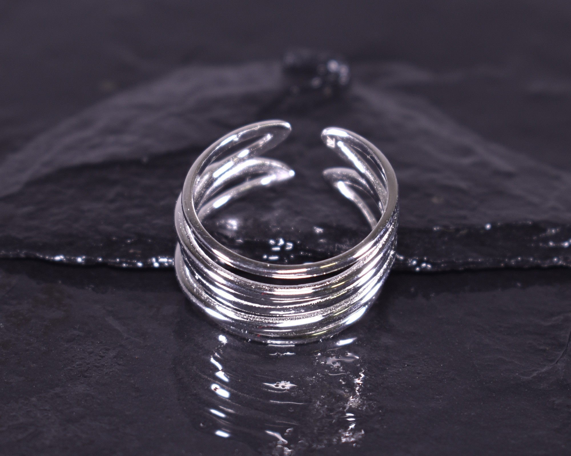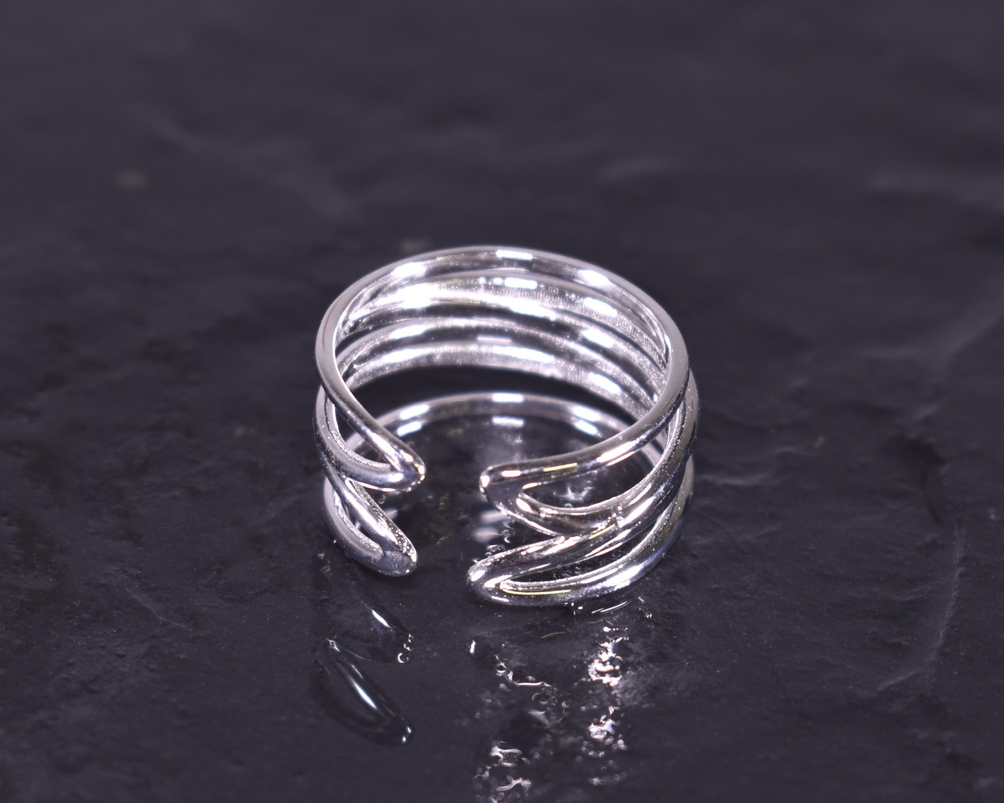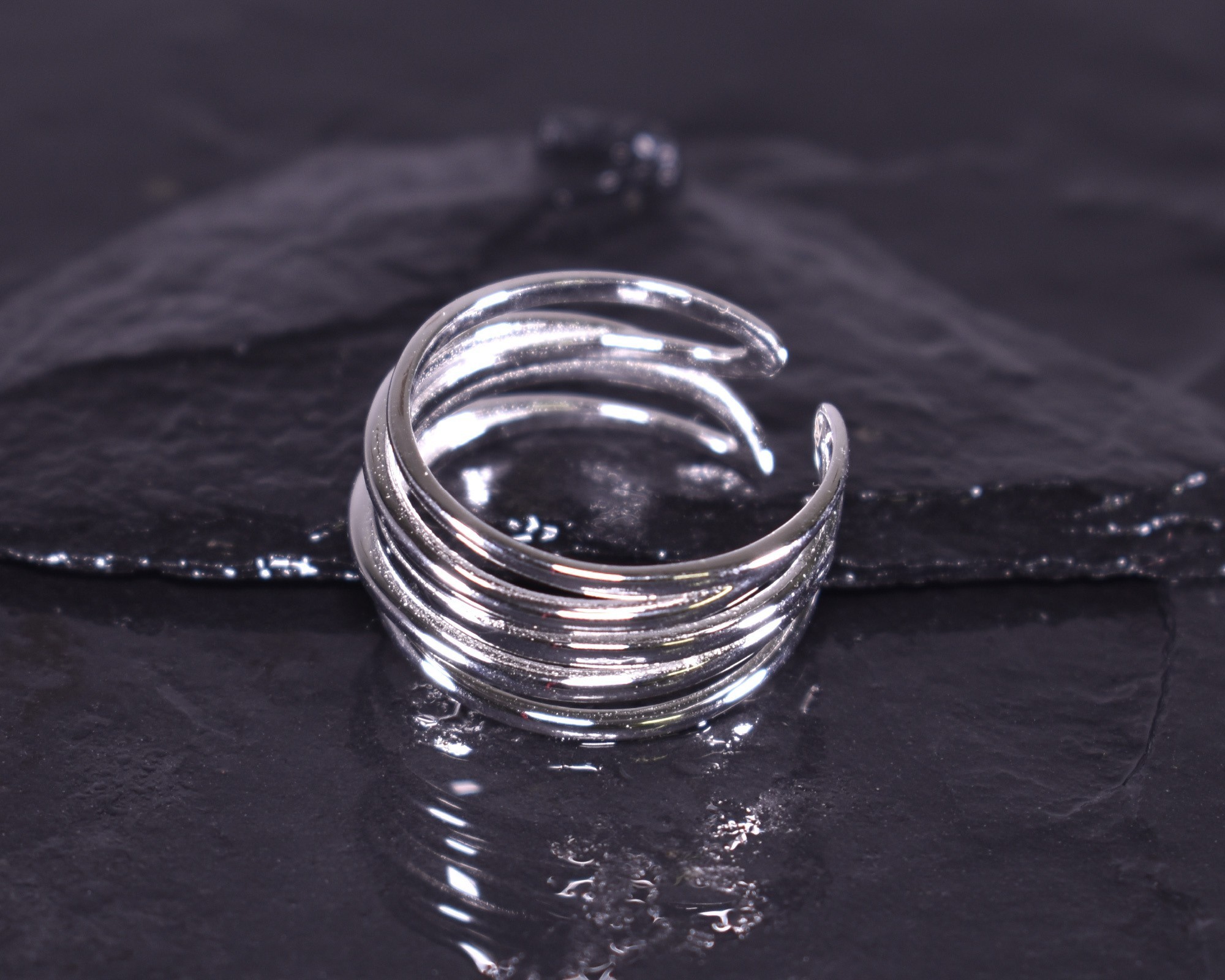 E legant angeordnete Silberstränge bilden diesen filigrane, offene Silberring. Die sich überkreuzenden Silberringe kreieren ein raffiniertes Muster welches sich auch in Kombination mit anderen Ringen sehen lassen kann.