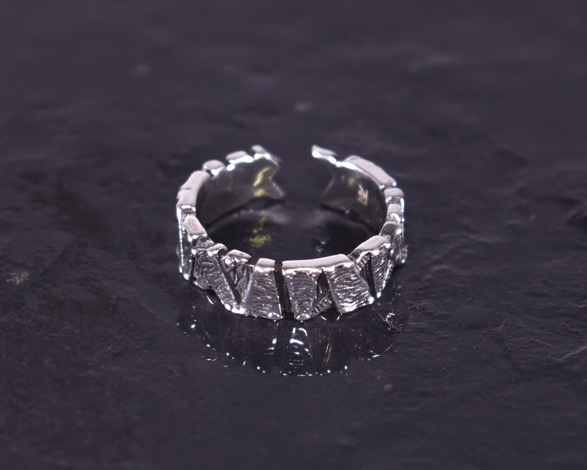 V intage. Diesen offenen Silberring zieren rustikale Formen. Die vertieften Rillen verleihen dem Ring seinen Charakter. Die zwei zackigen Abschlüsse unterstreichen den Look des Accessoires. Sehr schön kombinierbar mit diversen anderen Ringen.