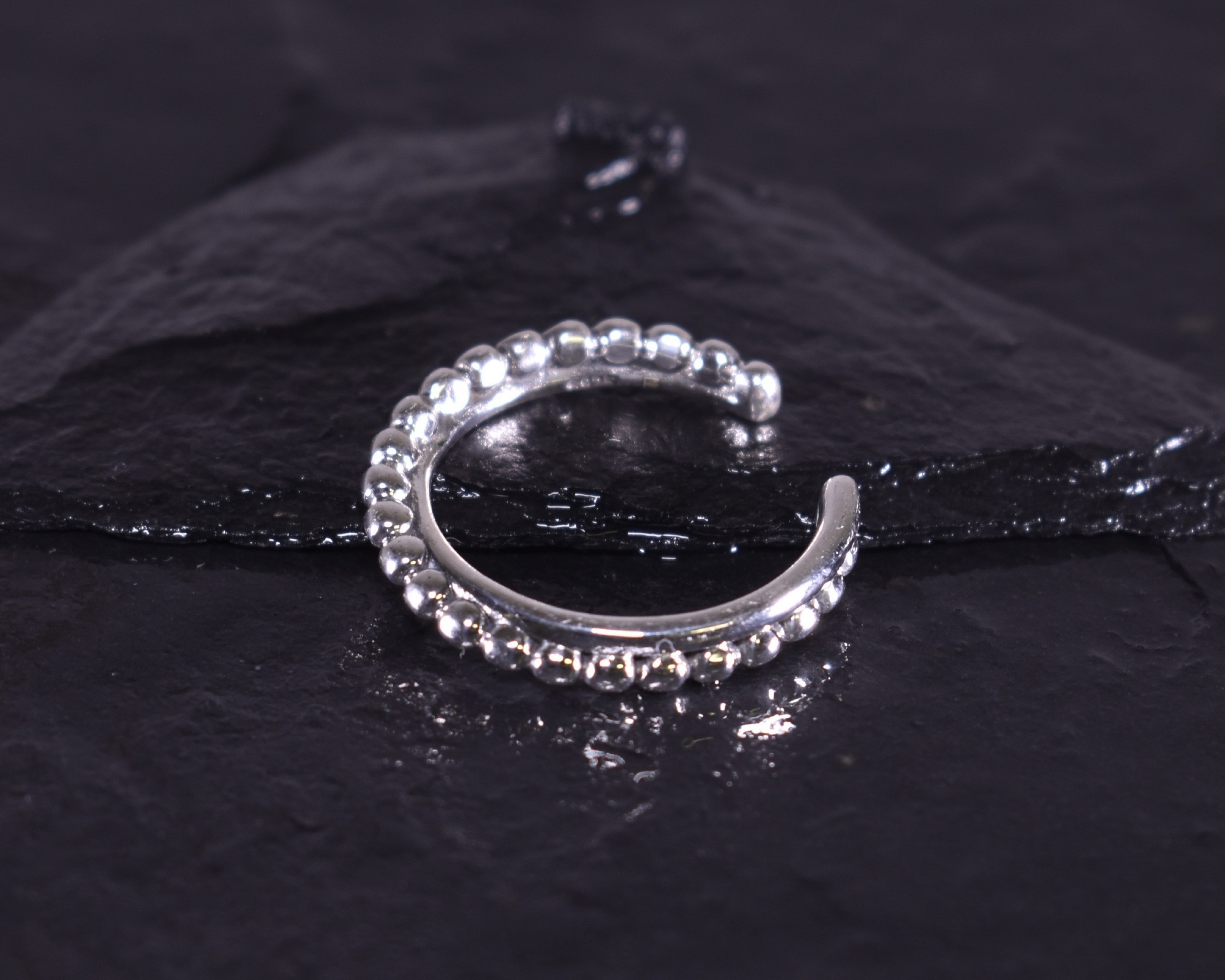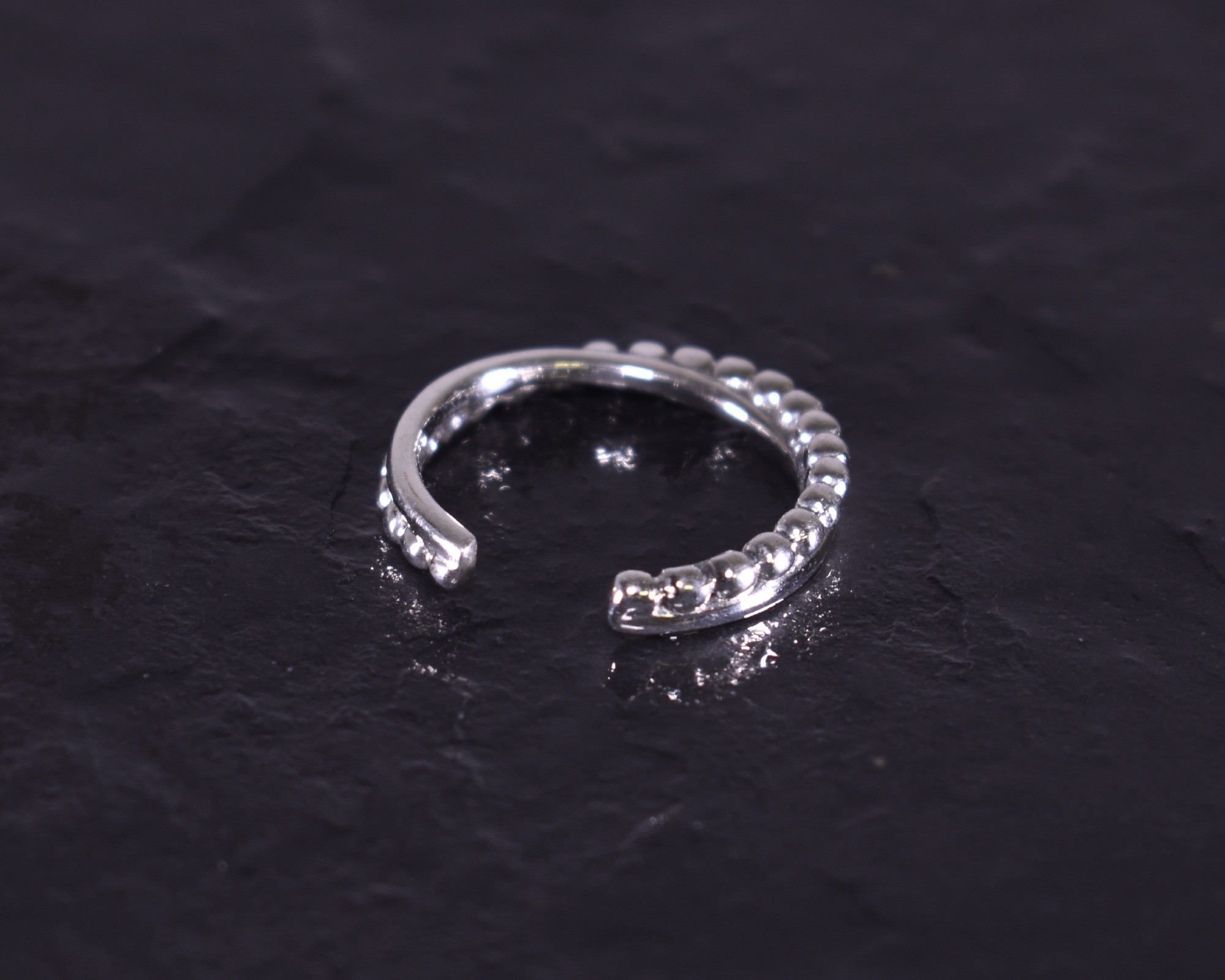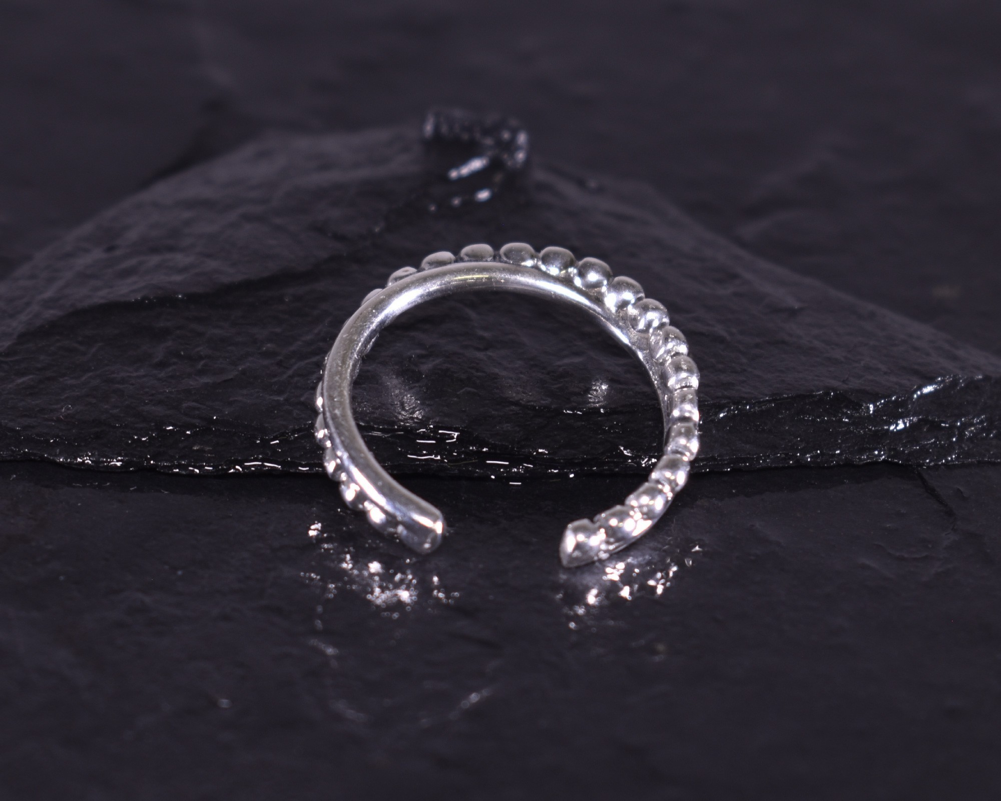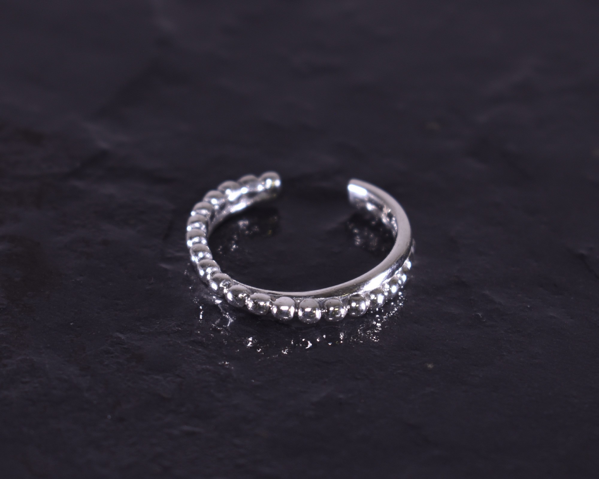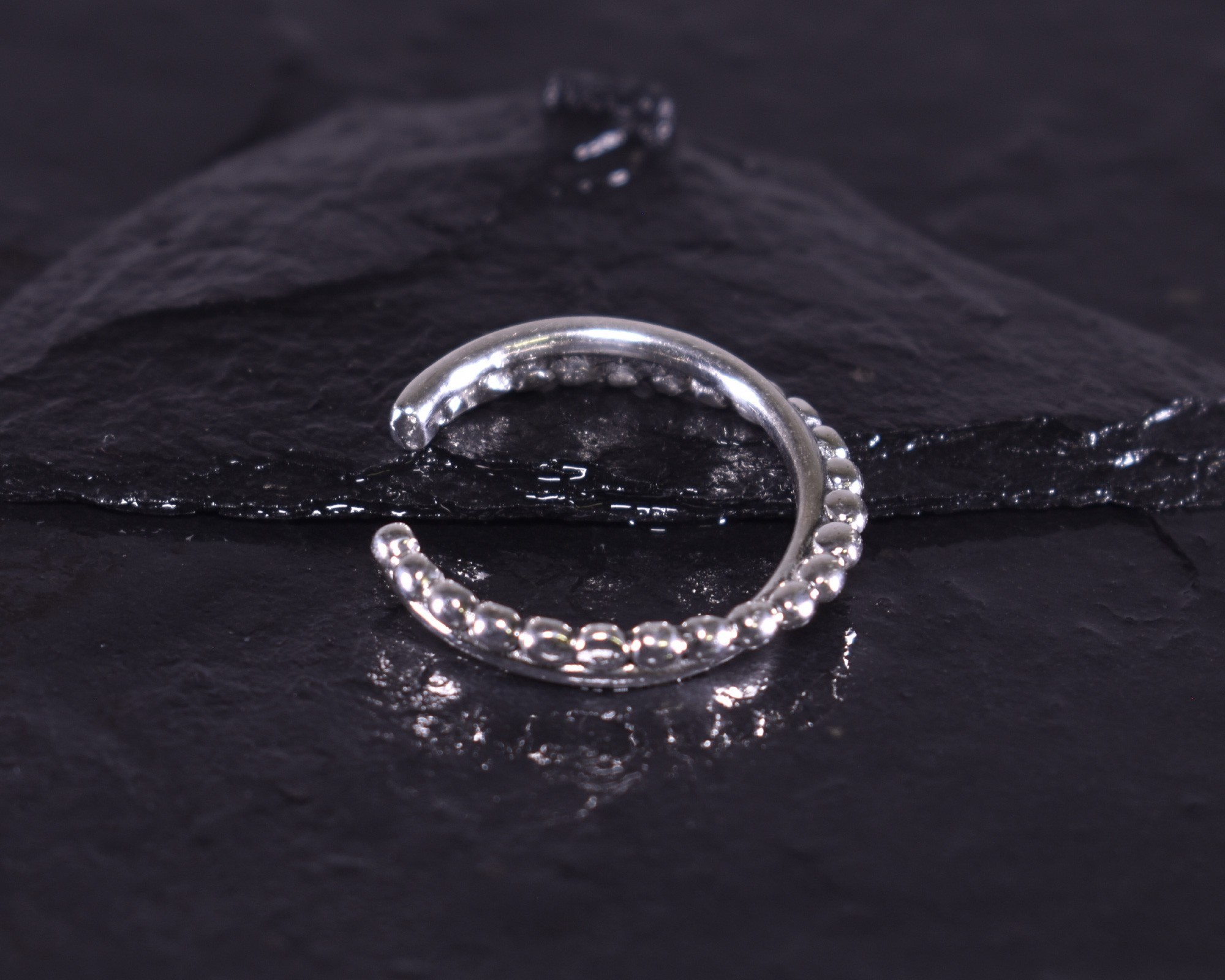 D ieser offene Silberring überzeugt mit seinem simplen raffinierten Design. Die zahlreichen Kugeln, die sich wie ein Kranz um den Ring legen, lassen das Schmuckstück einzigartig