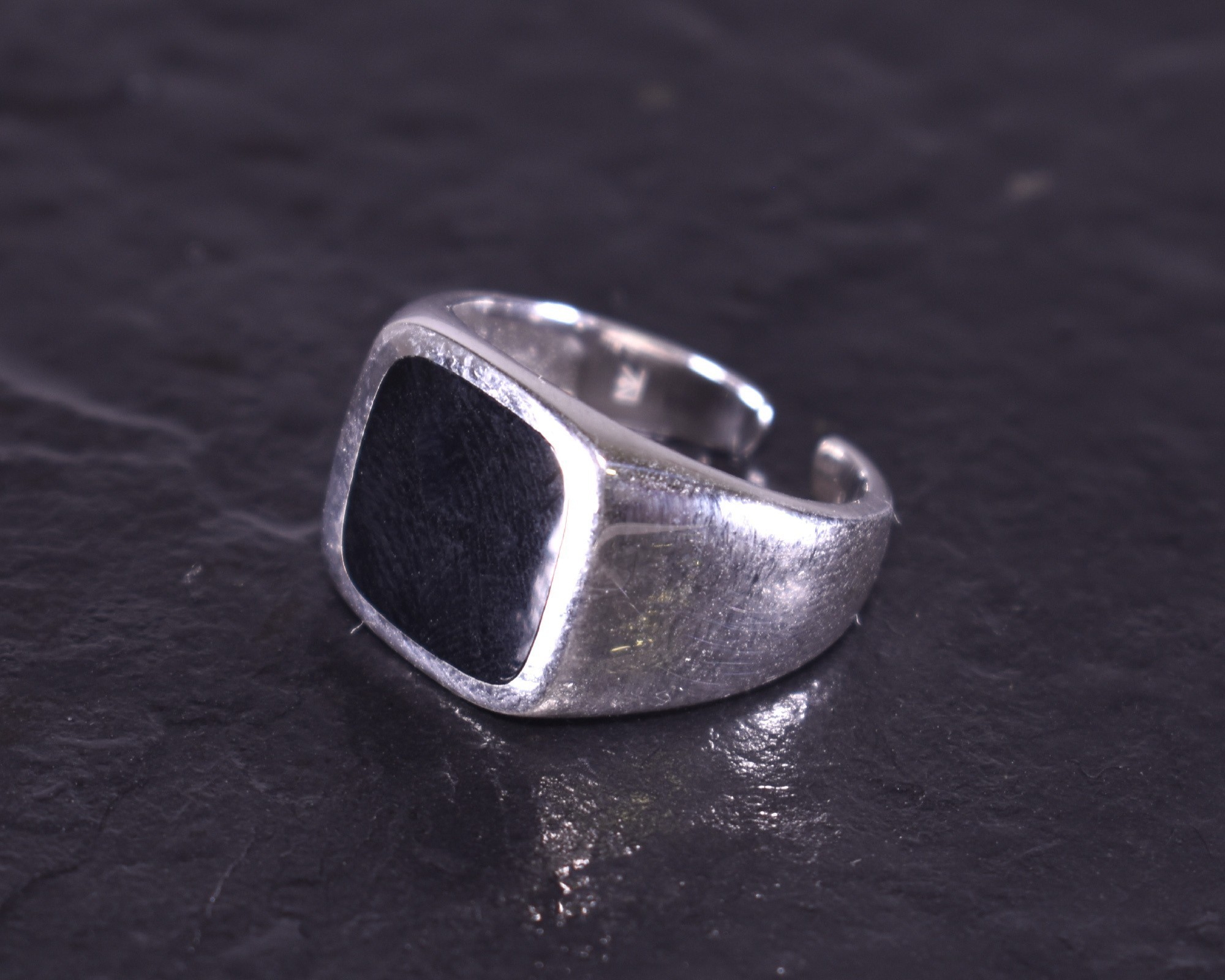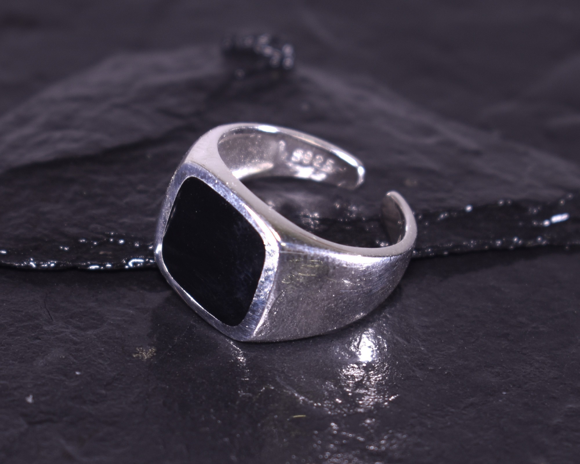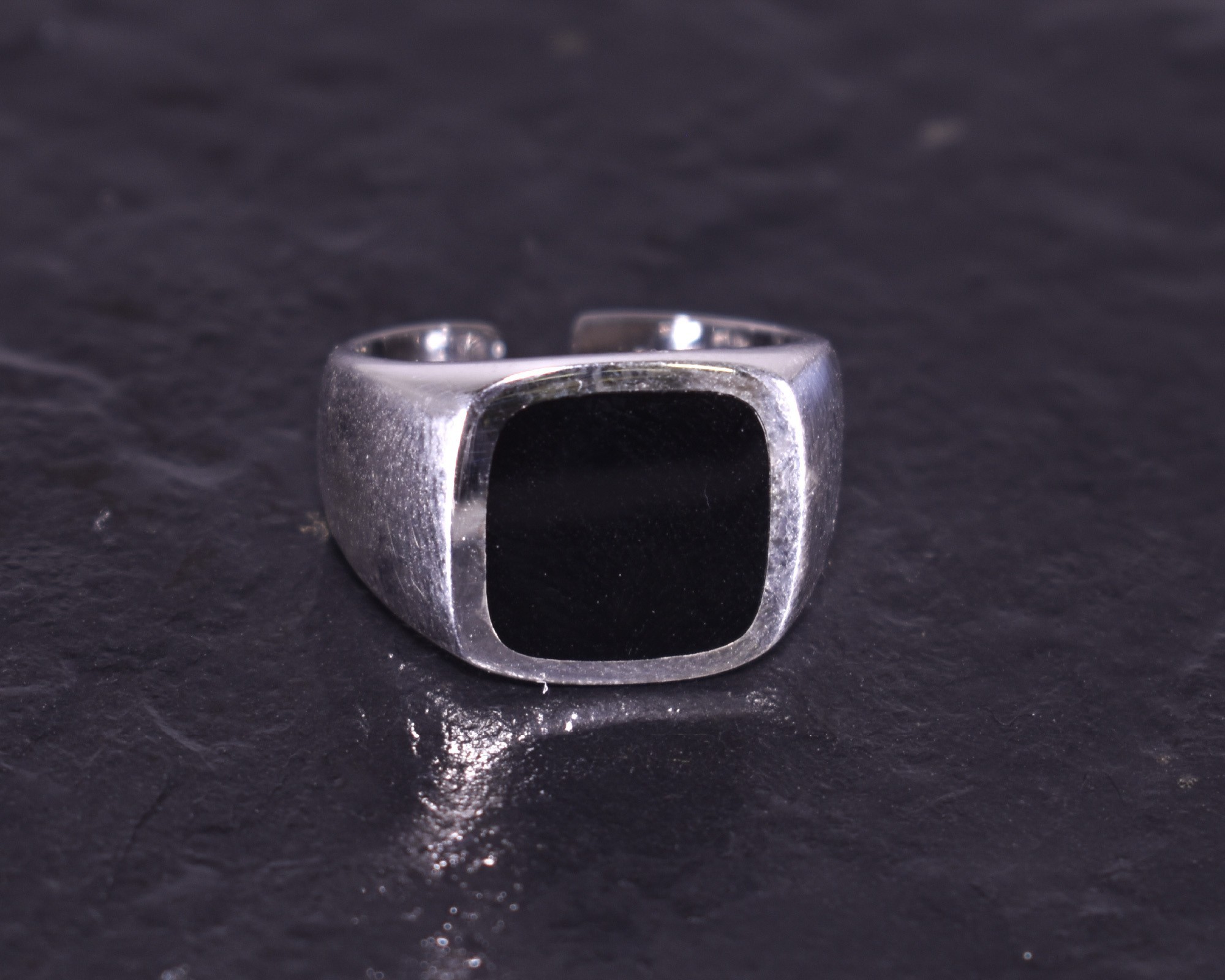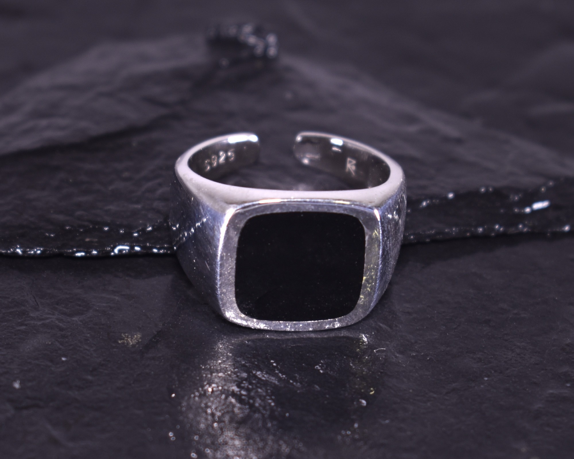 E in must have. Dieser simple androgyne aber zugleich auch stylishe offene Silberring ist ein schönes Beispiel eines stilvollen modernen Siegelringes. Die schwarze Fläche mit dem klassischen Design macht den Ring zu einem Accessoire für jedermann.