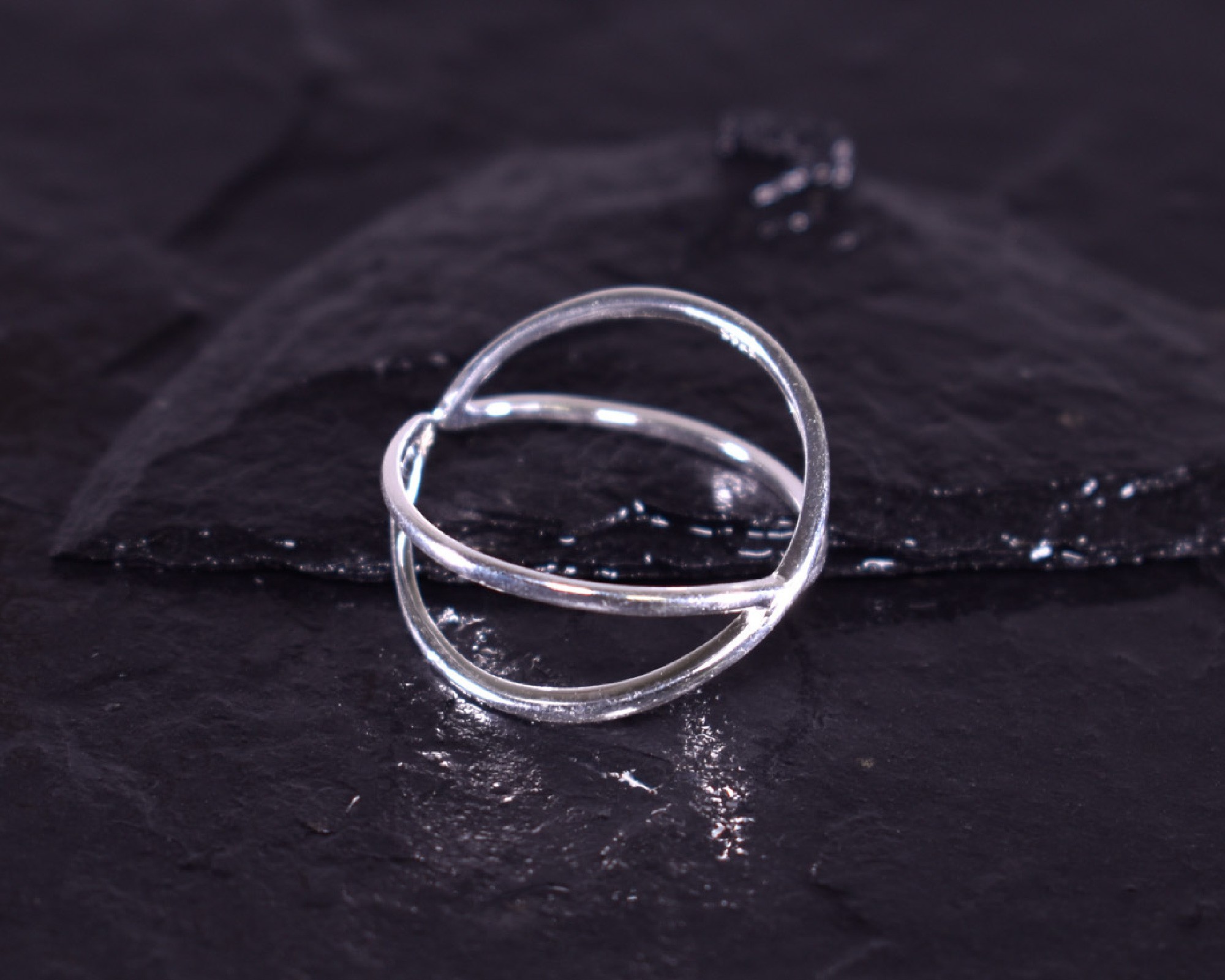 • Silberring mit filigran sich kreuzenden Ringschienen