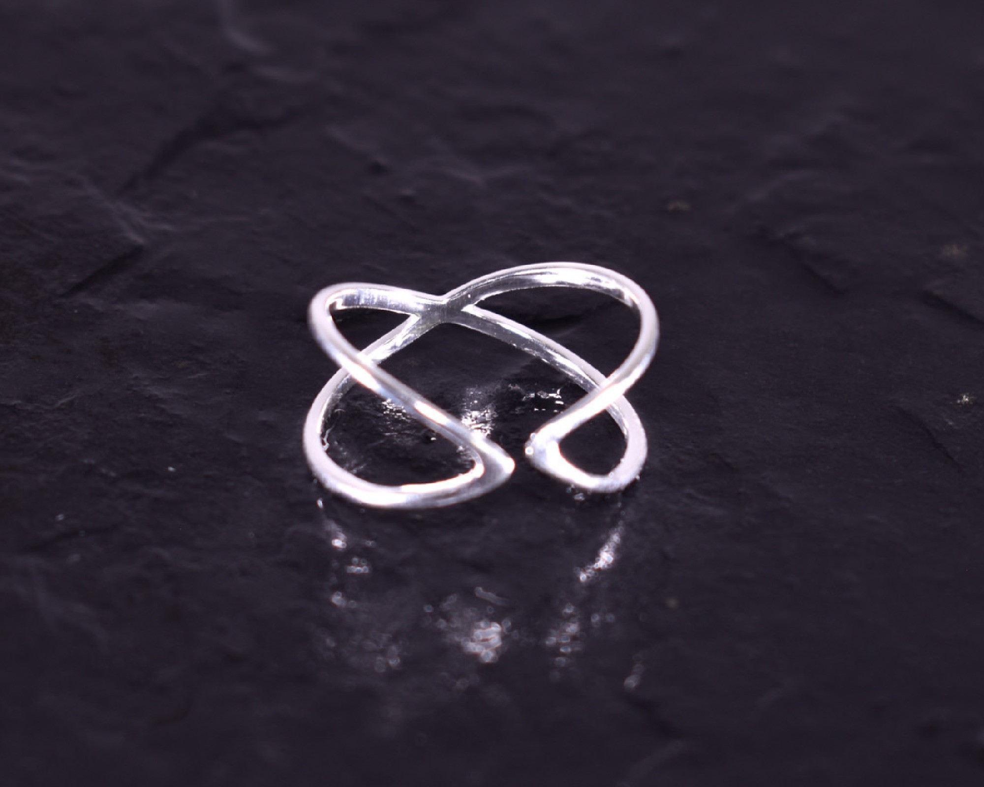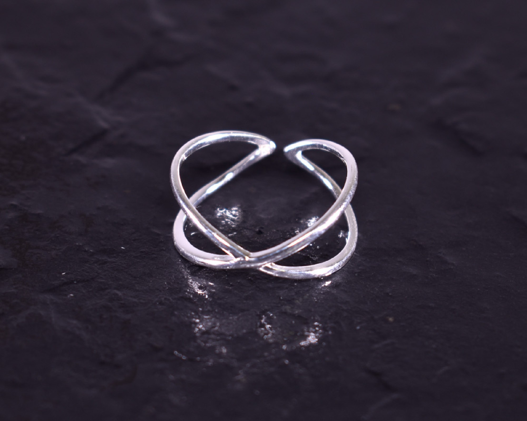 z wei filigrane sich kreuzende Ringschienen prägen das Design dieses offenen Silberringes. Die glattpolierte Oberfläche verleiht dem Ring noch mehr Eleganz. Gut kombinierbar und ein schönes Geschenk.