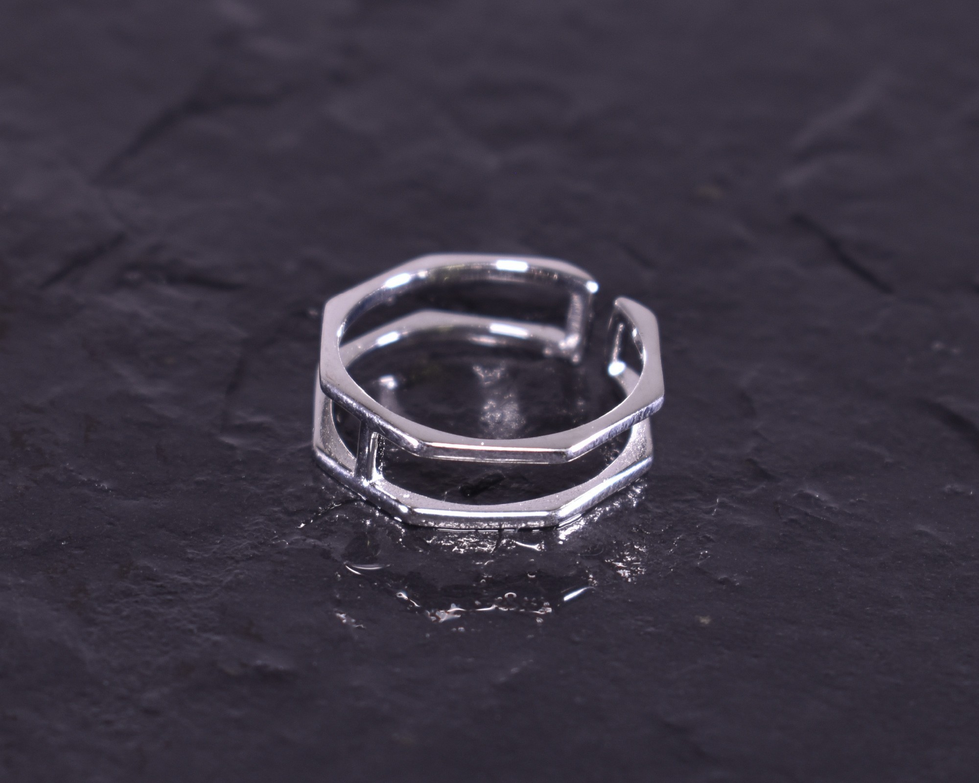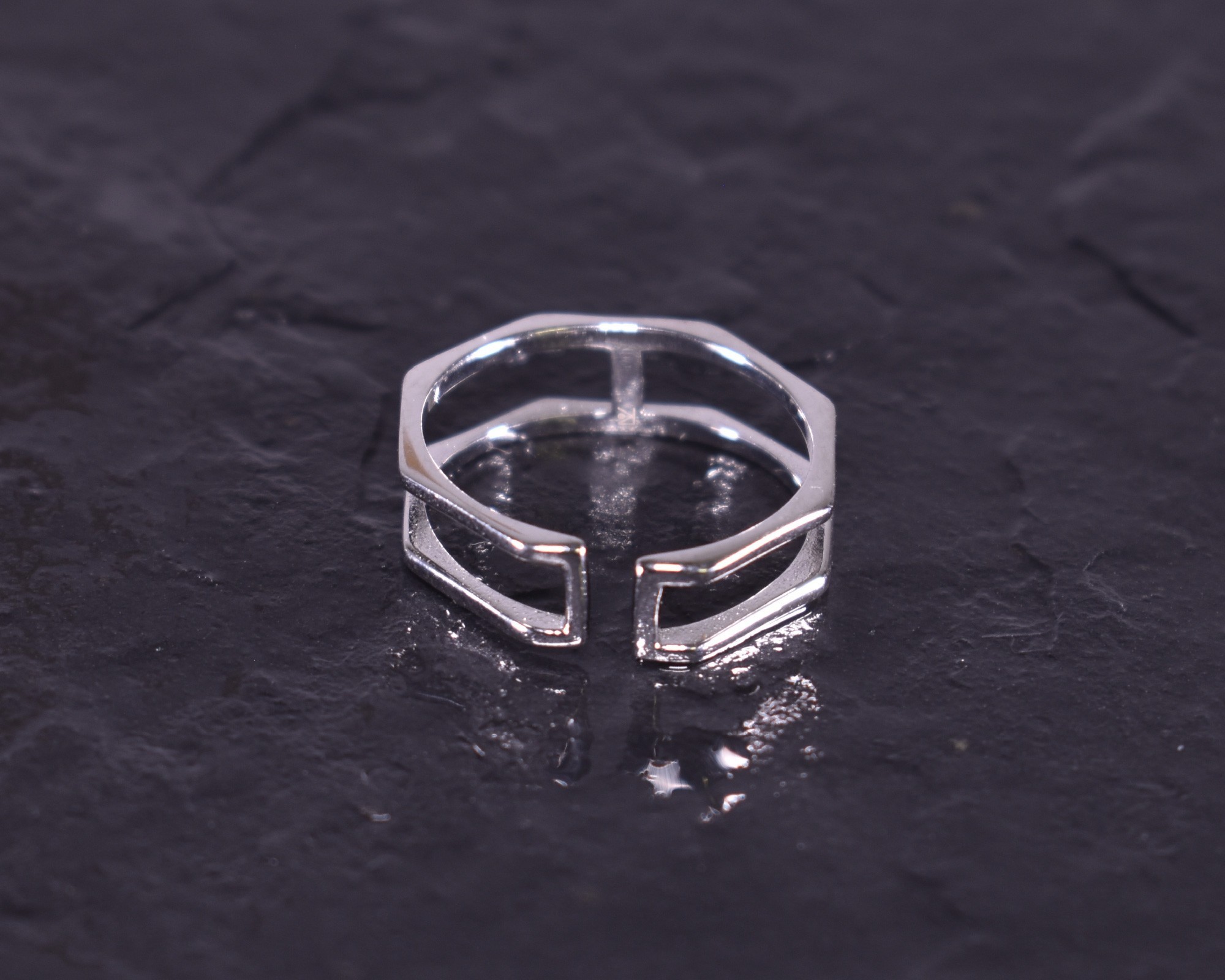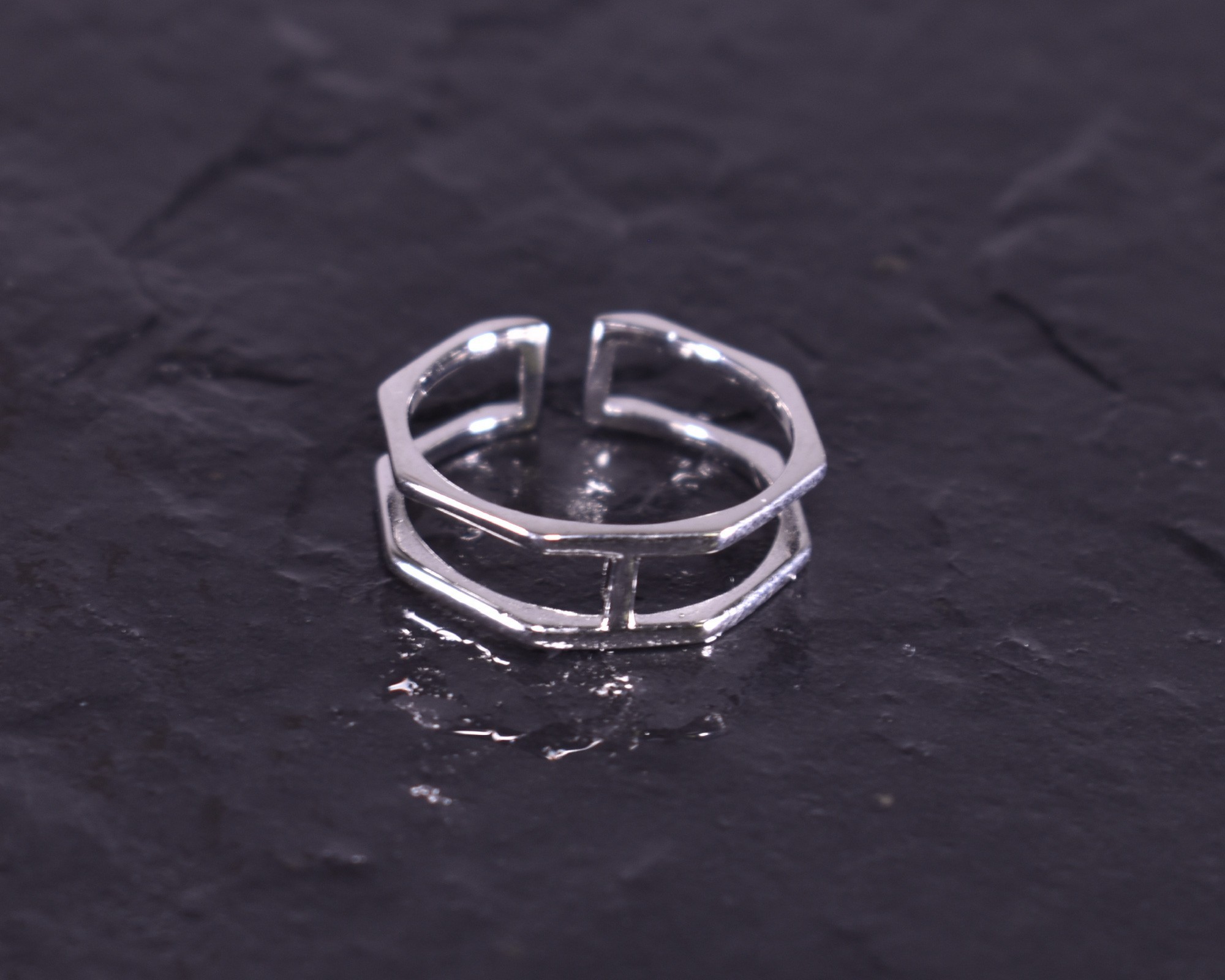 D iesen modernen offenen Silberring bilden zwei geometrisch geformte Ringe. Die filigrane Form mit der glattpolierten Oberfläche macht den Ring zu einem zeitlos schicken Schmuckstück.