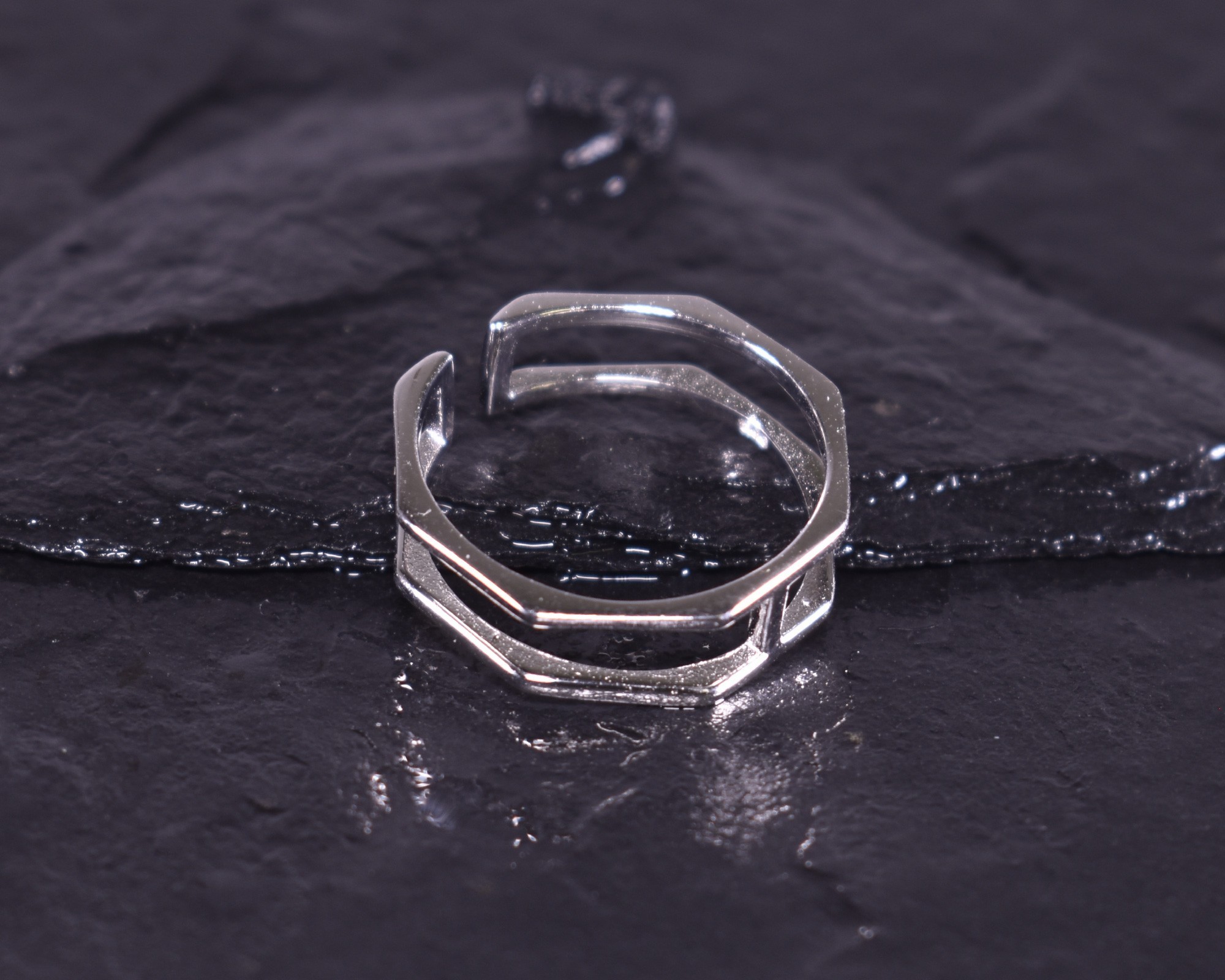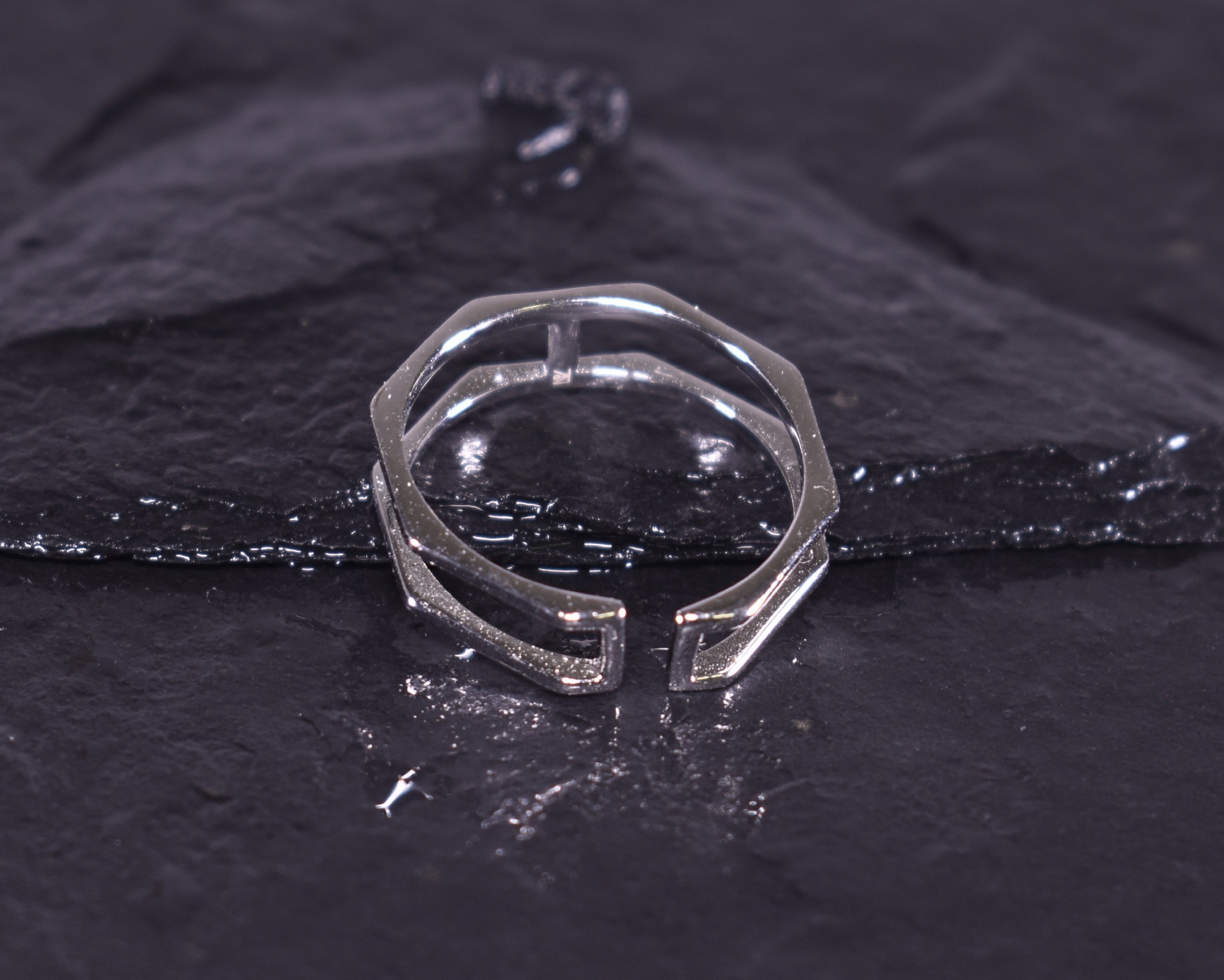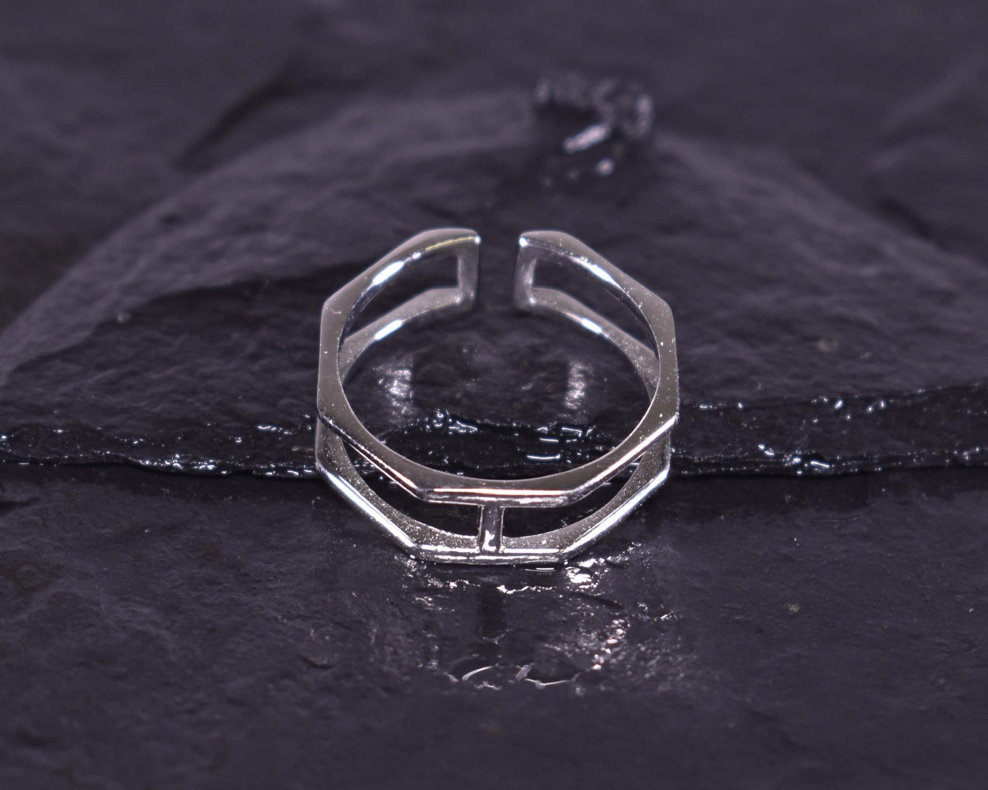 D iesen modernen offenen Silberring bilden zwei geometrisch geformte Ringe. Die filigrane Form mit der glattpolierten Oberfläche macht den Ring zu einem zeitlos schicken Schmuckstück.