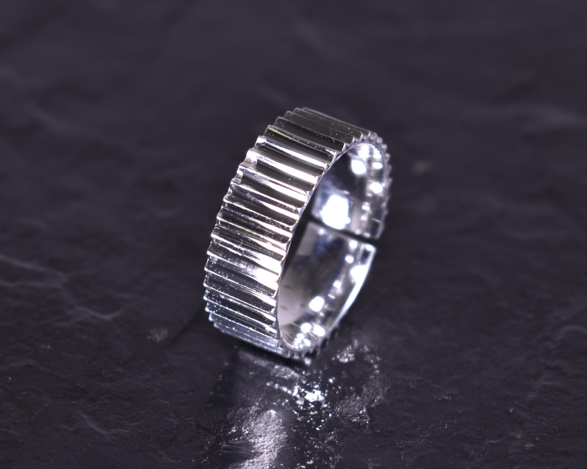 • Poliertes Silber mit Kerben