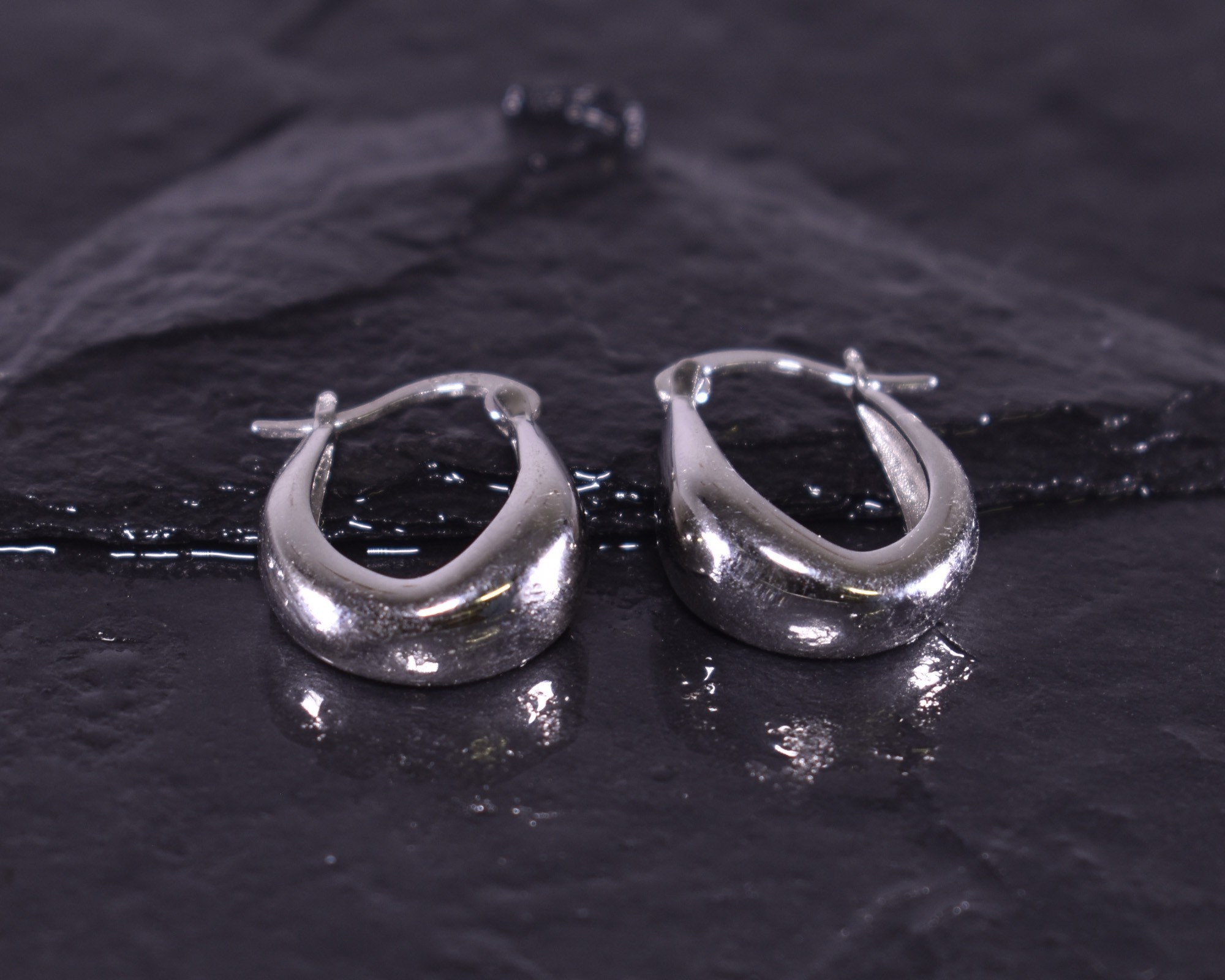 D iese aus Silber angefertigten massiven Silberohrringe verzaubern mit ihrem trendigen Design. Das ovalförmige Motiv des Schmuckstücks verleiht deinem Aussehen einen edlen Touch. Der Klappverschluss verschliesst die Ohrringe schnell und sicher.