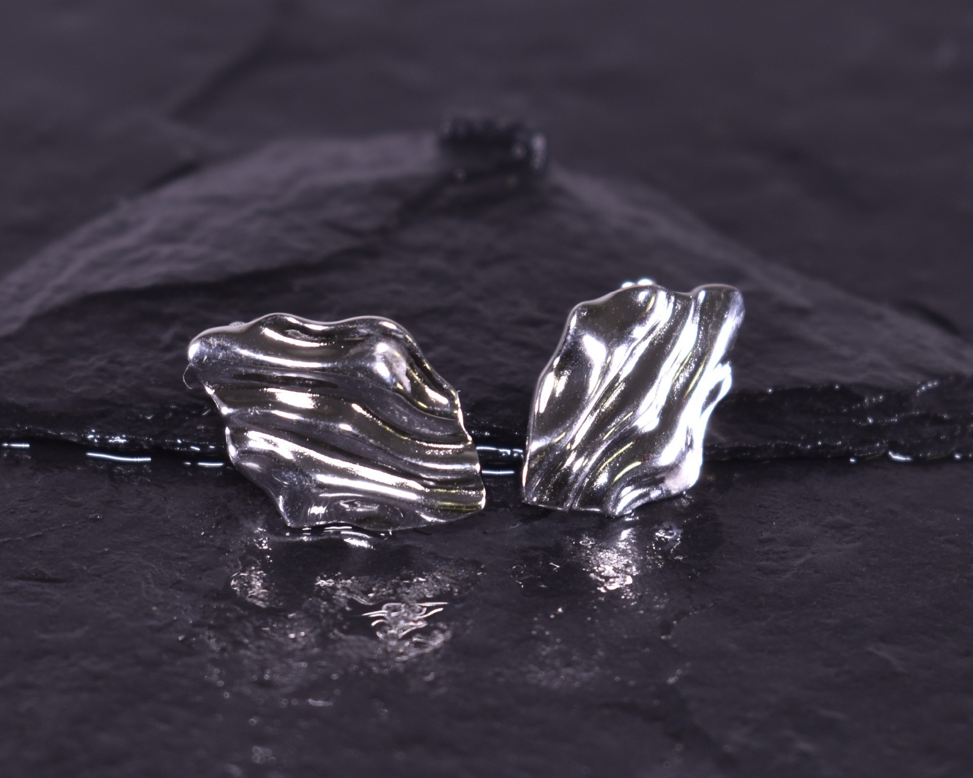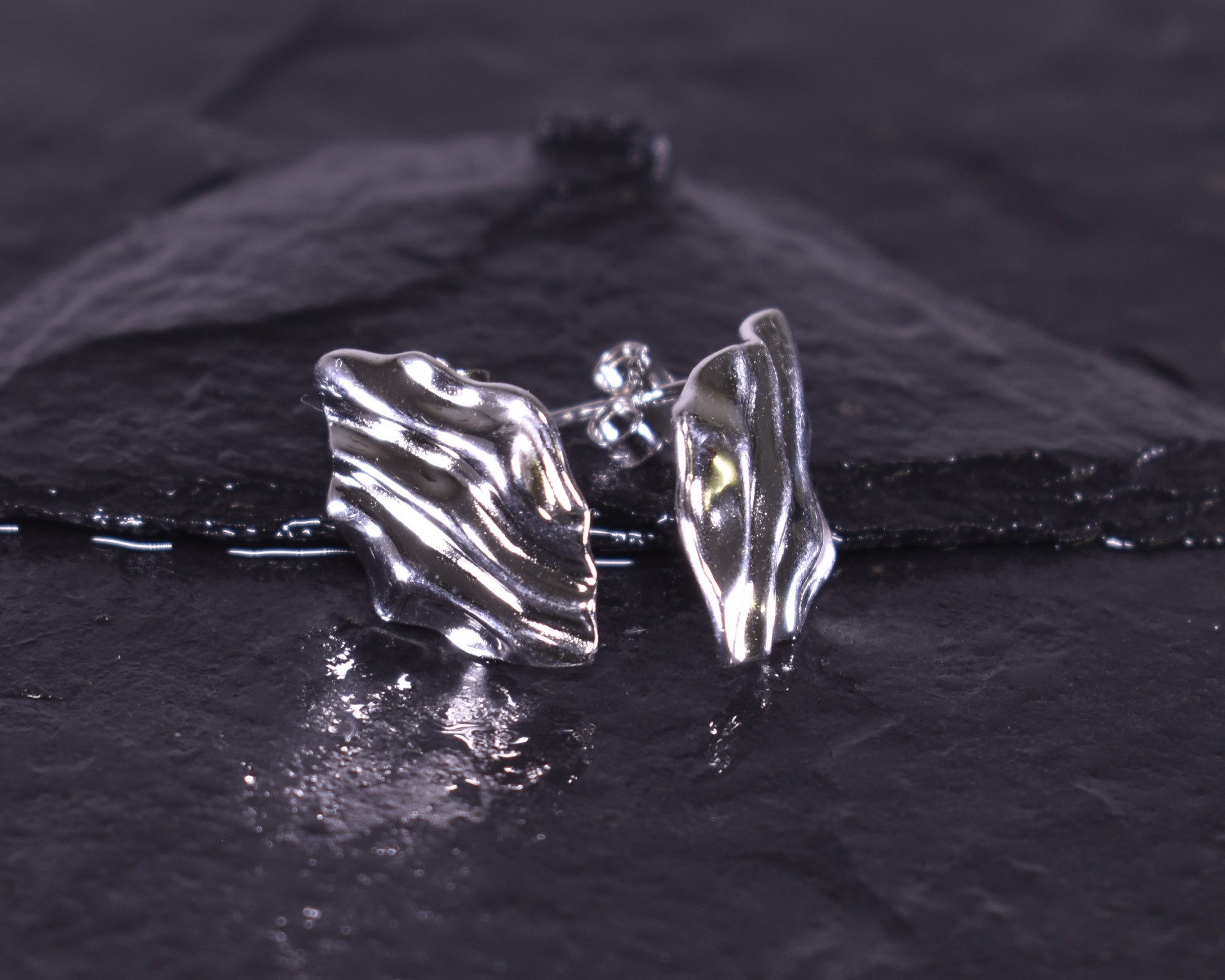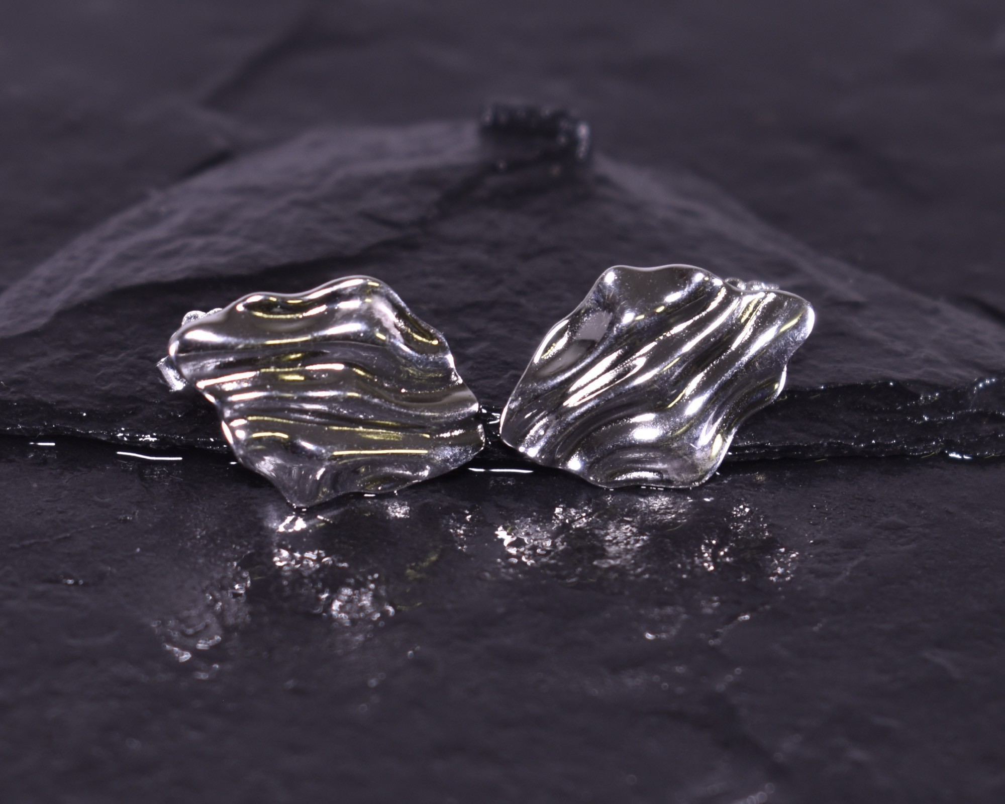 • Rautenähnliche Silberohrstecker mit welligem Design