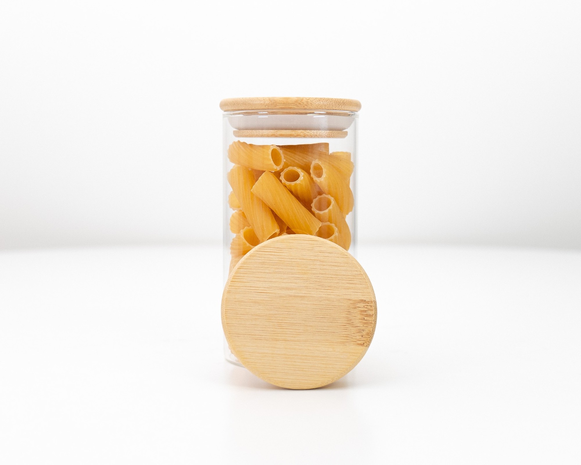 Runde Vorratsgläser mit Bambusdeckel einzeln