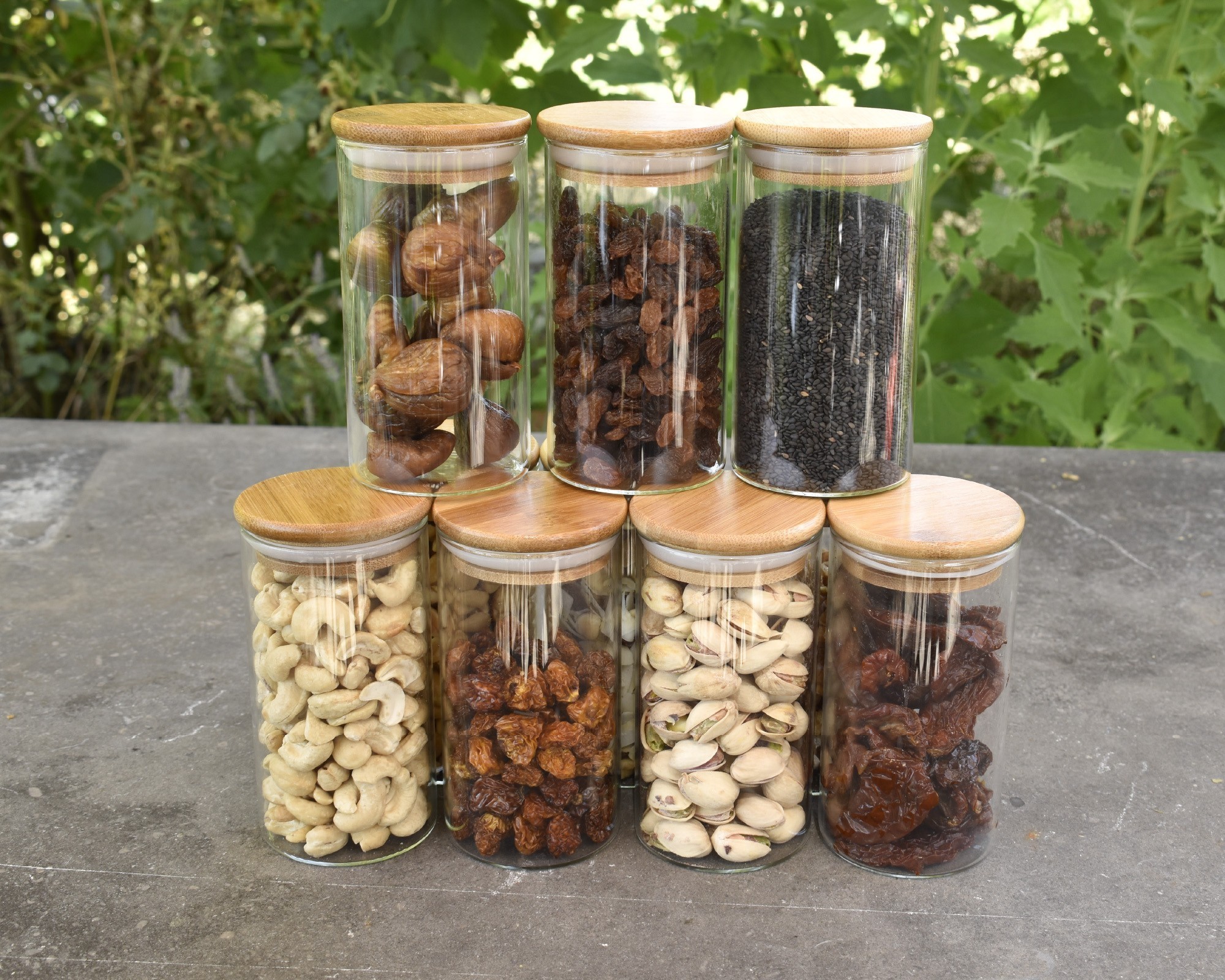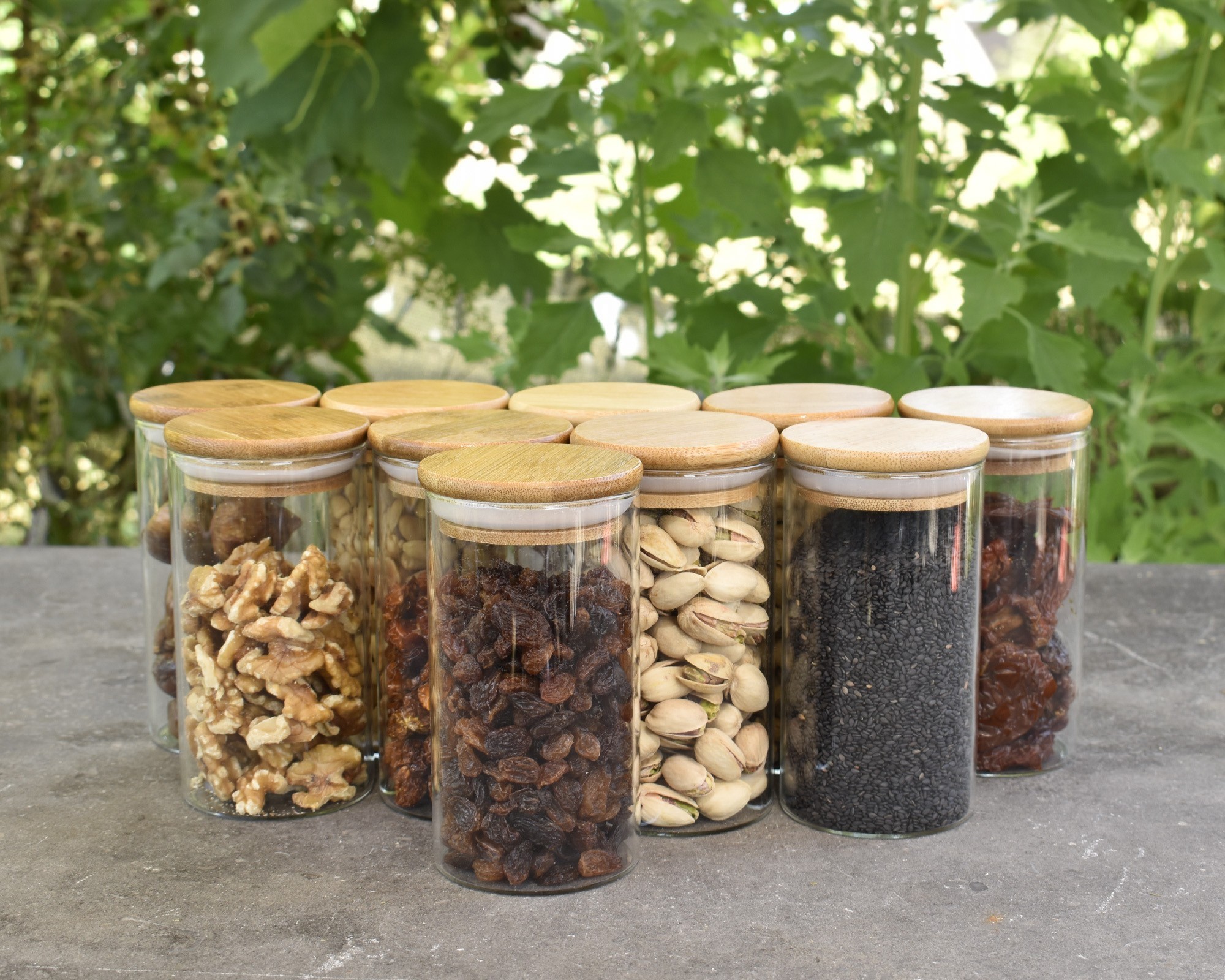 Bocaux de conservation étroits de 6 cm de hauteur avec couvercles en bambou, lot de 10