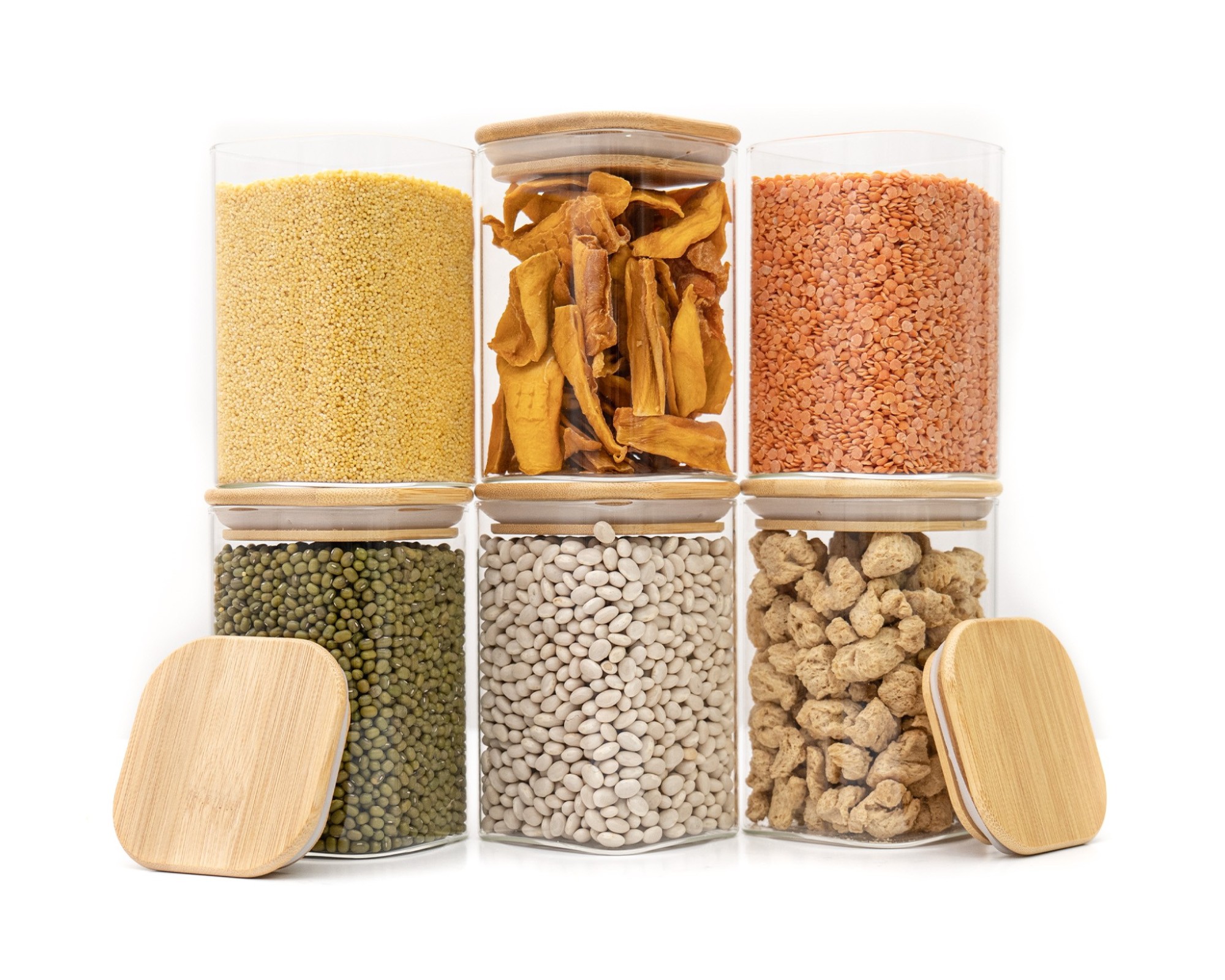 Conteneurs de rangement en verre élégants avec couvercles carrés en bambou