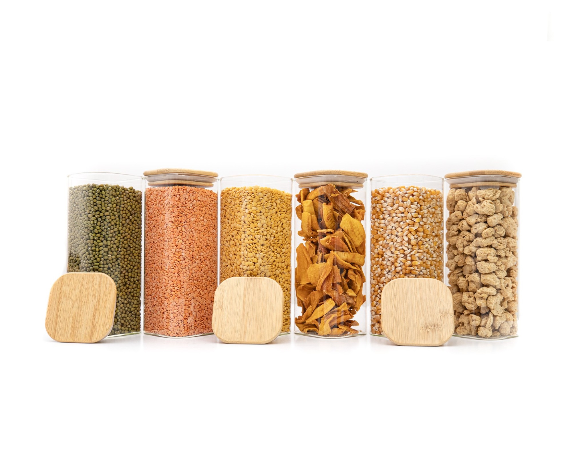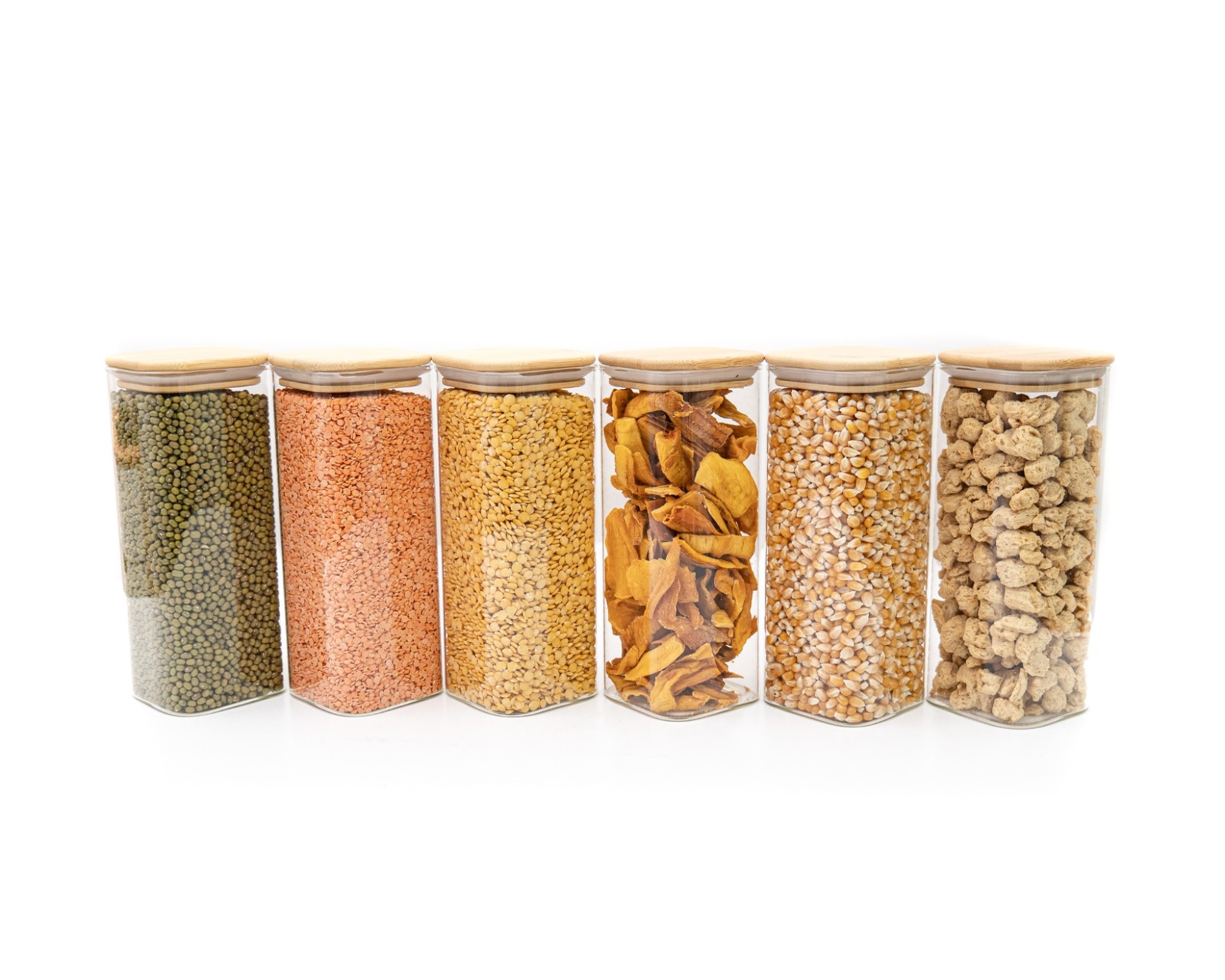 Conteneurs de rangement en verre élégants avec couvercles carrés en bambou