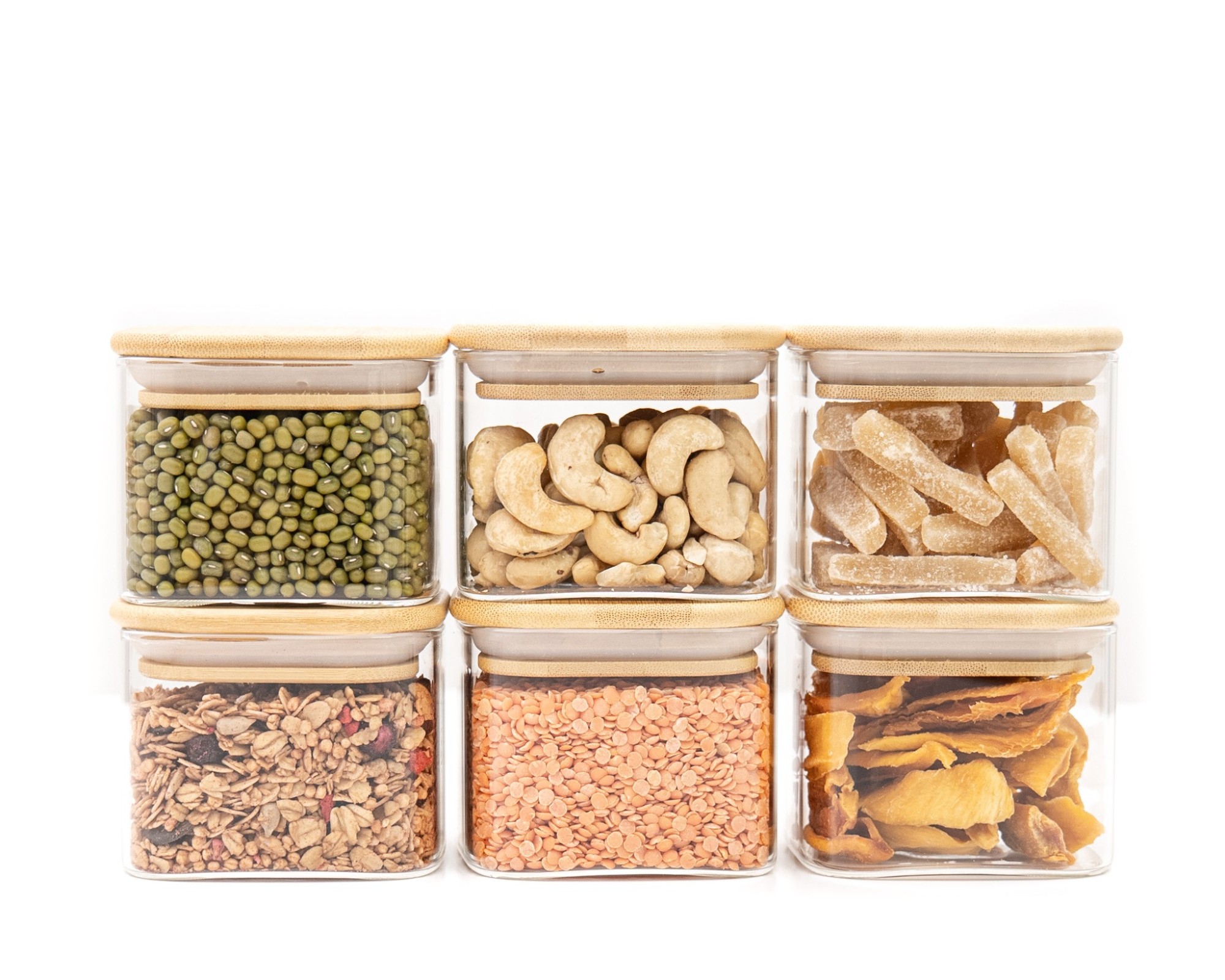 Conteneurs de rangement en verre élégants avec couvercles carrés en bambou