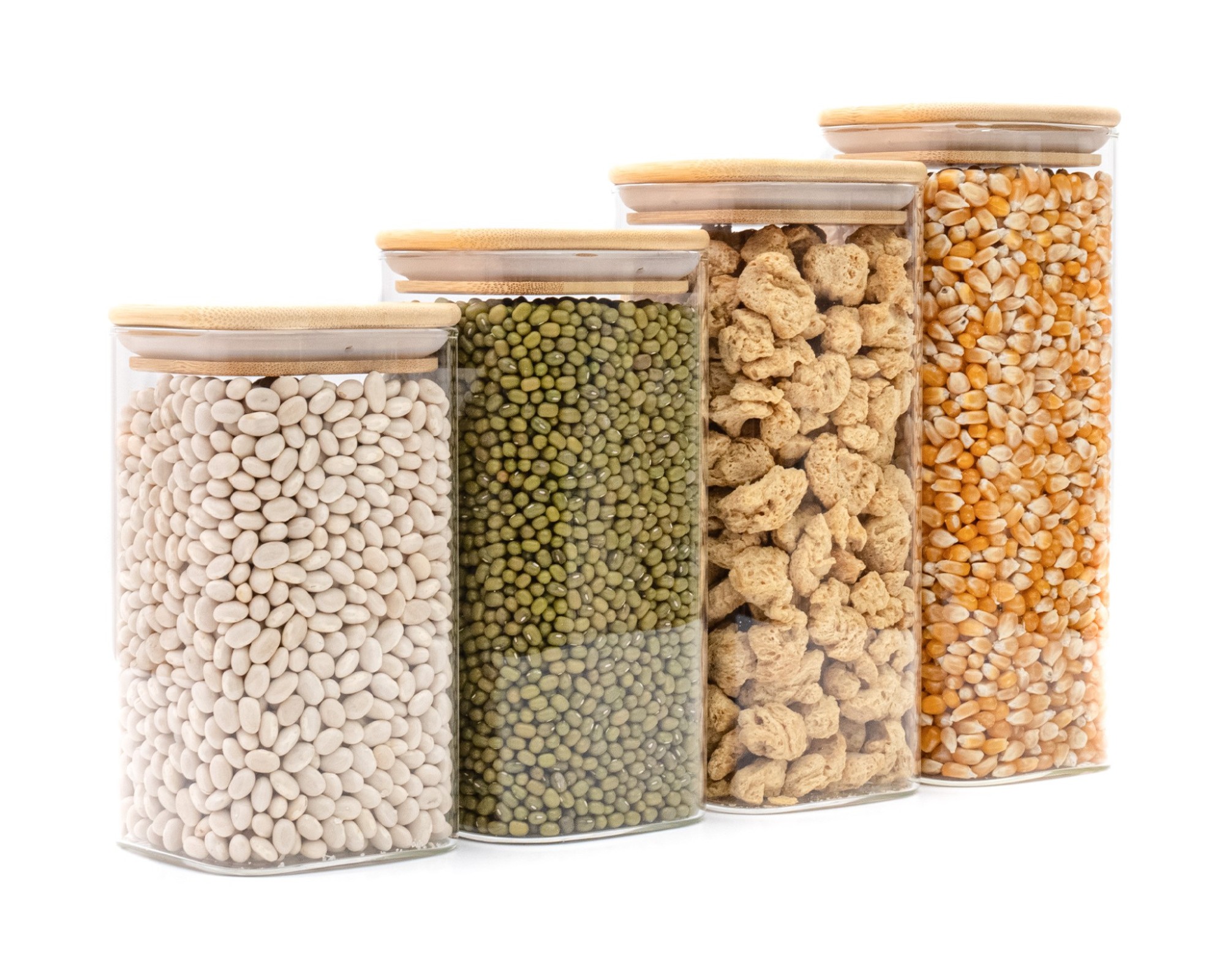 Avec ces 4 pots de conservation carrés étroits (volume 700ml, 800ml, 1000ml et 1200ml) vous pourrez conserver vos provisions en toute sécurité toute l'année. L’avantage des bocaux de conservation transparents est que vous savez toujours comment se portent vos aliments. À travers le