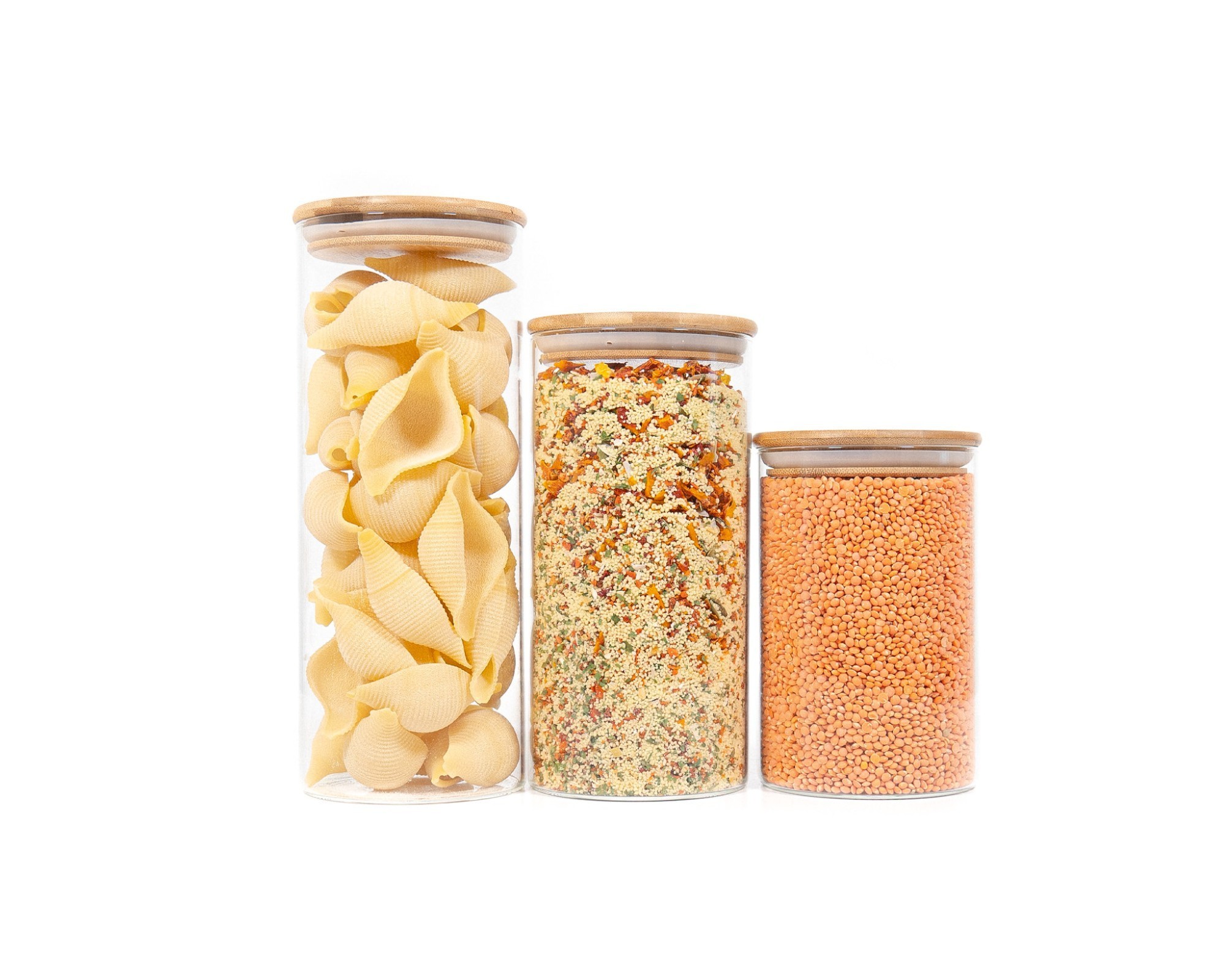 Bocaux de rangement ronds avec couvercles en bambou, lot de 5