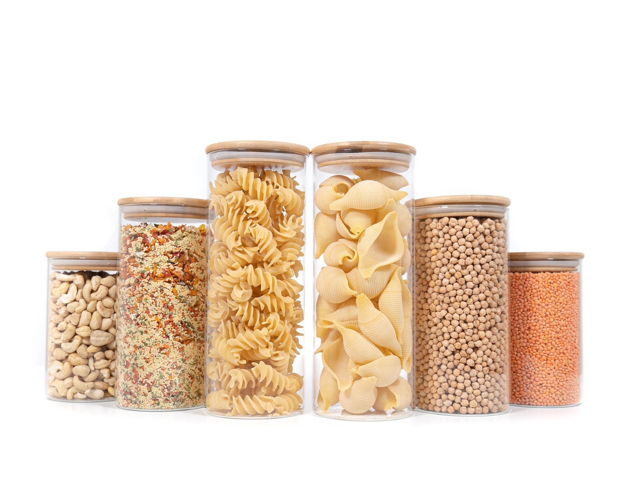 Bocaux de rangement ronds avec couvercles en bambou, lot de 5
