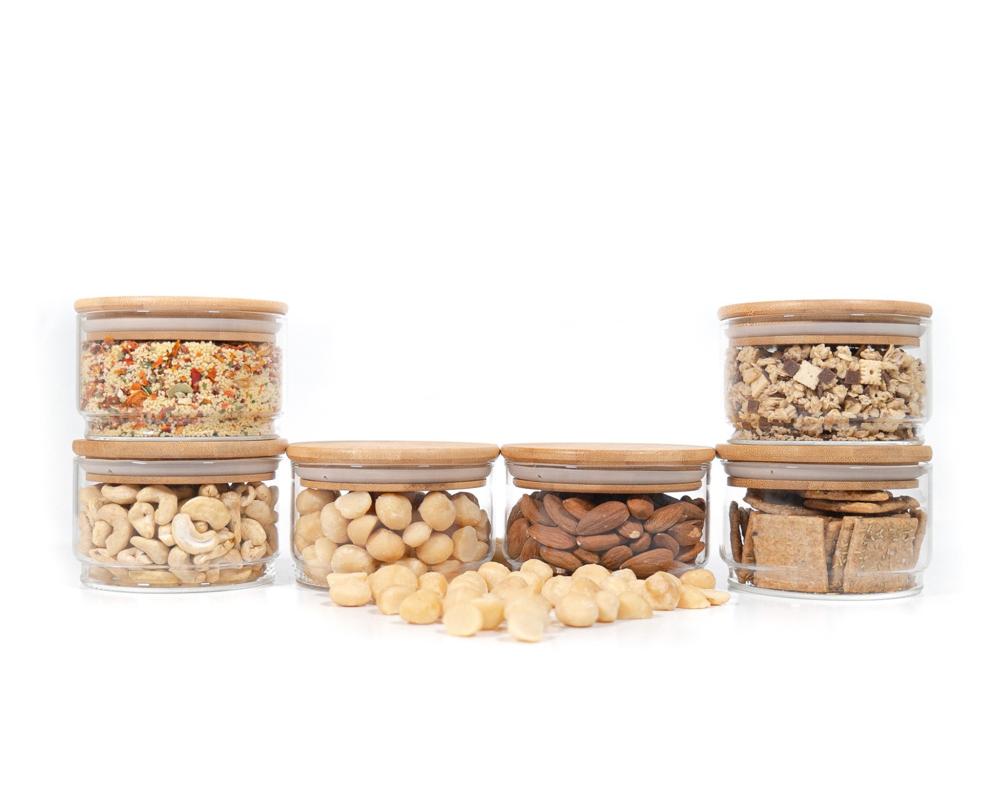 6 Récipients en verre empilables, garnir de couvercle en bambou