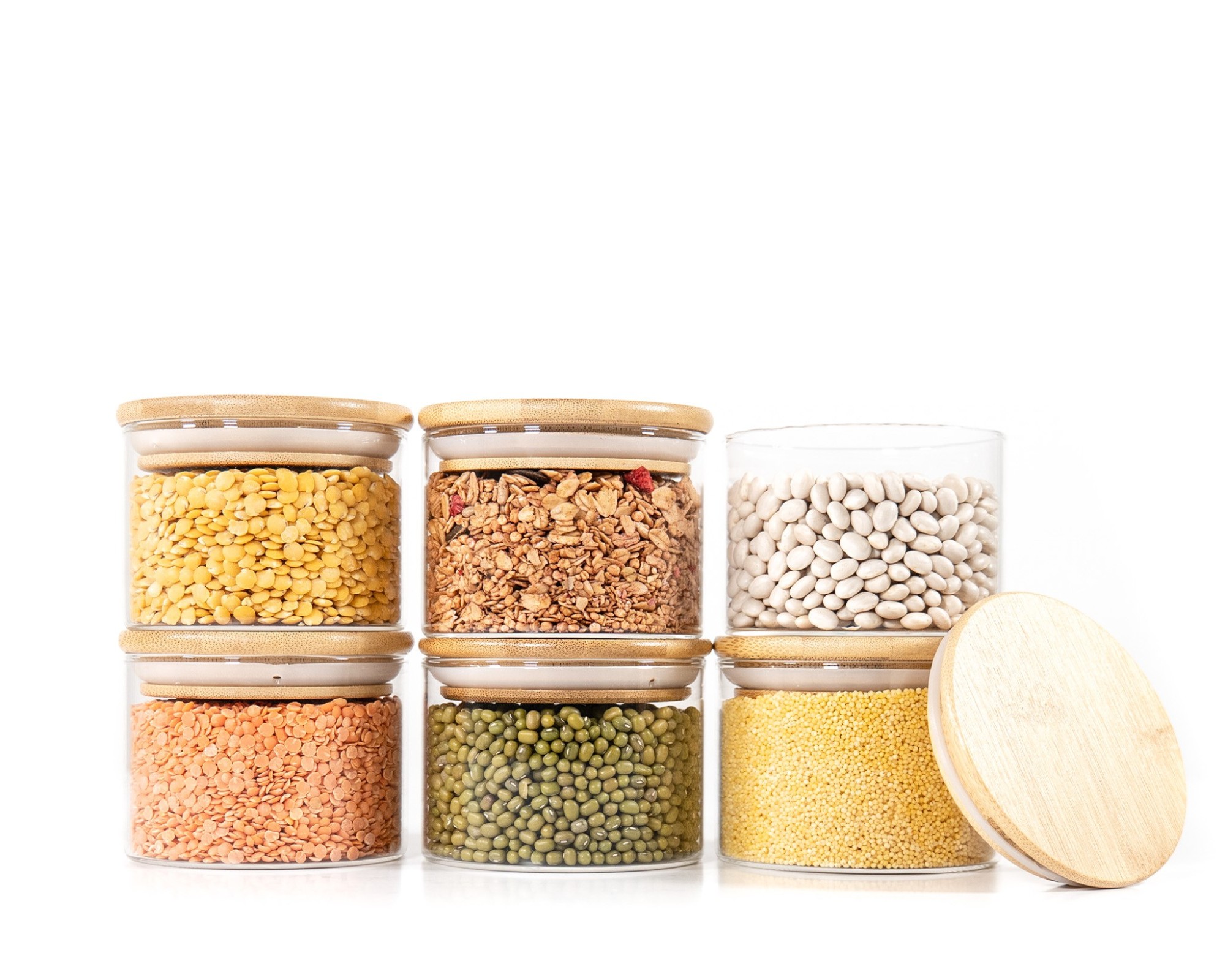 Pour tous les aliments stockés à sec, tels que : céréales, graines, noix, épices, pâtes, herbes, légumineuses, muesli, café, confiseries, etc. Surtout avec les épices, évitez la lumière directe...