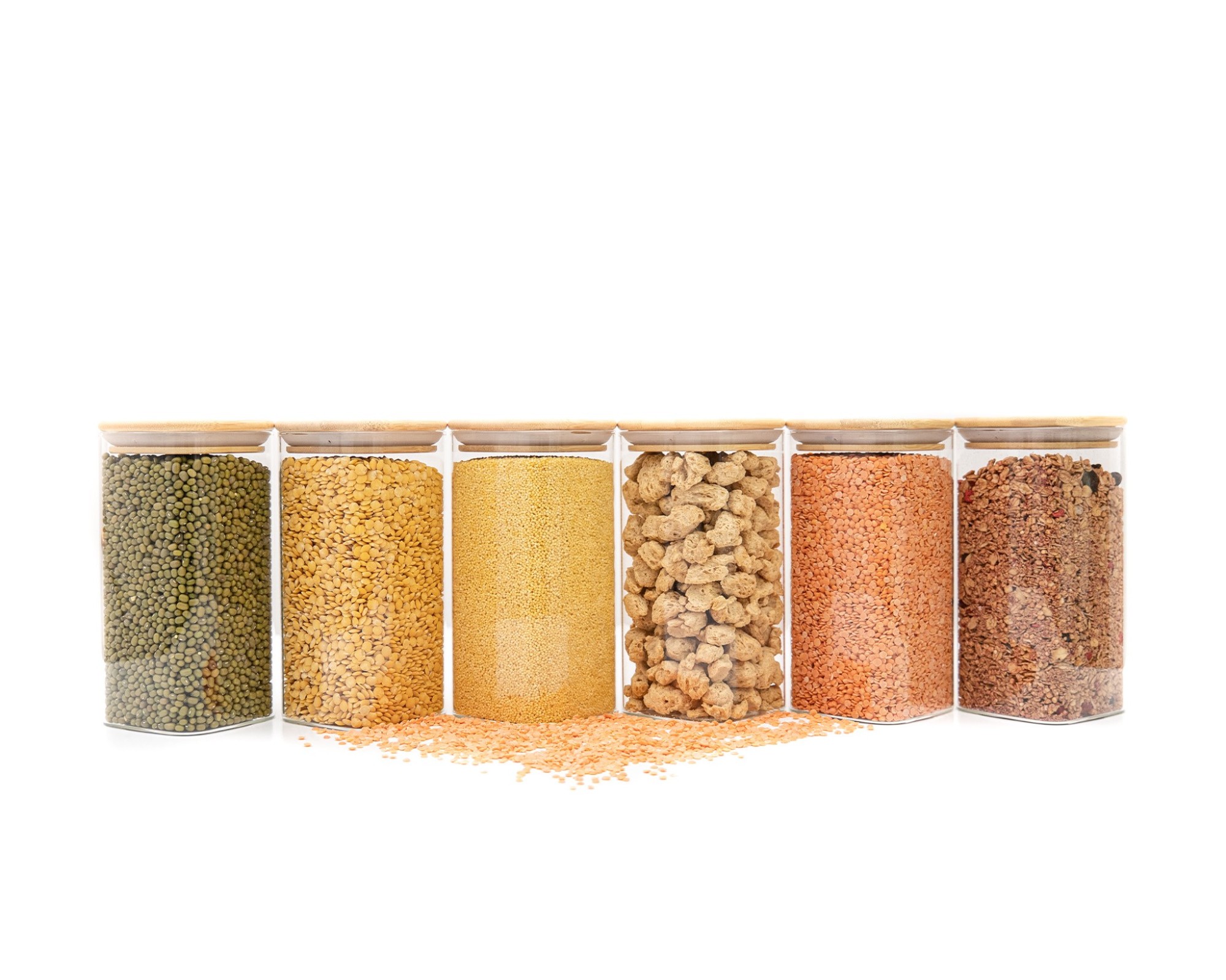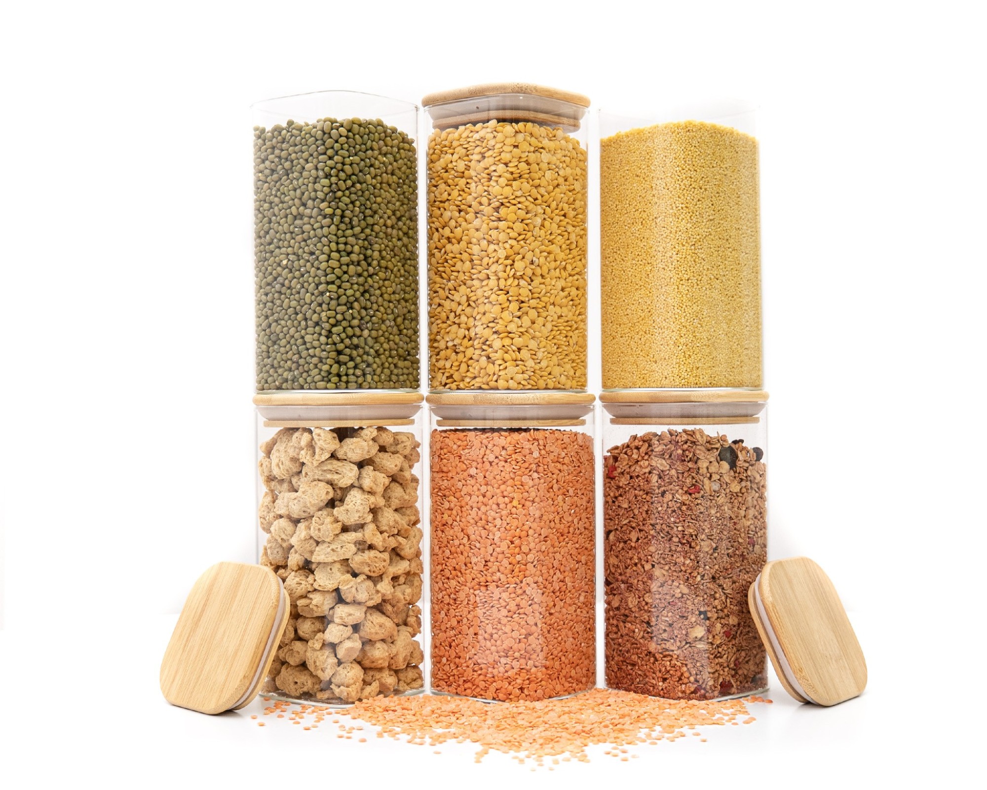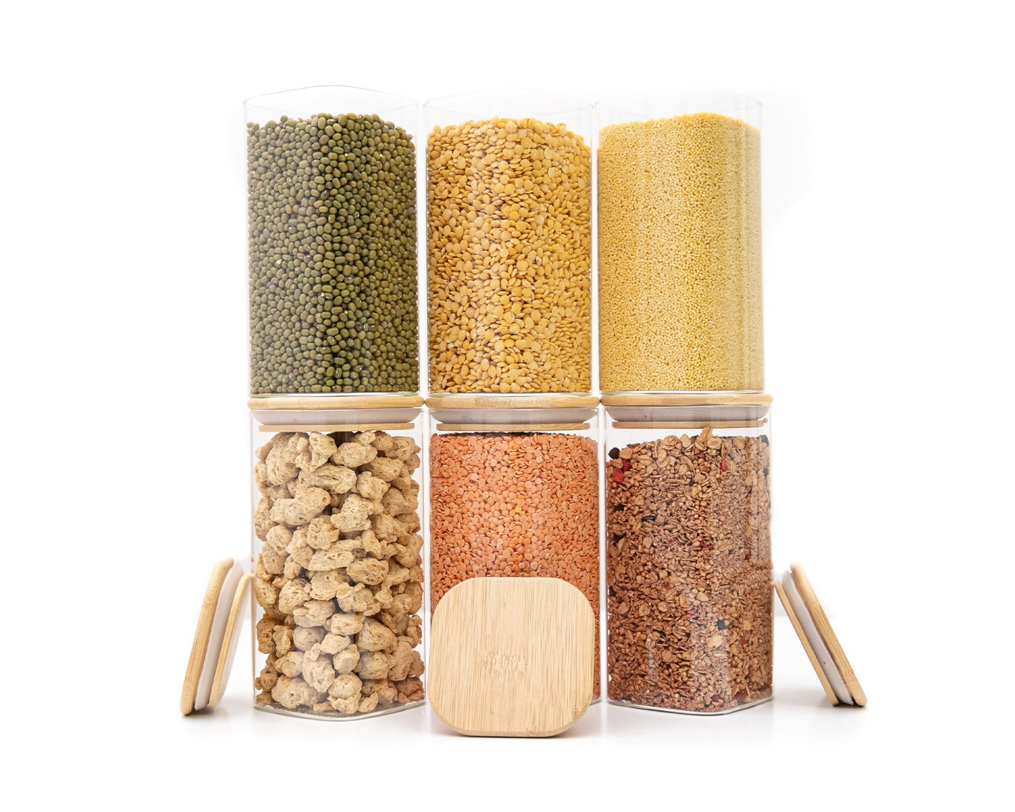 Stylish glass storage containers with square bamboo lids