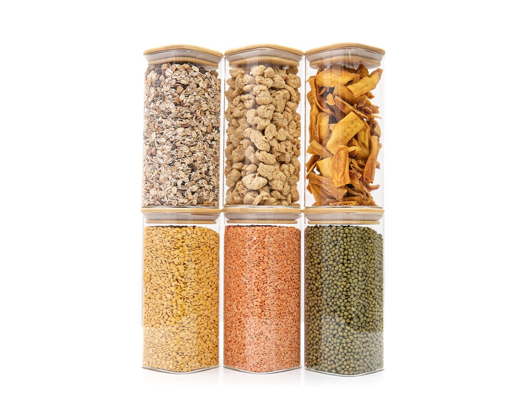 With these 6 square storage jars, each with a volume of 500ml, you can safely store your supplies all year round. The advantage of transparent storage jars is that you always know how your food is doing. Through the