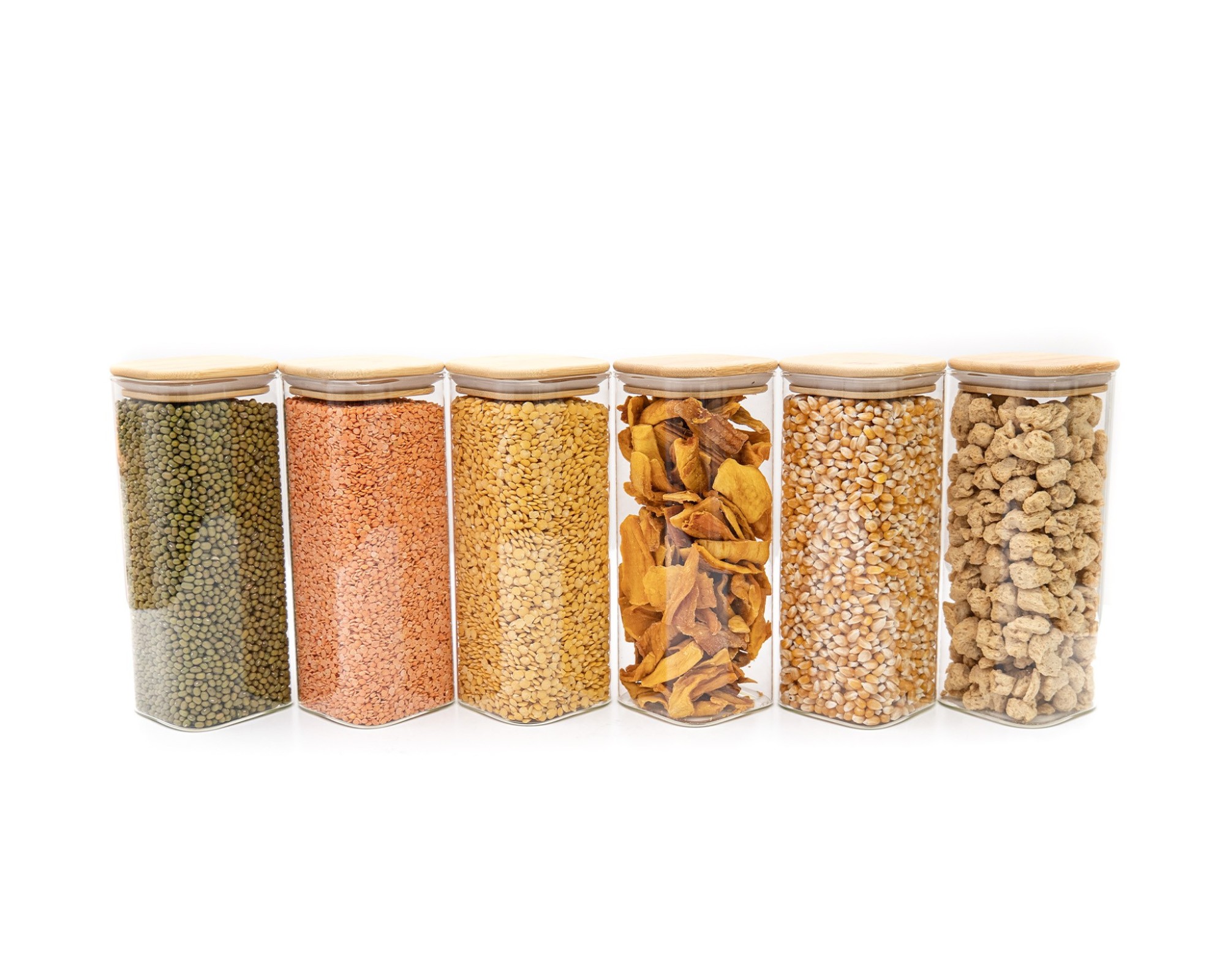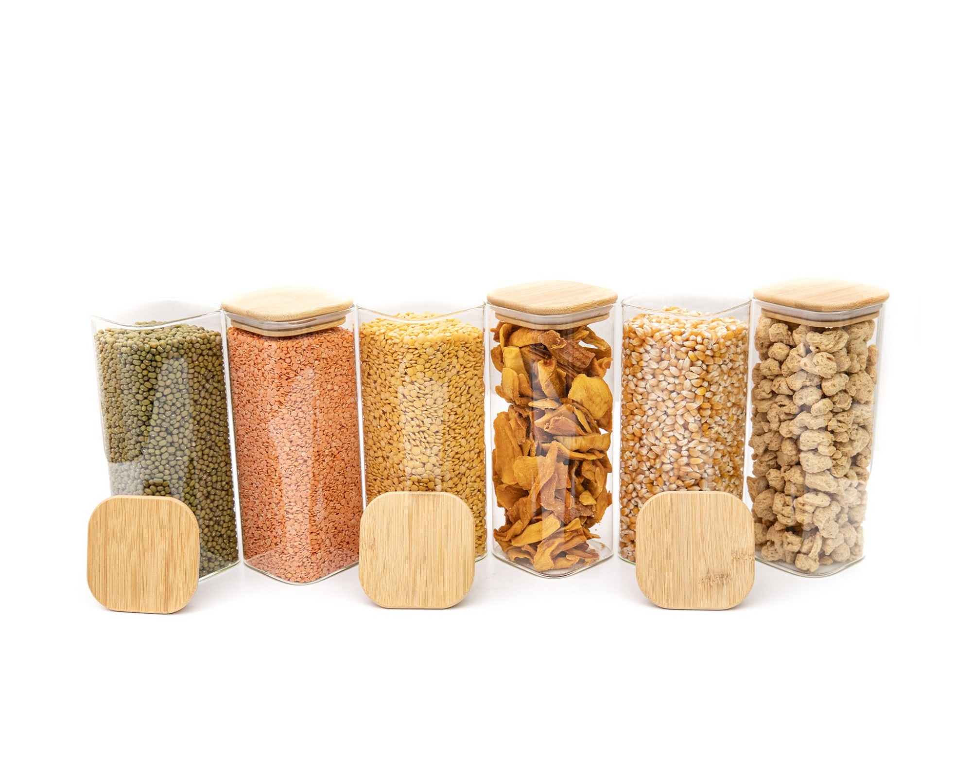 Stylish glass storage containers with square bamboo lids