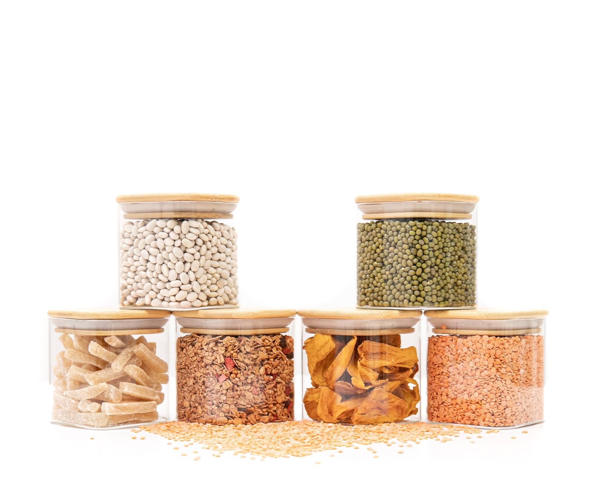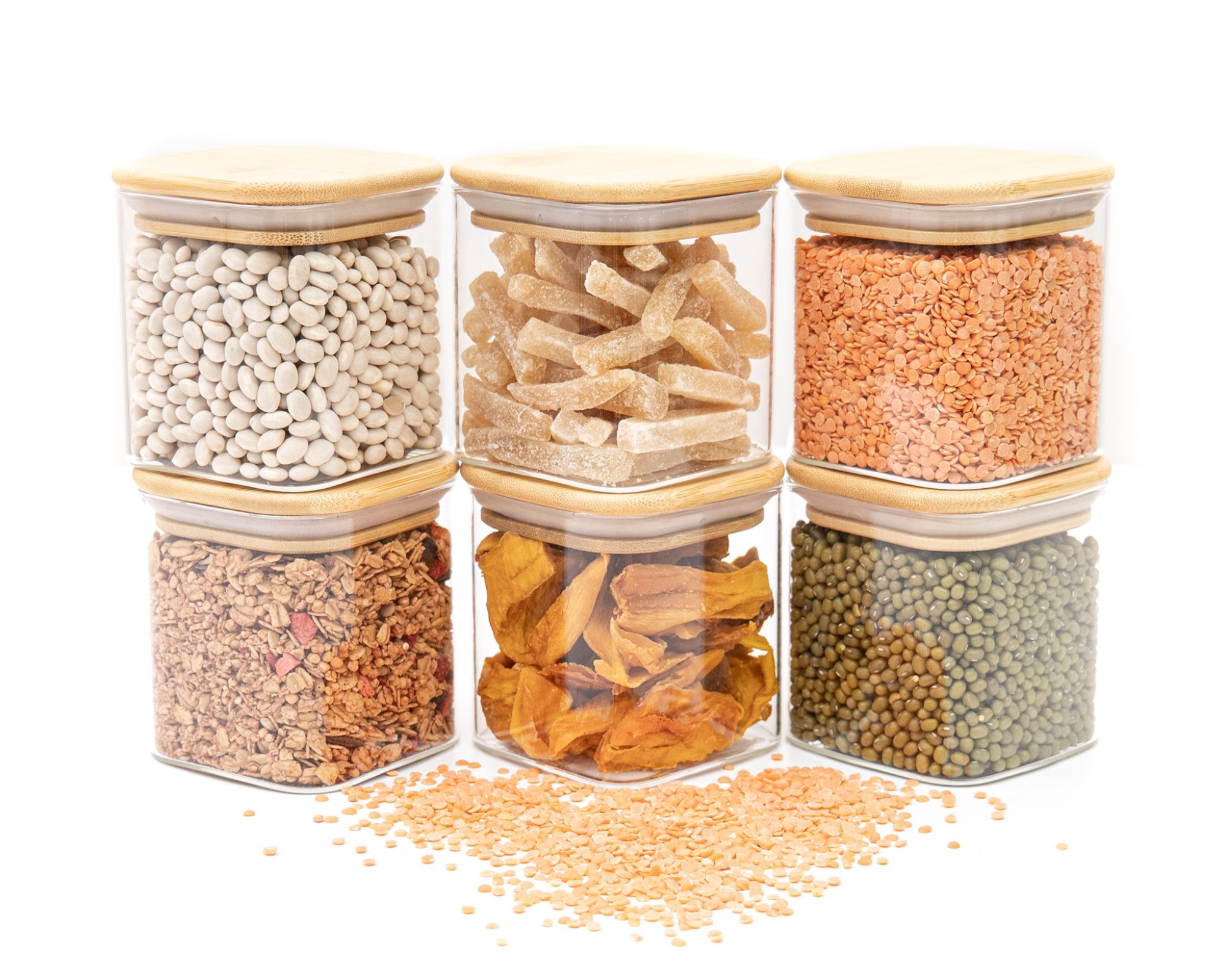 Stylish glass storage containers with square bamboo lids