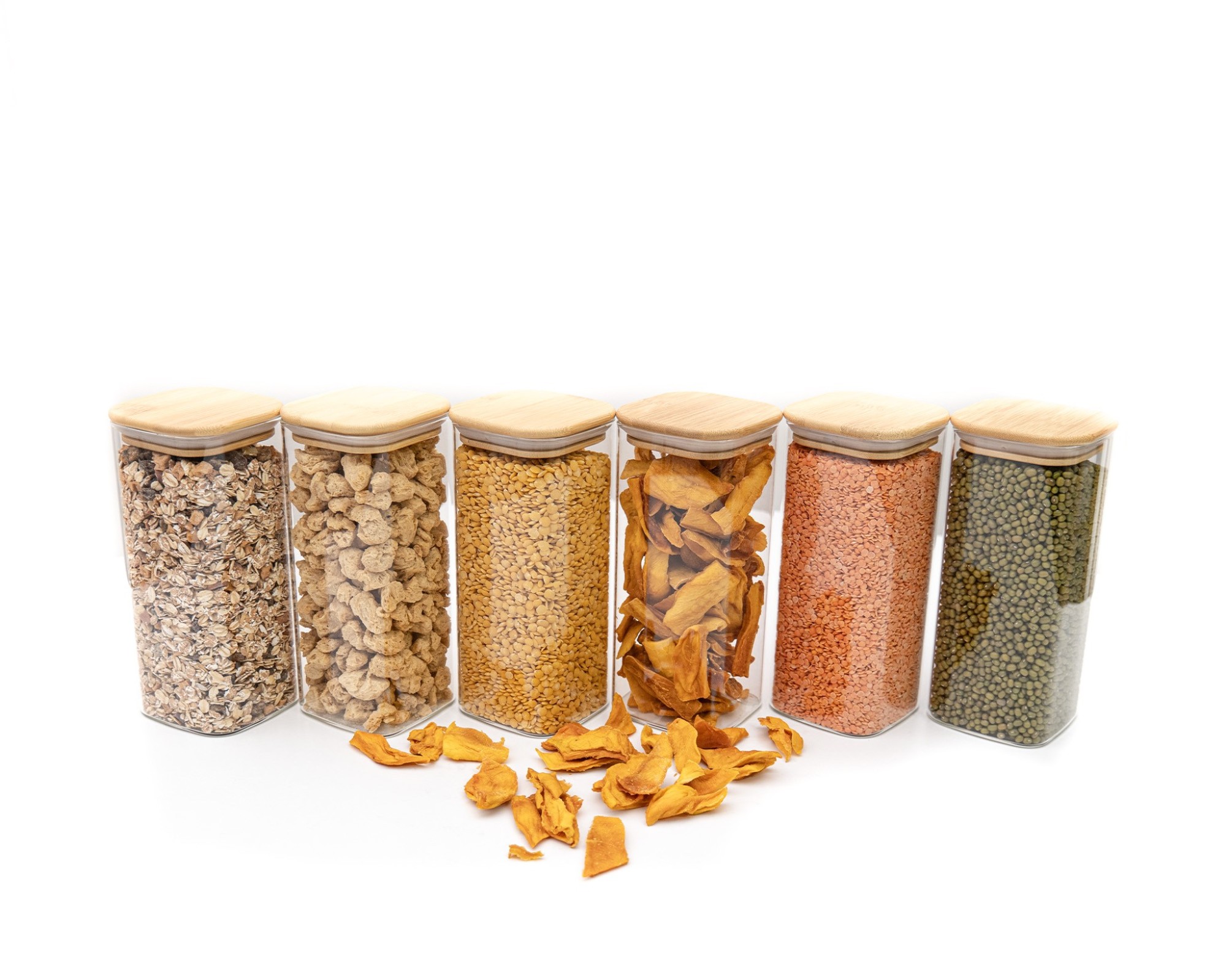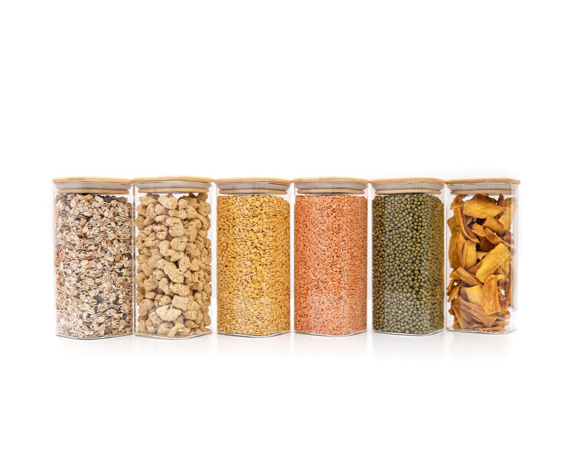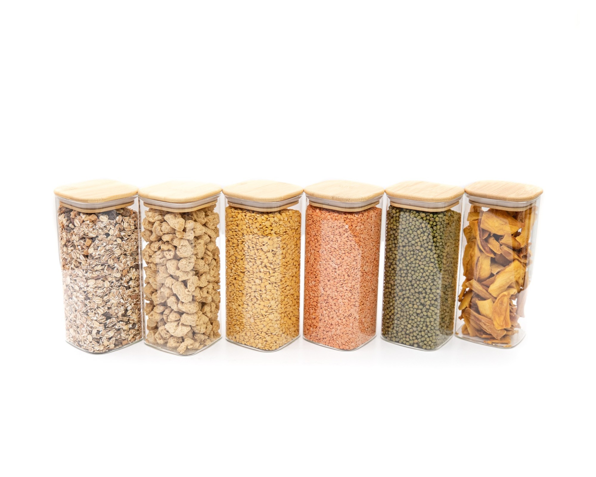 Eleganti contenitori in vetro con coperchi quadrati in bambù