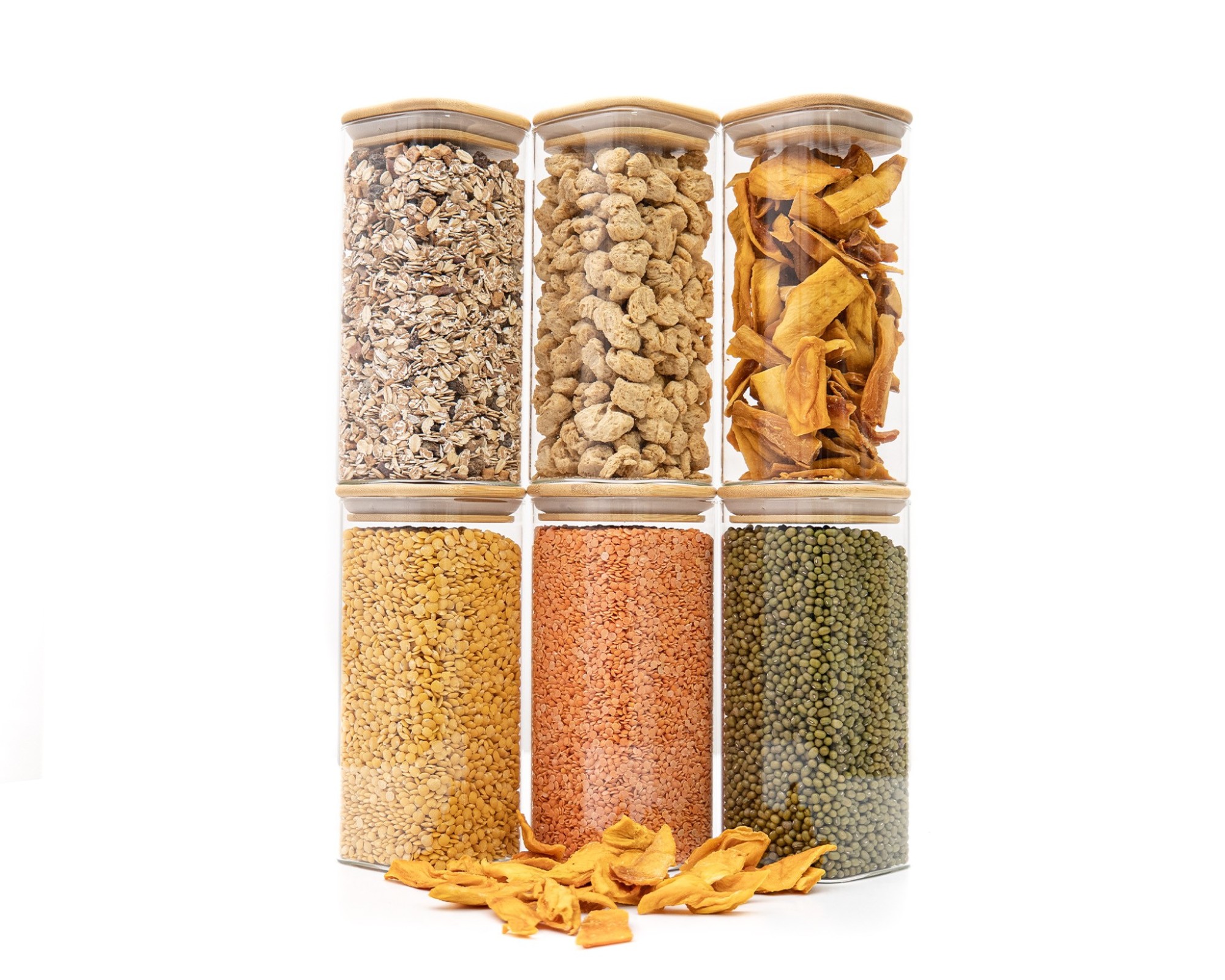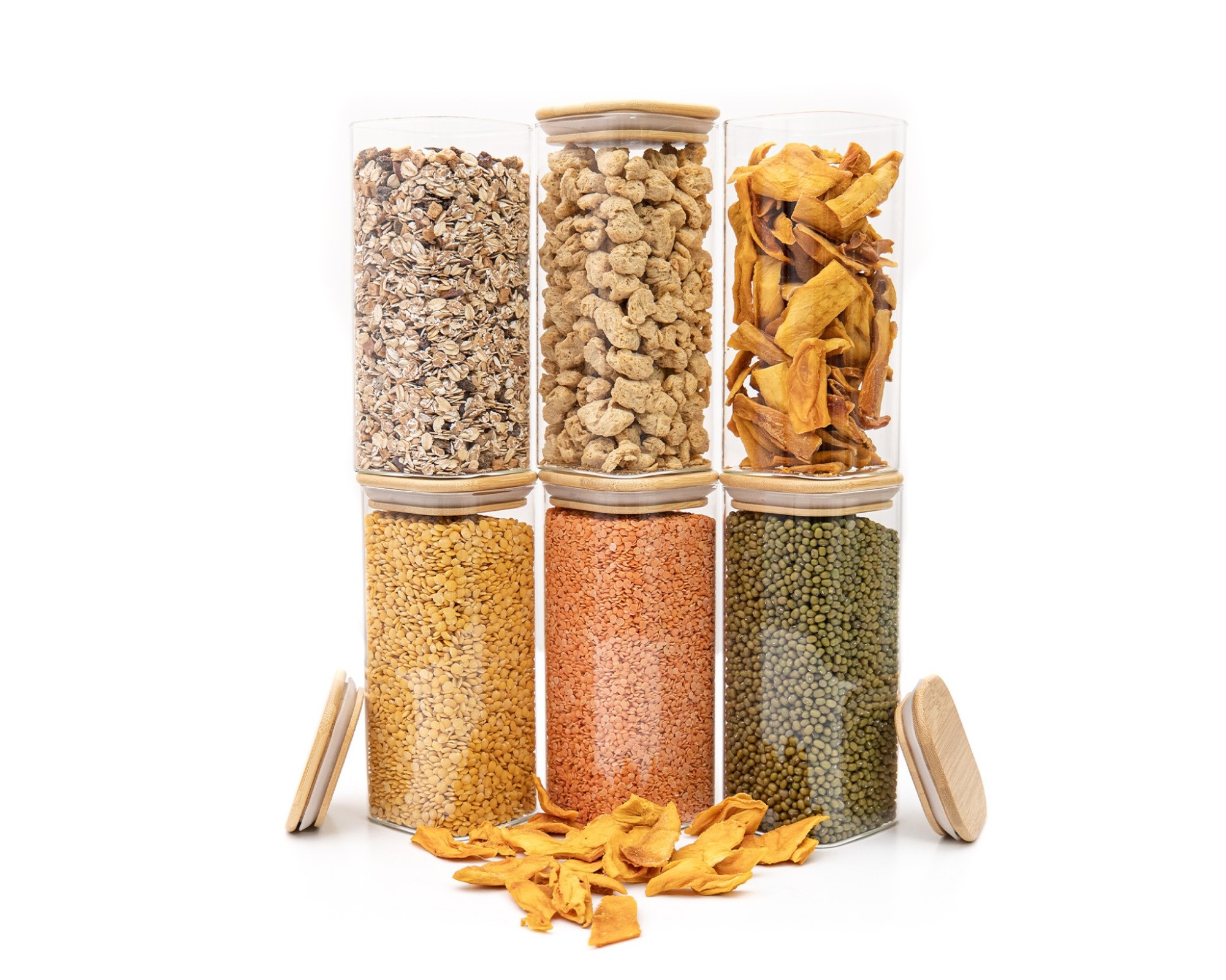 I barattoli per la conservazione sono realizzati in vetro e bambù