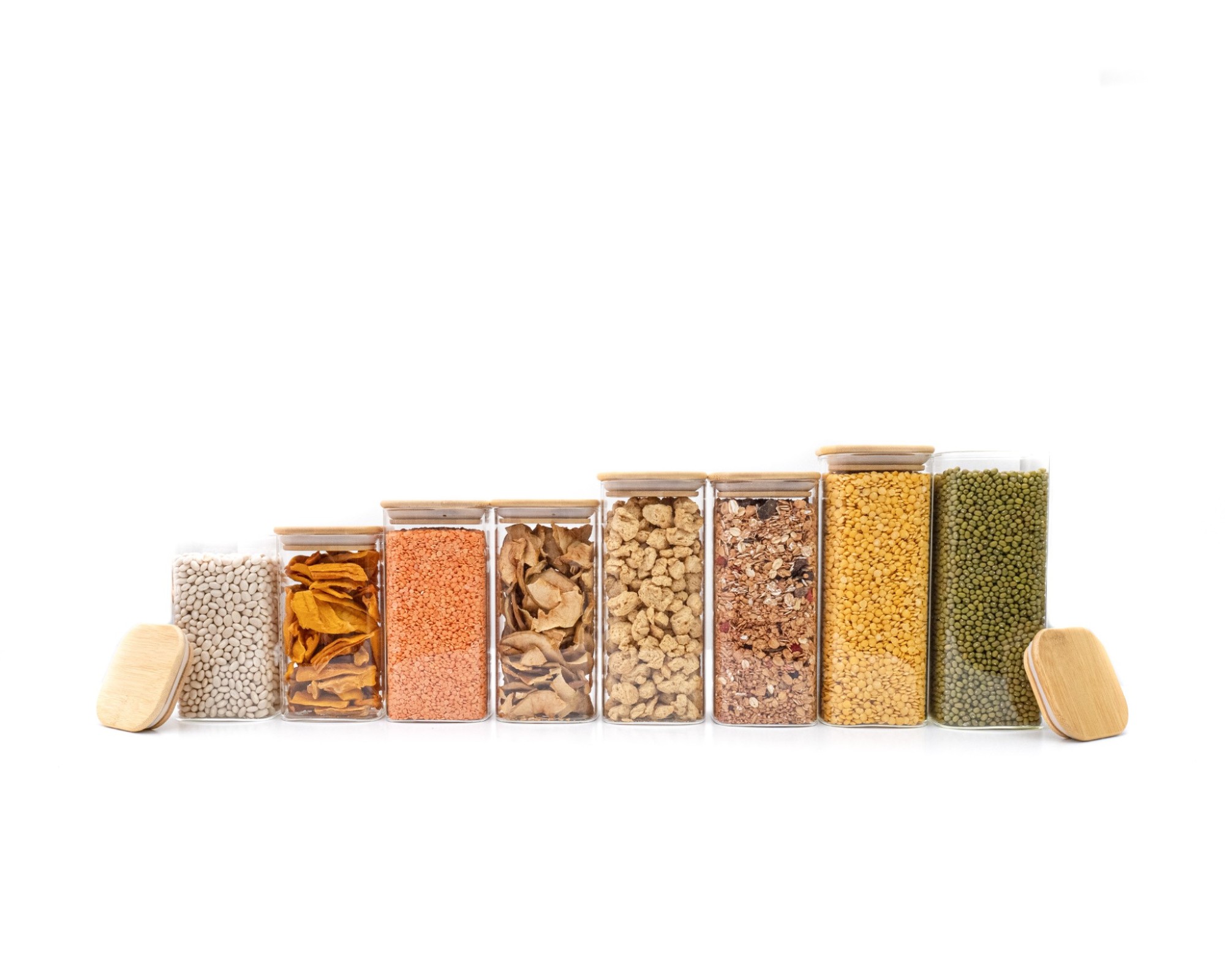 I barattoli per la conservazione sono realizzati in vetro e bambù
