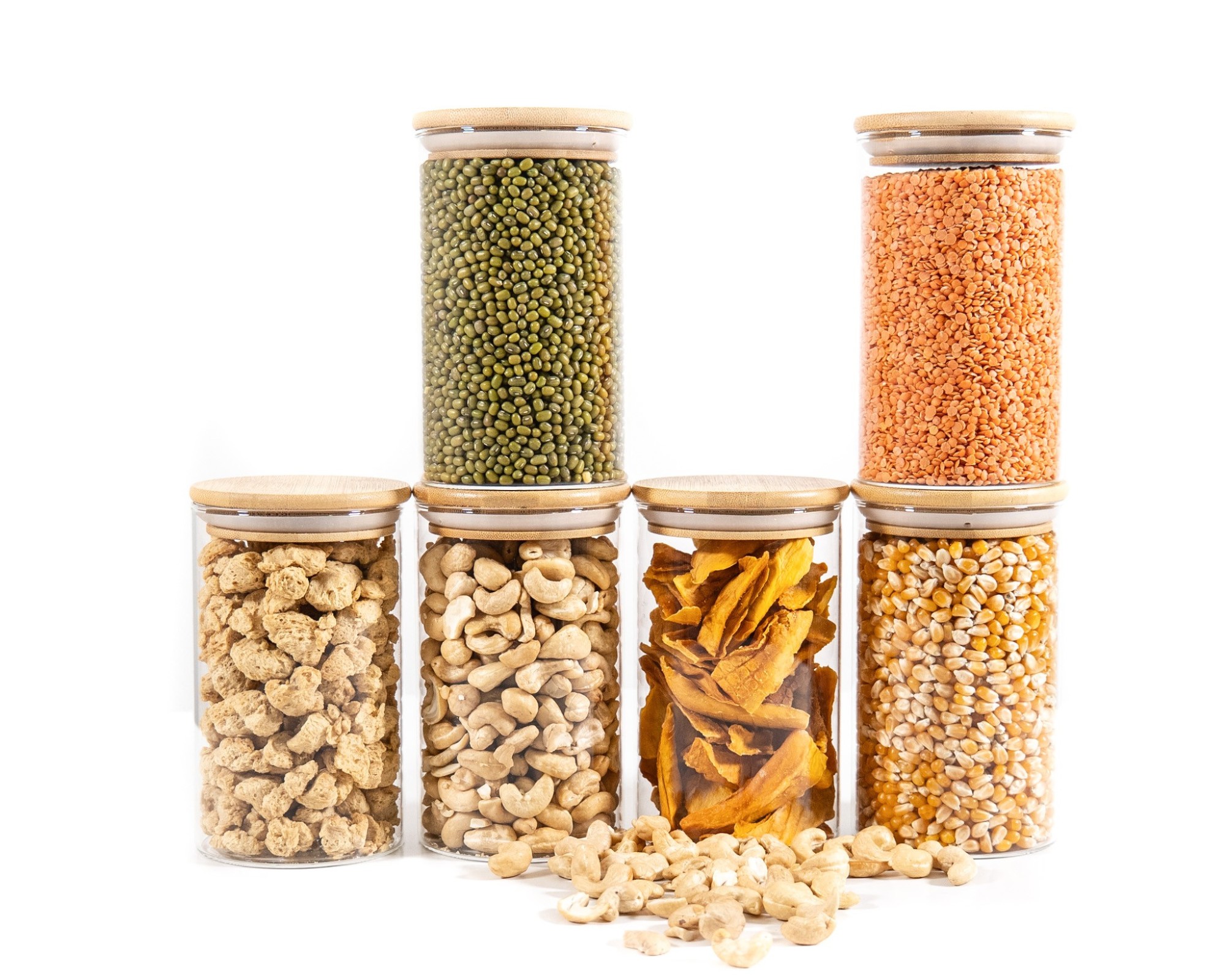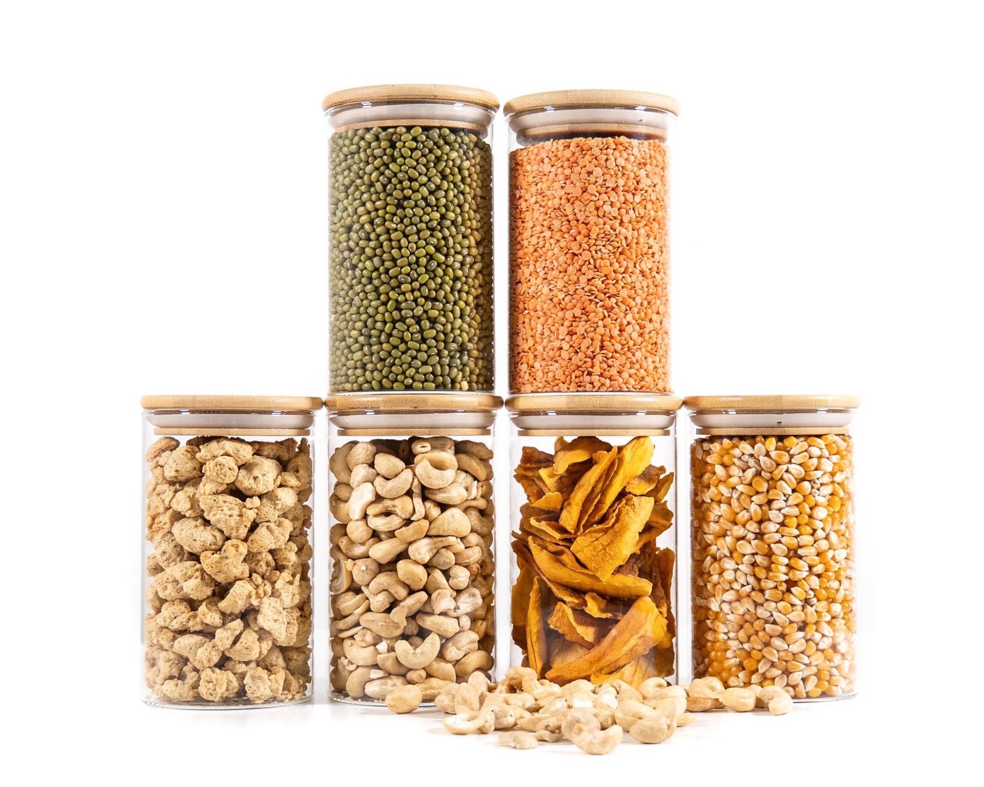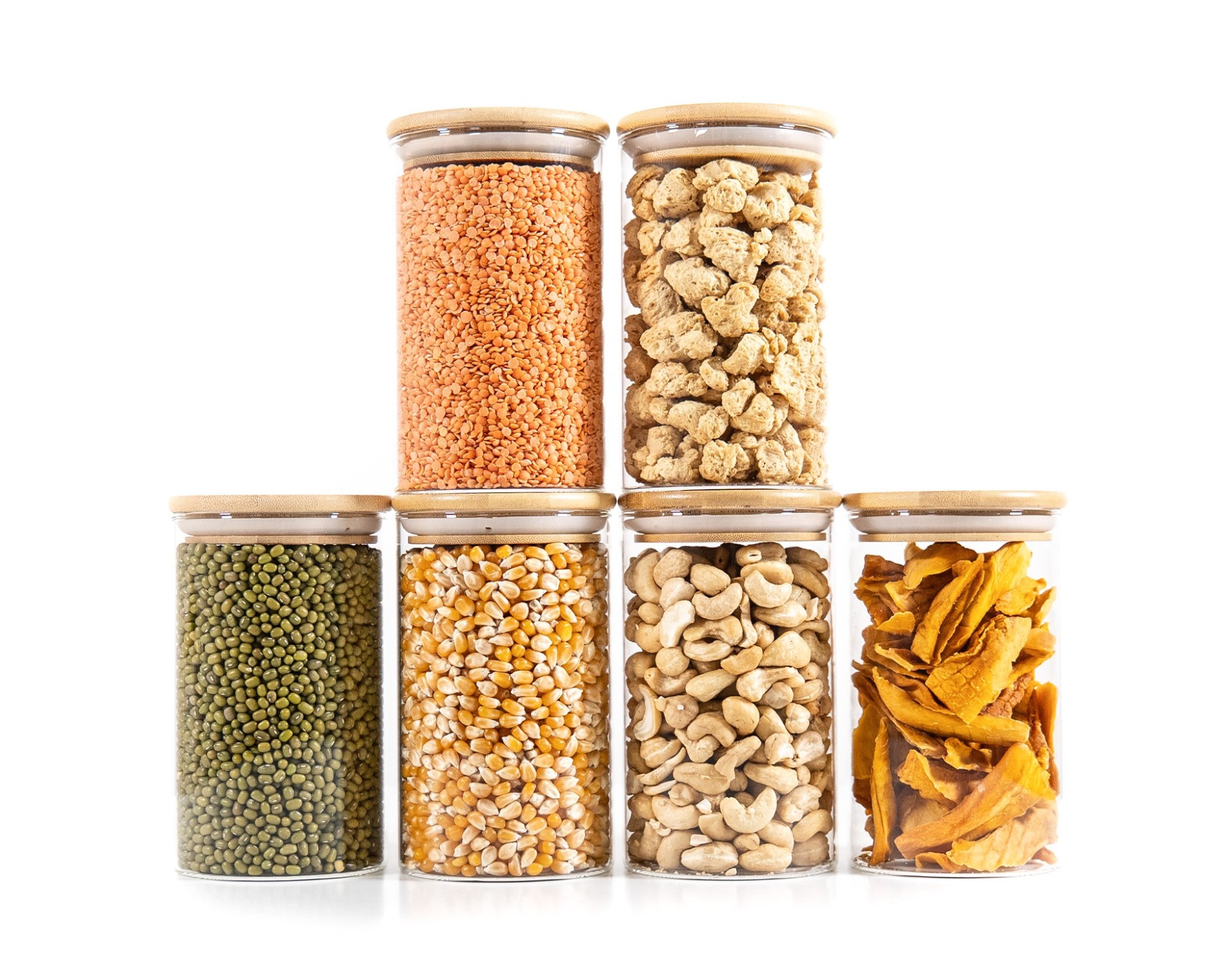 I barattoli per la conservazione sono realizzati in vetro e bambù