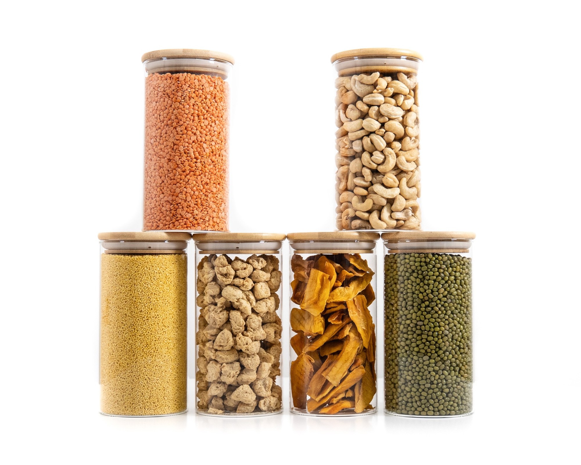 I barattoli per la conservazione sono realizzati in vetro e bambù