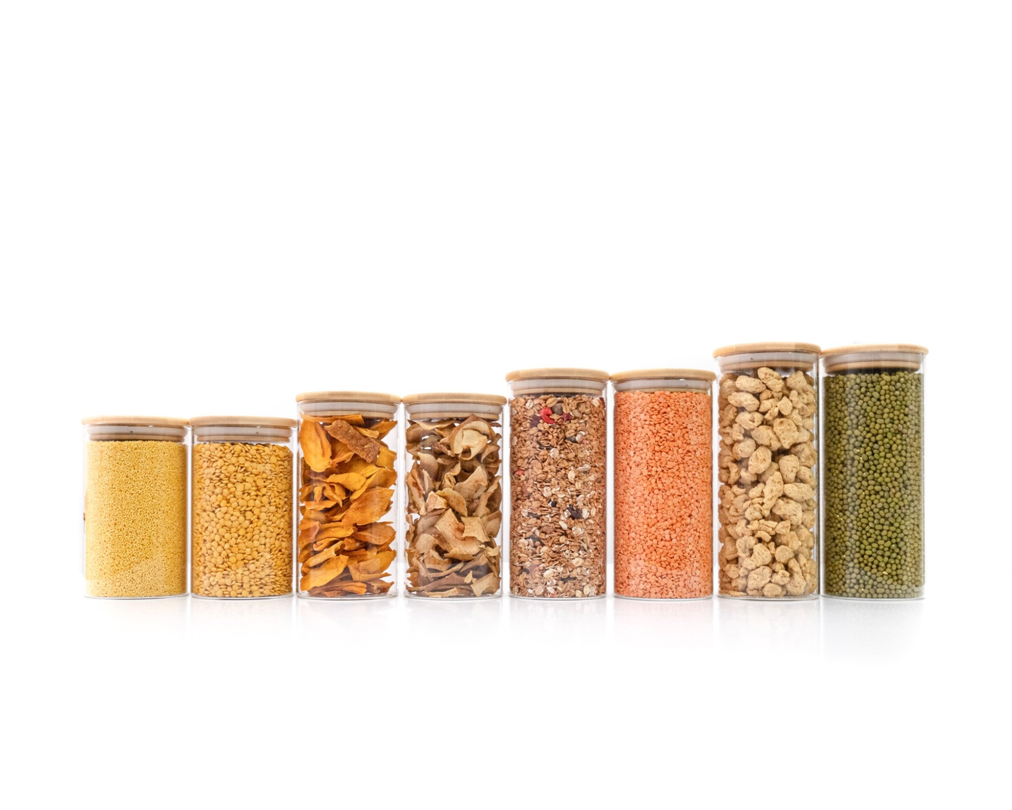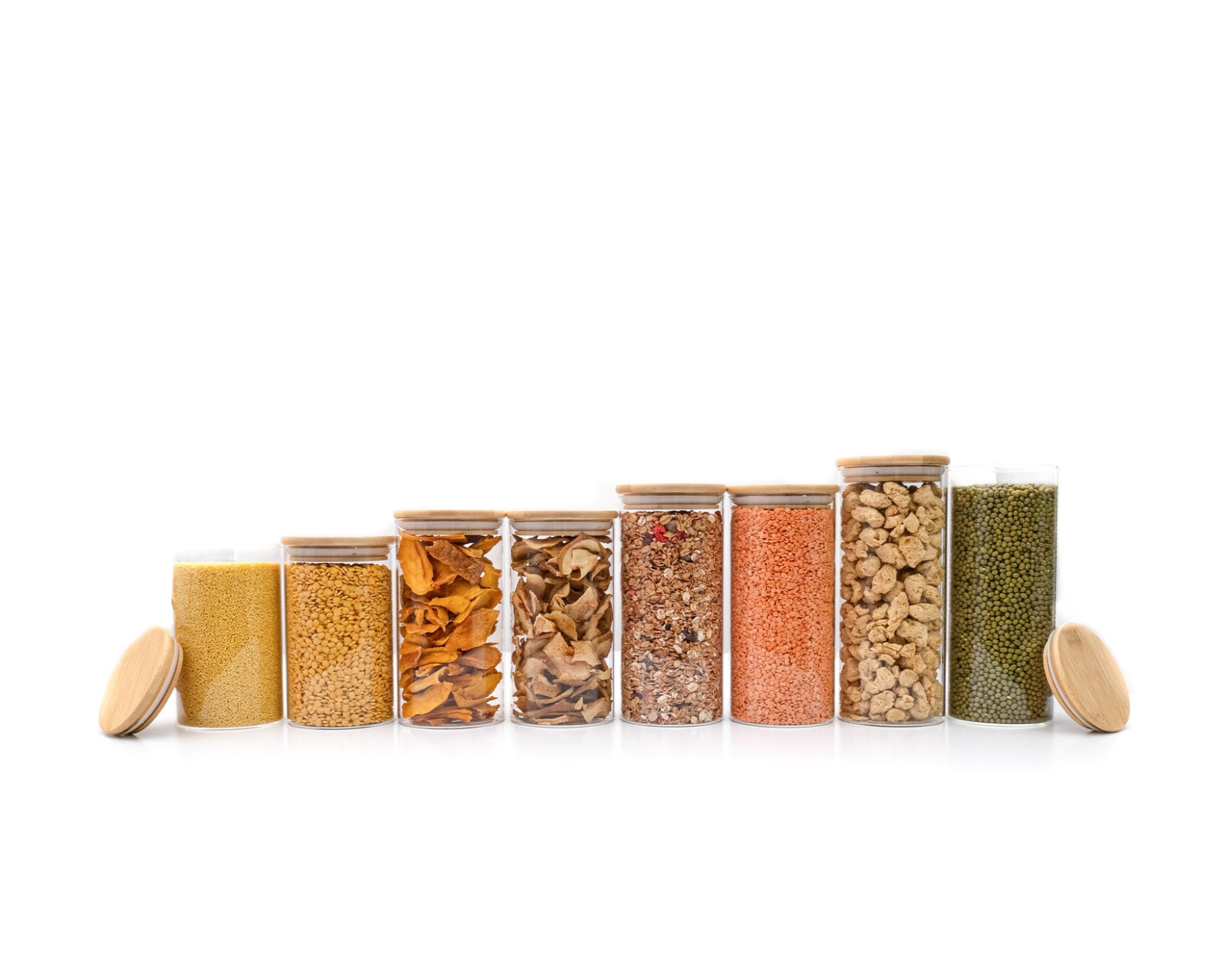 I barattoli per la conservazione sono realizzati in vetro e bambù