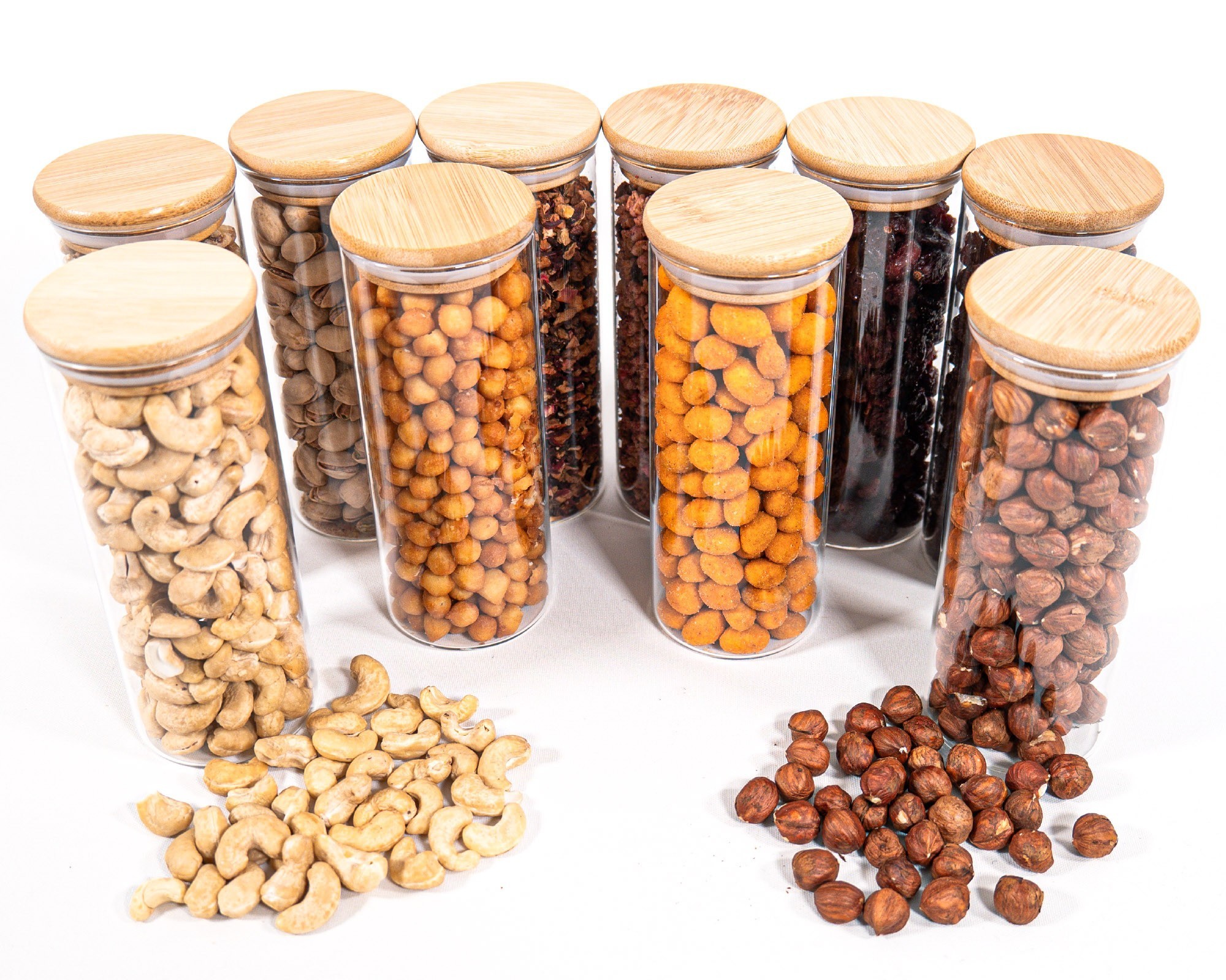Barattoli di stoccaggio stretti alti 6 cm con coperchi in bambù, set da 10