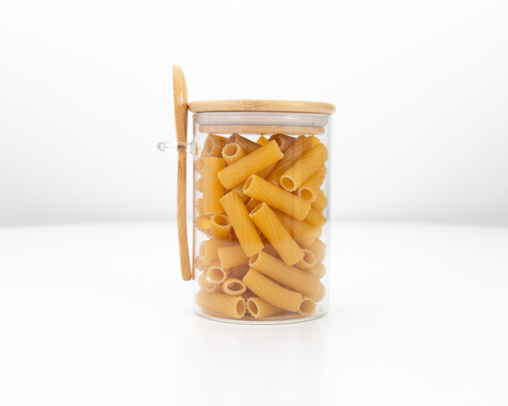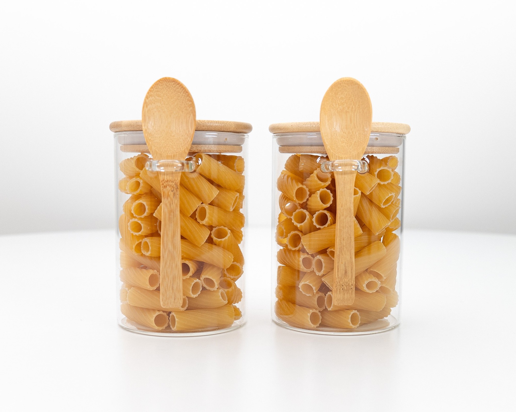 Barattoli per la conservazione con coperchio in bambù e cucchiaio, set da 2, quadrati