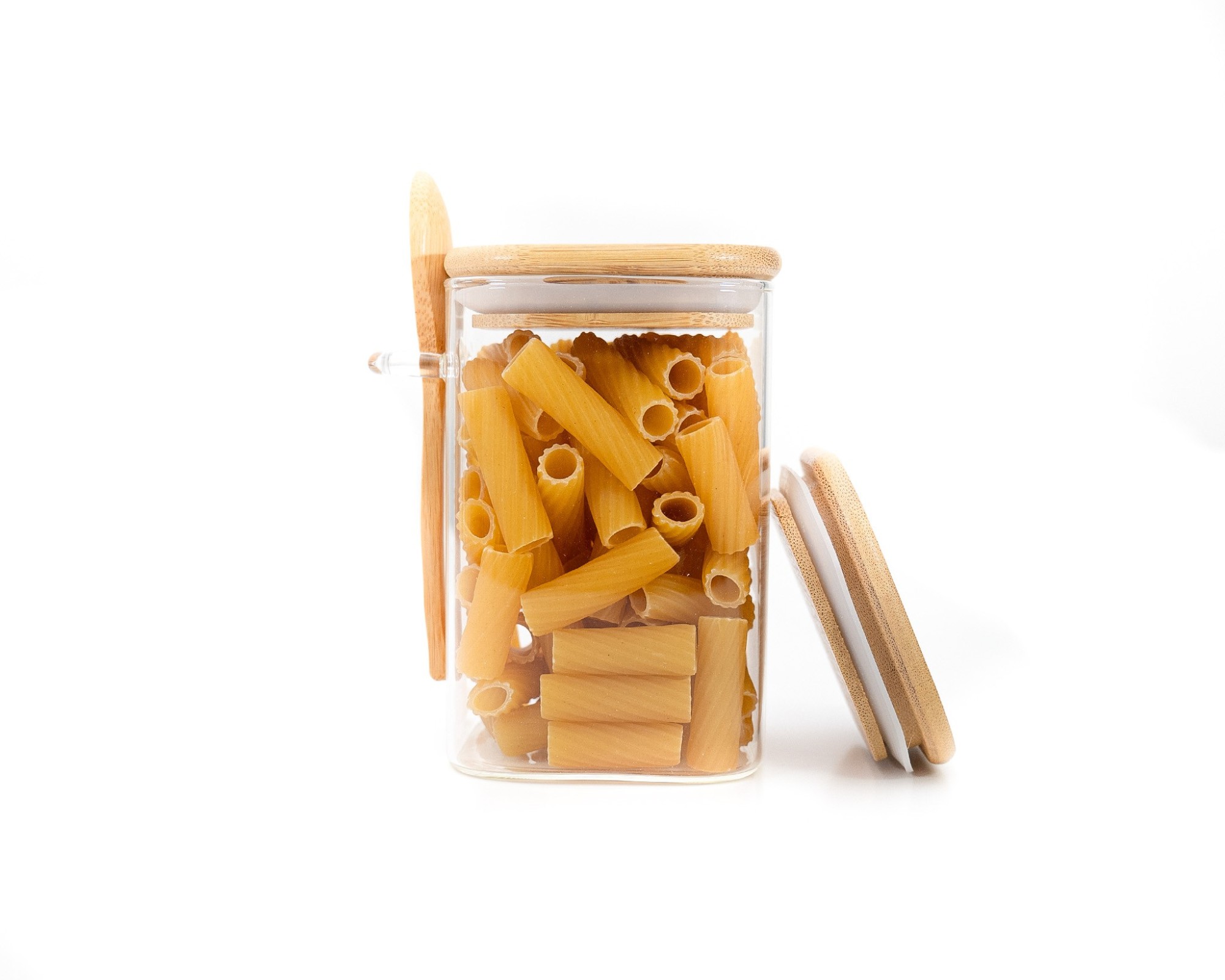 Barattoli per la conservazione con coperchio in bambù e cucchiaio, set da 2