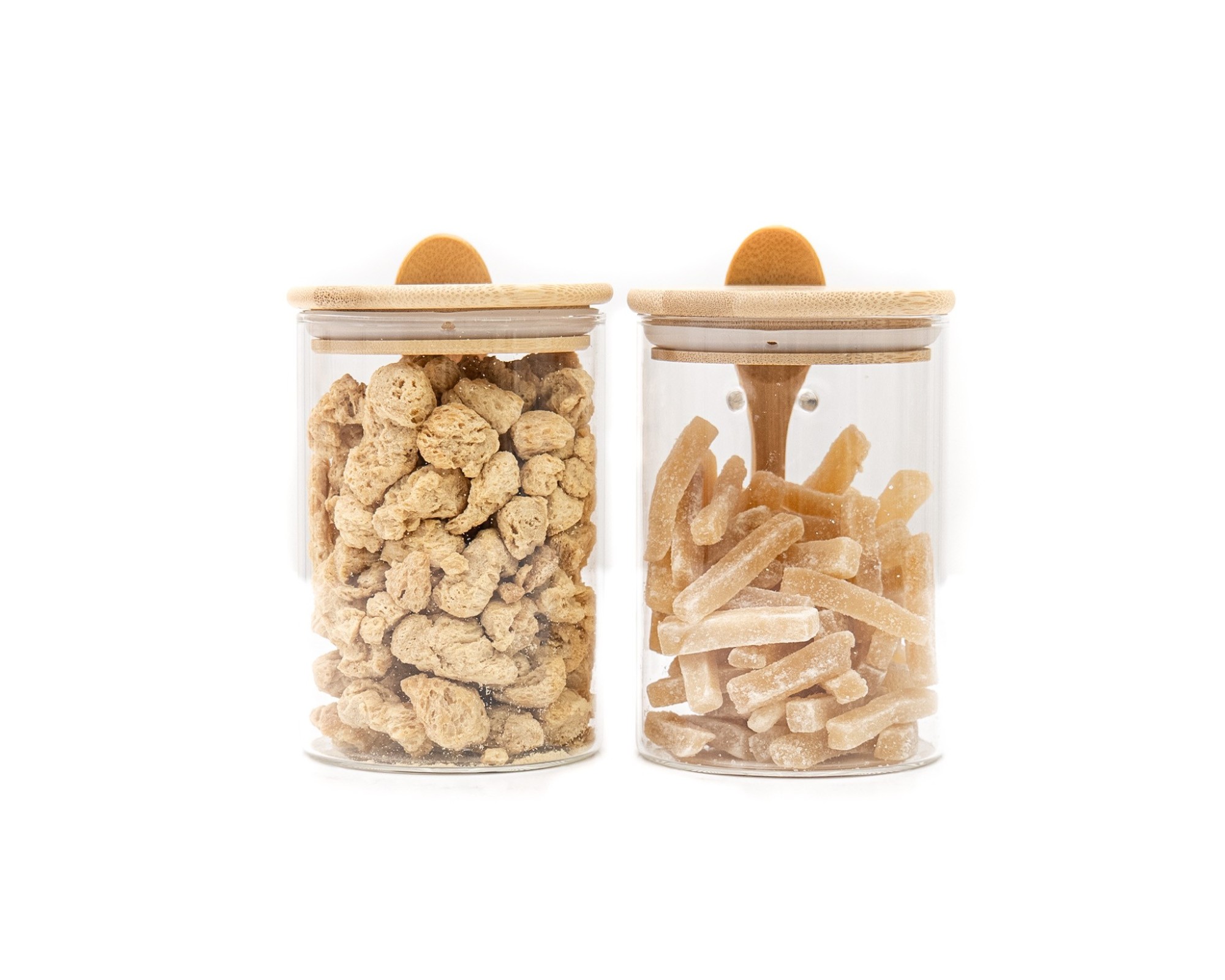 Barattoli per la conservazione con coperchio in bambù e cucchiaio, set da 2, quadrati