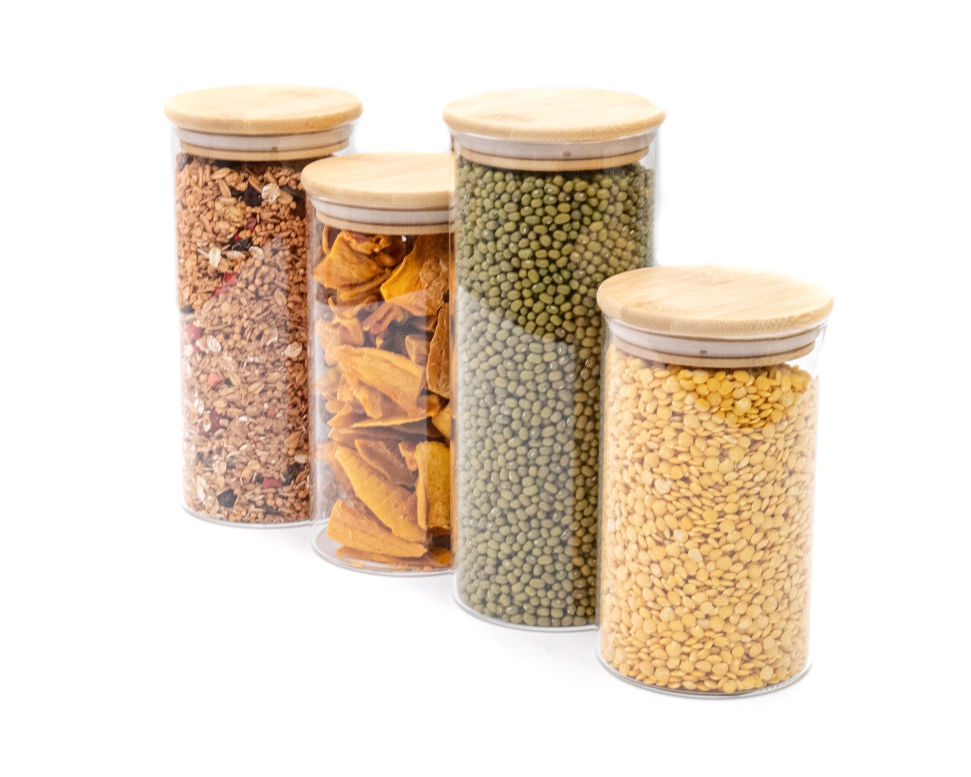 I barattoli per la conservazione sono realizzati in vetro e bambù